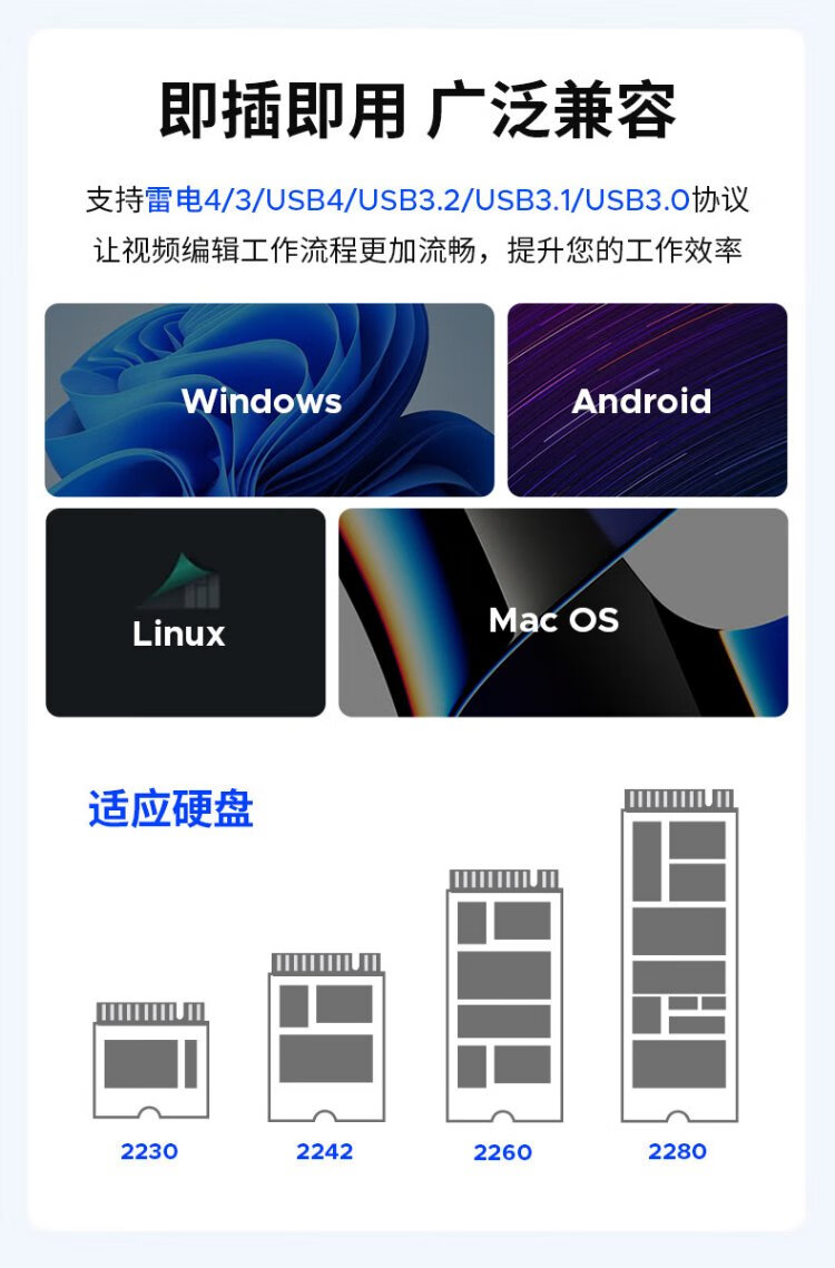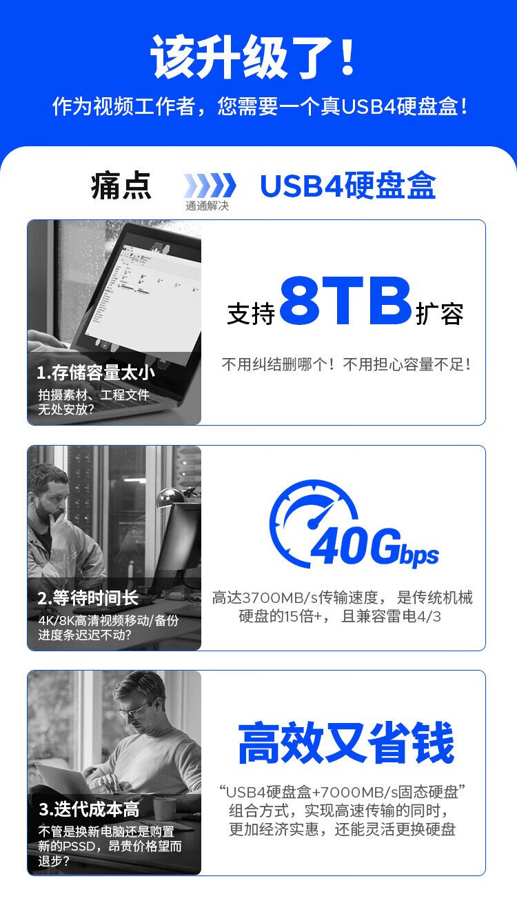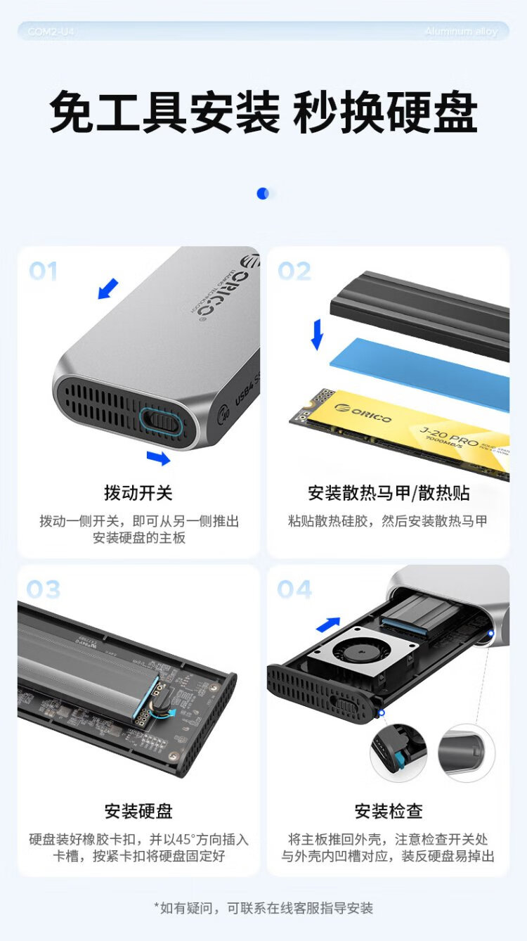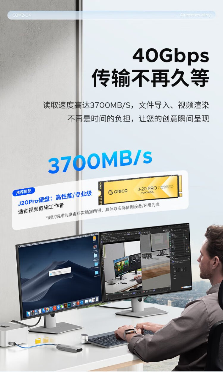 ORICO USB4-Festplattengehäuse 40 Gbit/s kompatibel mit Thunderbolt 4/3 M.2 NVMe Solid-State-Laufwerkgehäuse passend für iPhone Mac Mini Notebook SSD Solid State externe Erweiterung COM2