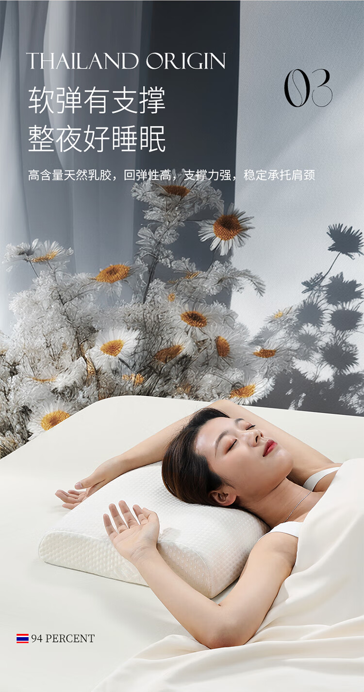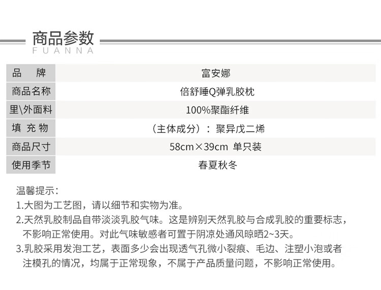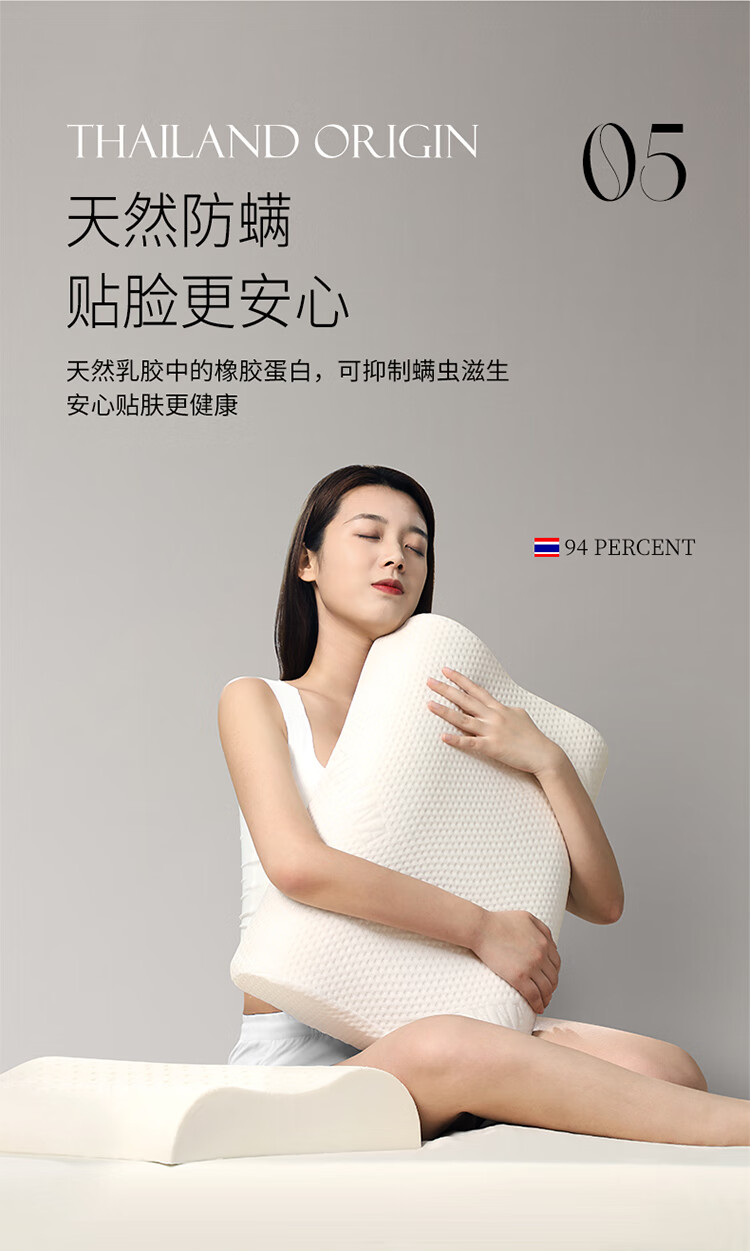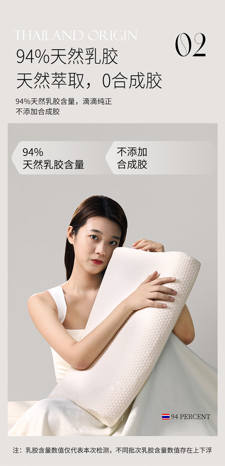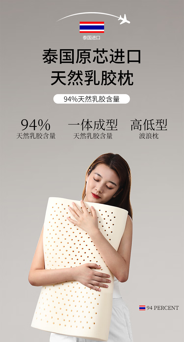 Fuana 94% de contenido de látex, almohada de látex importada de Tailandia, almohada central cervical para adultos, paquete individual de 58*39cm