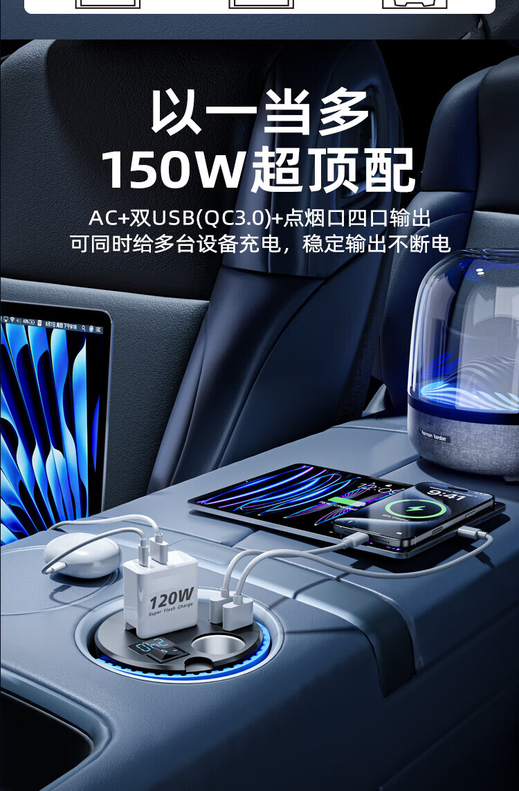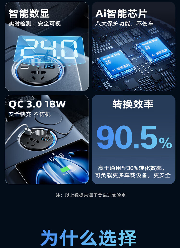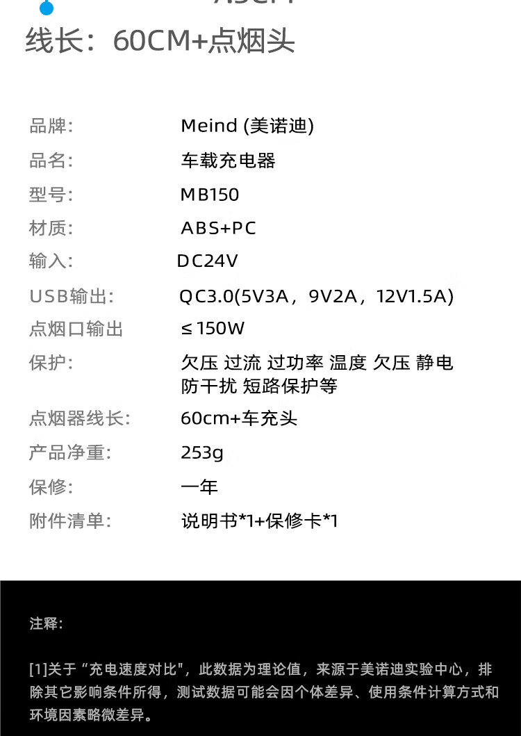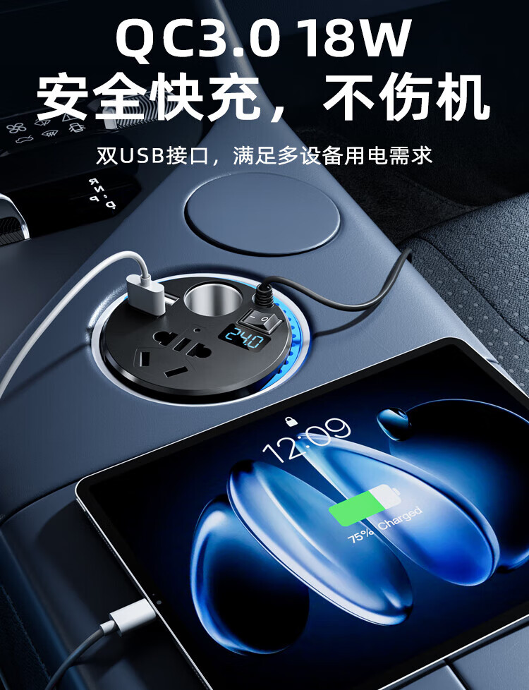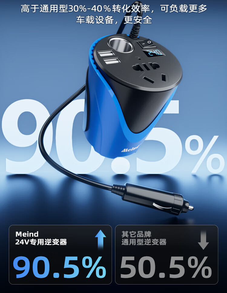 Meind car inverter 24V to 220V charger super fast charging bottle car car cigarette lighter converter 150W