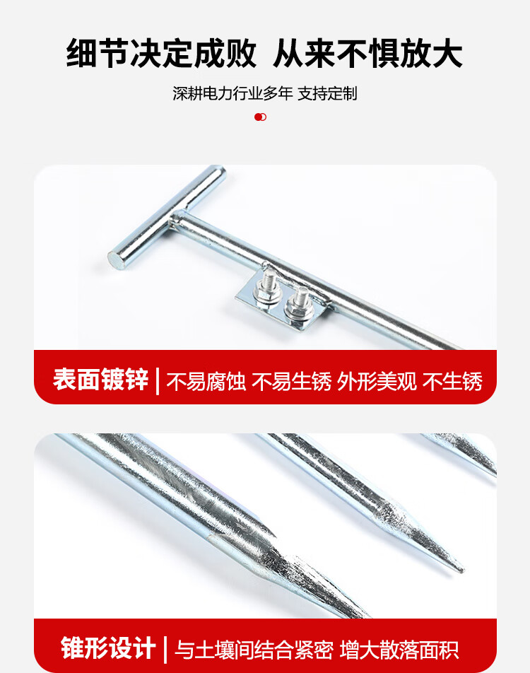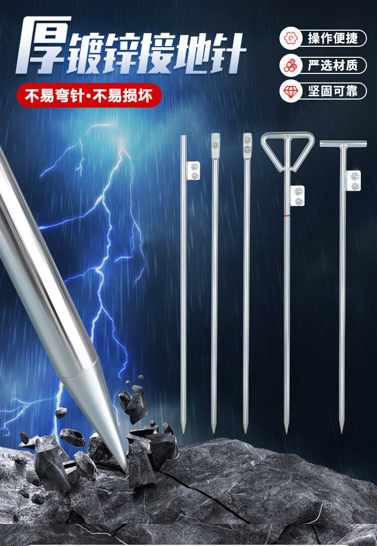 铸固 接地针 镀锌圆钢接地桩避雷针家用接地棒工程防雷接地极地线杆丁字热镀焊板 丁字形16mm*800mm冷镀锌