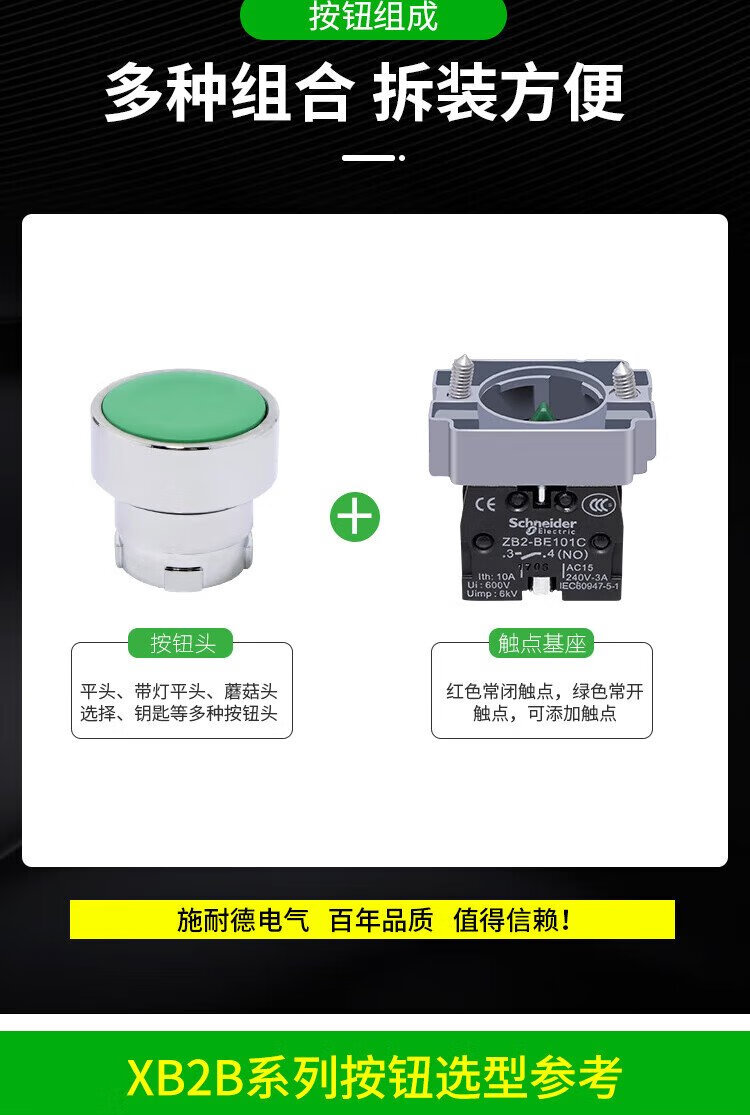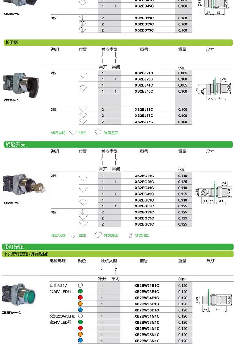 Schneider Electric XB2B series metal button flat reset button with a normally closed point red XB2BA42C