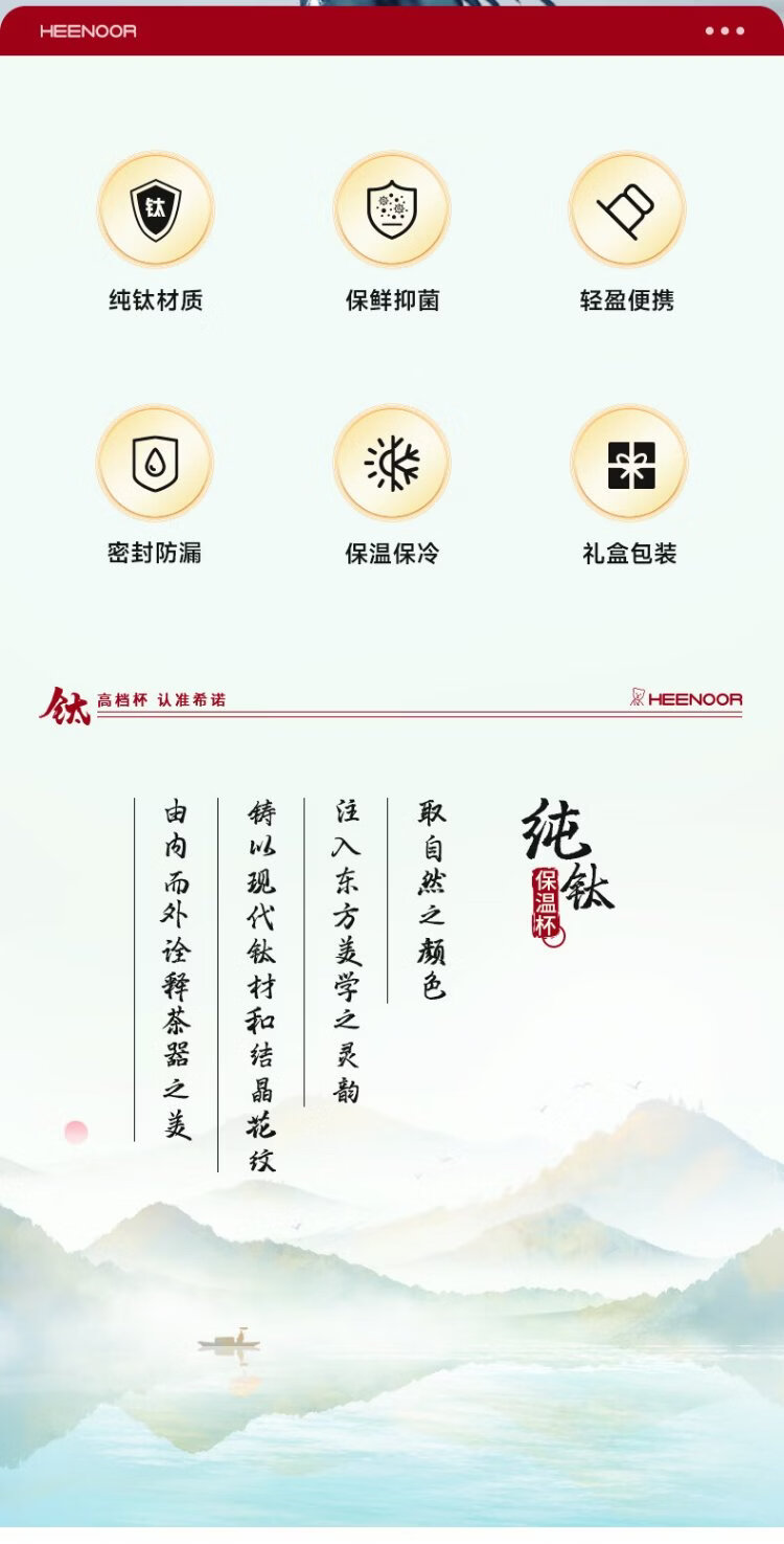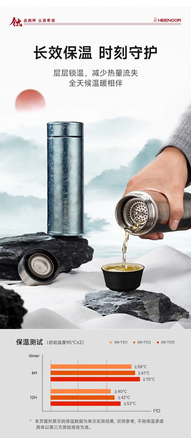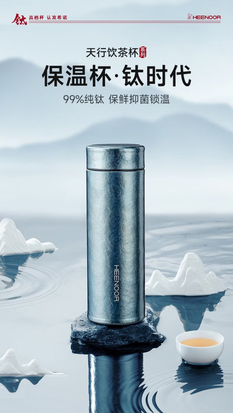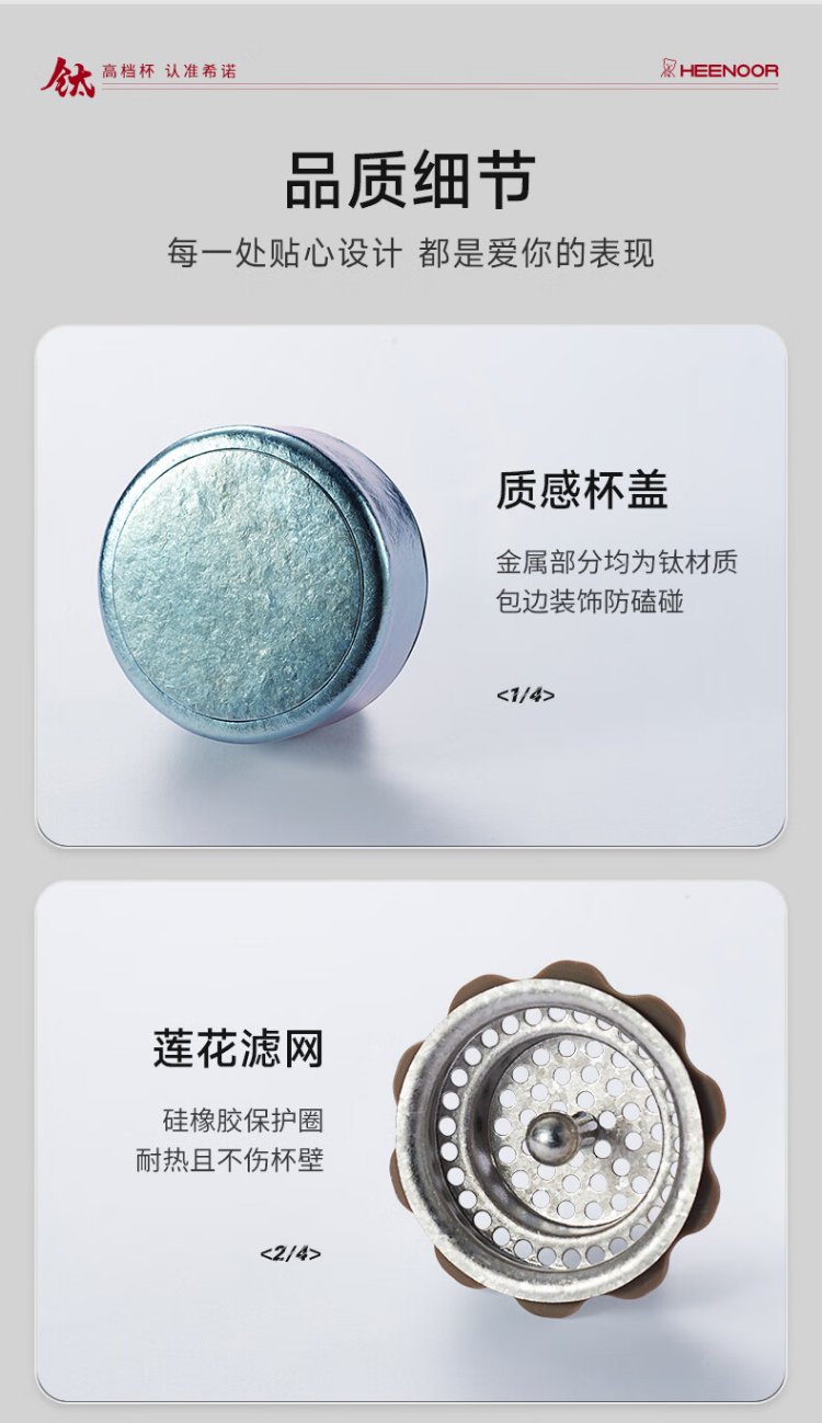 Heenoor thermos cup titanium cup high-end business car water cup men's filtered tea cup XN-T312 glacier blue 450mL