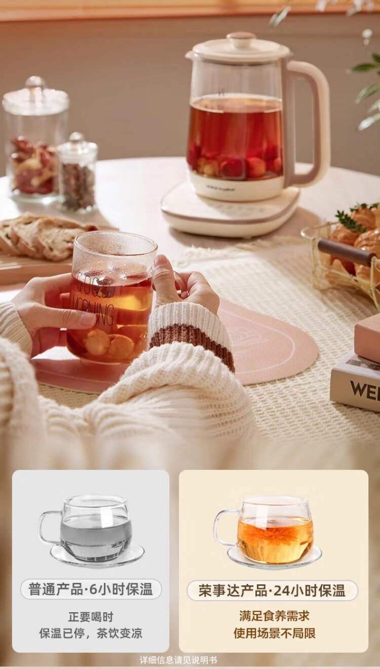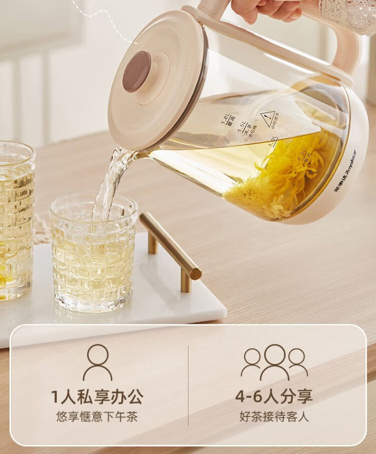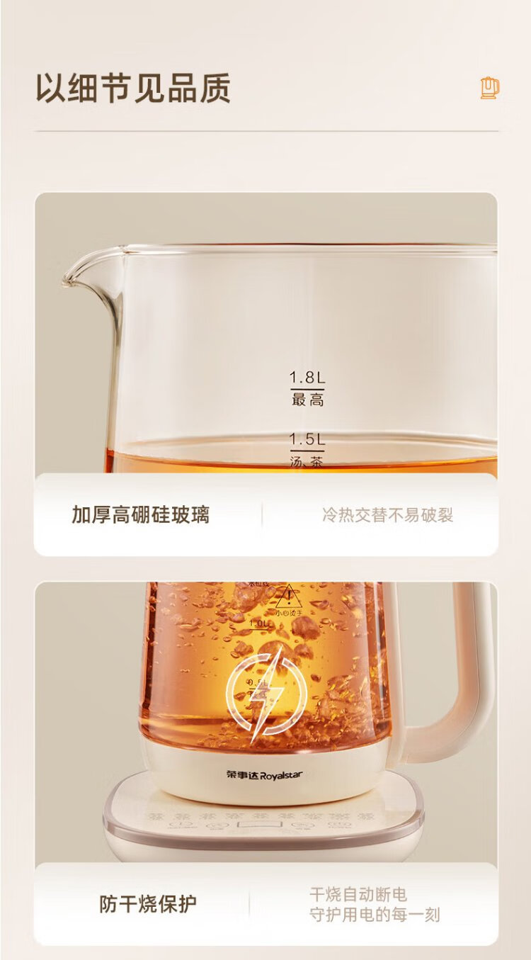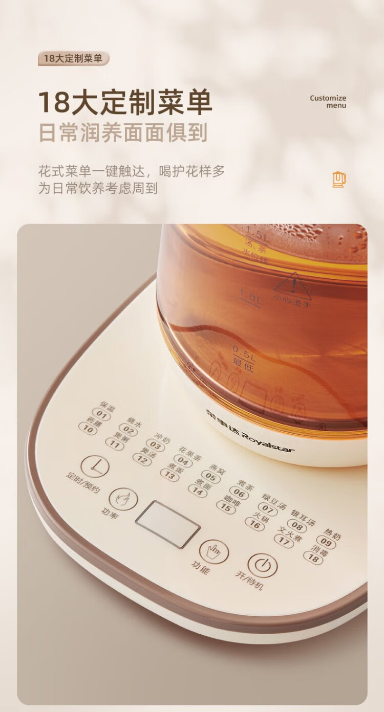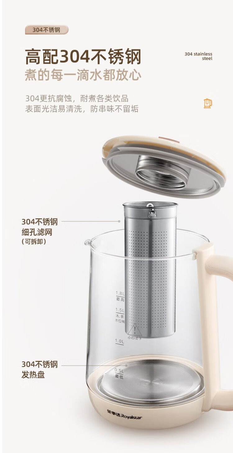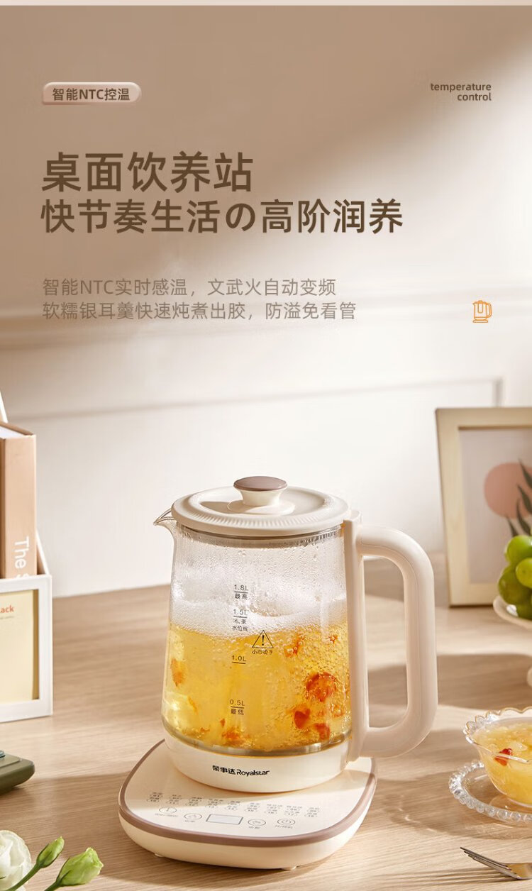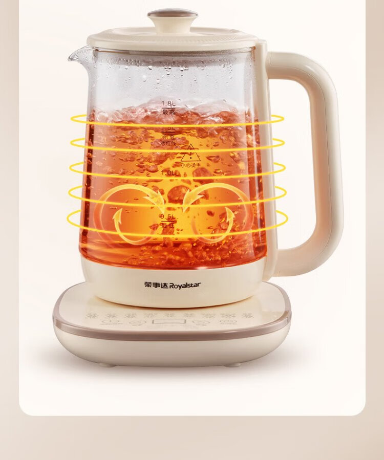 Royalstar health kettle teapot kettle electric kettle boiling kettle thermostatic kettle home office glass flower teapot milk warmer 1.8L reservation insulation filter YSH18L19B