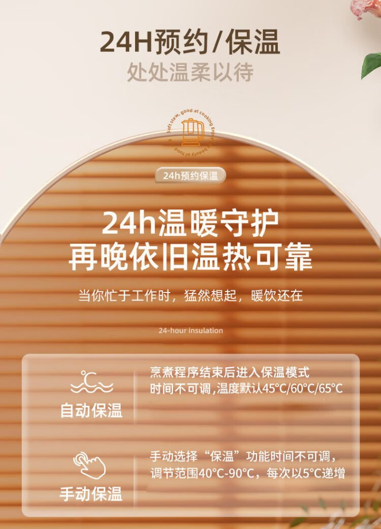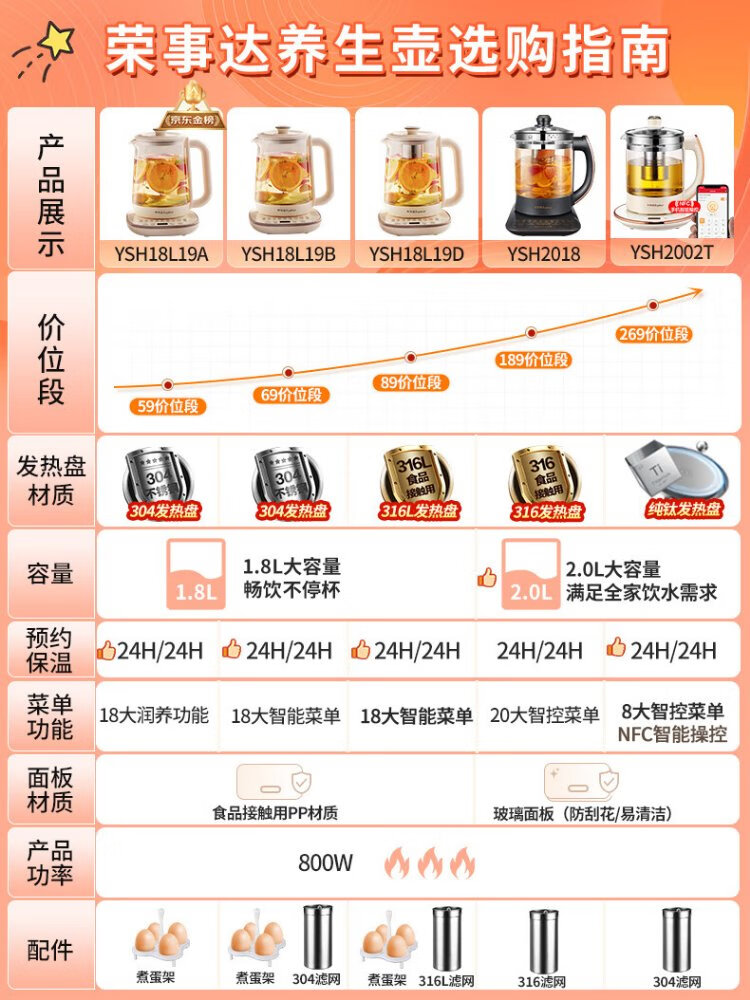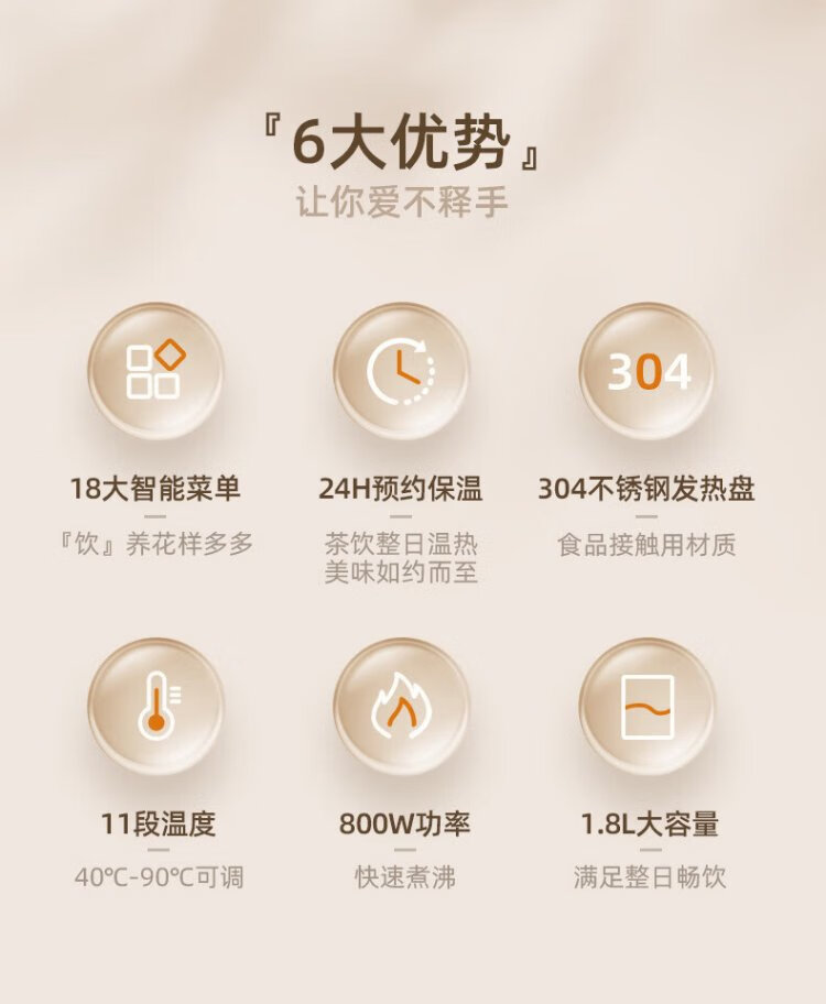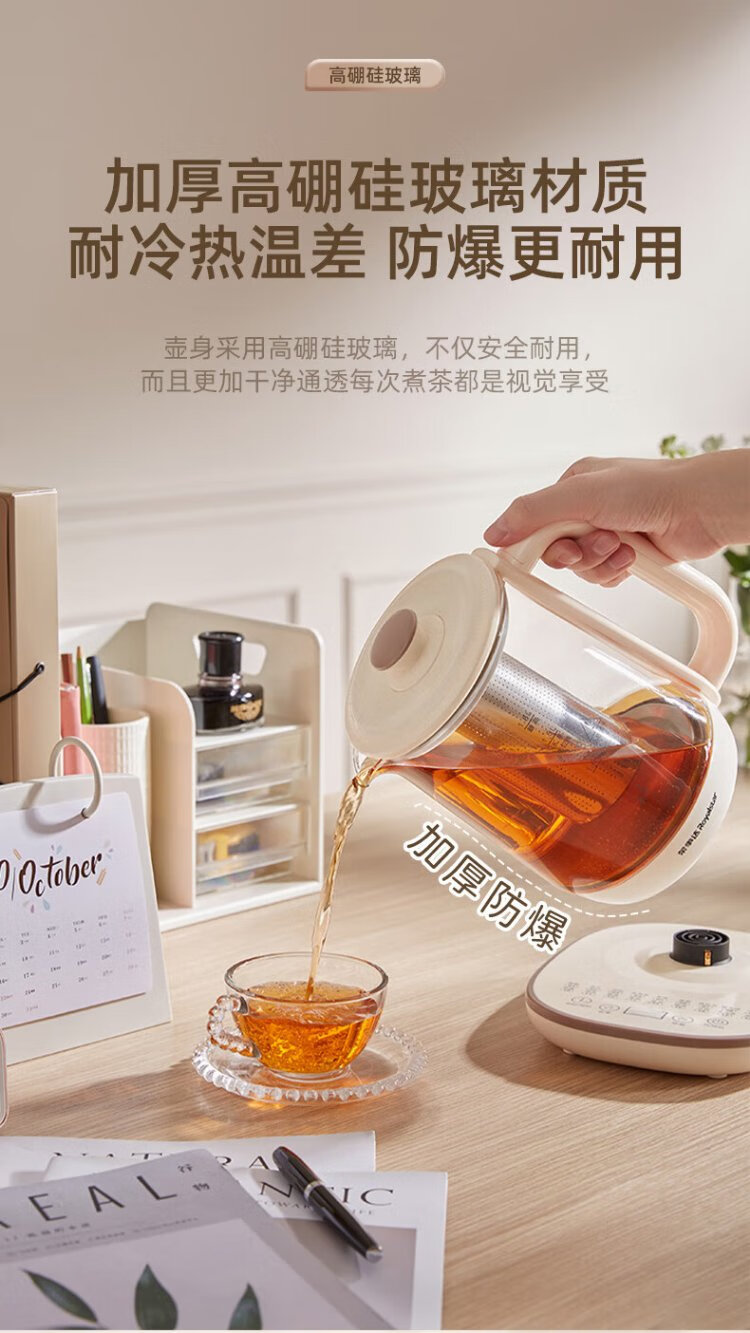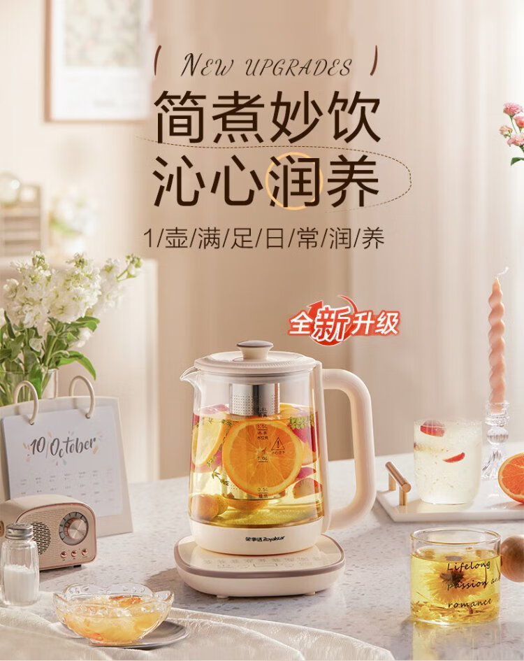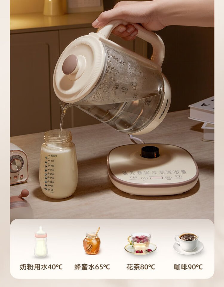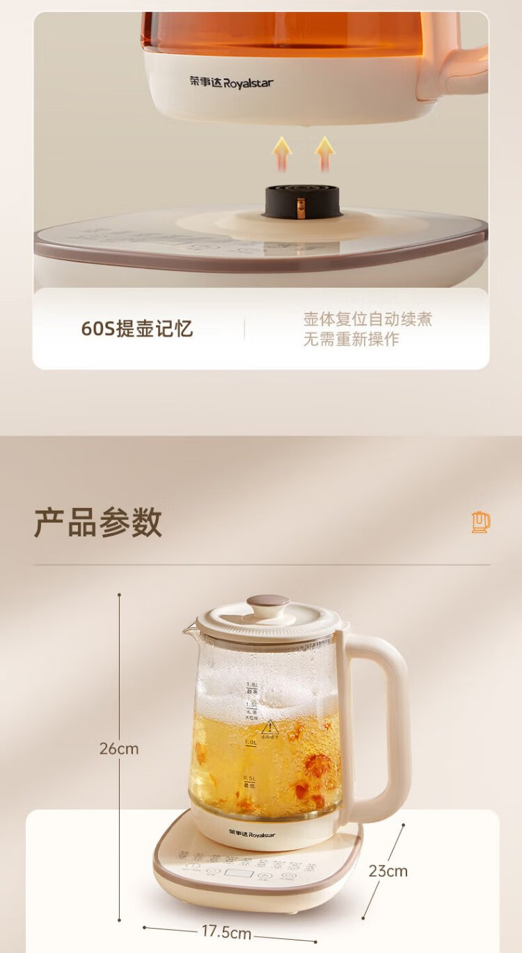 Royalstar health kettle teapot kettle electric kettle boiling kettle thermostatic kettle home office glass flower teapot milk warmer 1.8L reservation insulation filter YSH18L19B