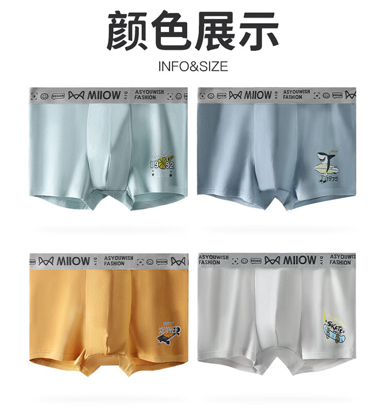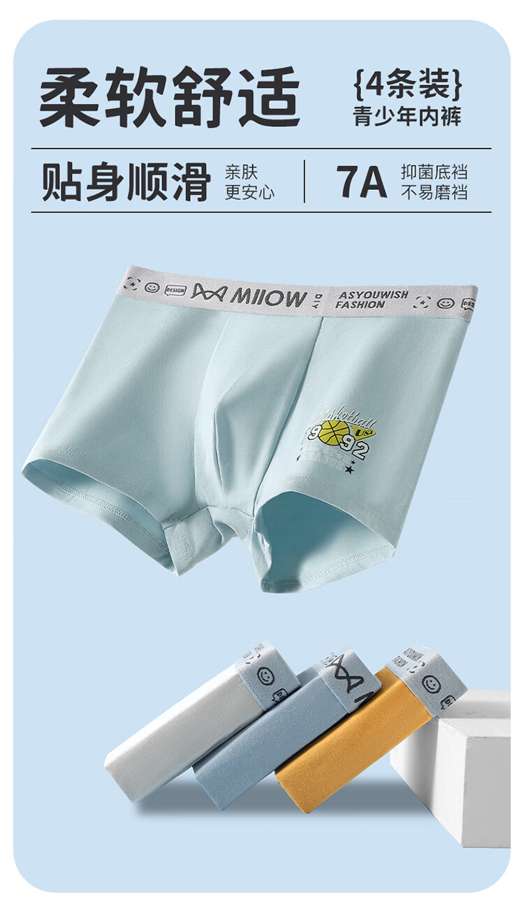 Catman Teenagers Underwear Cotton Boxer Briefs Boys Middle and Large Children Adolescent Students Boxer Shorts XL