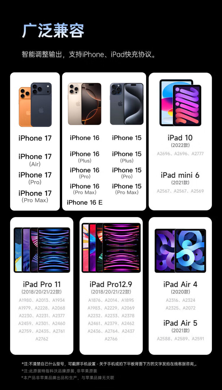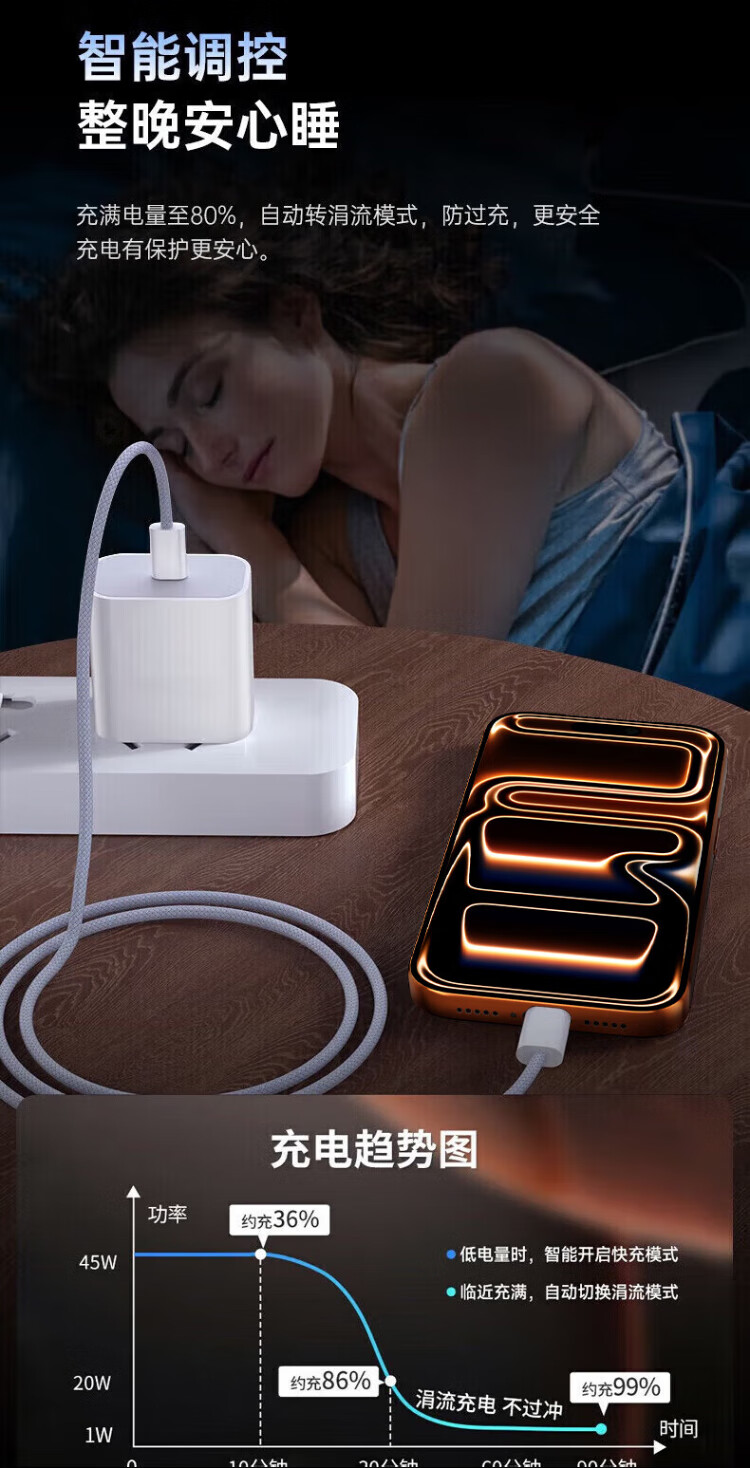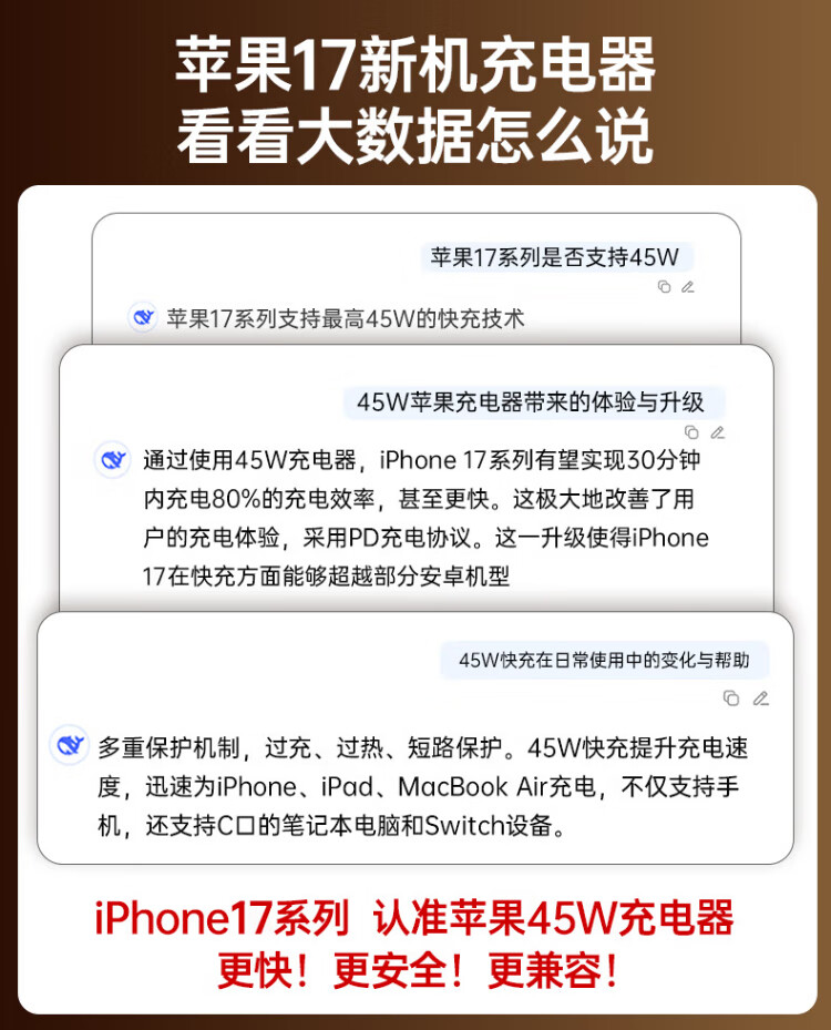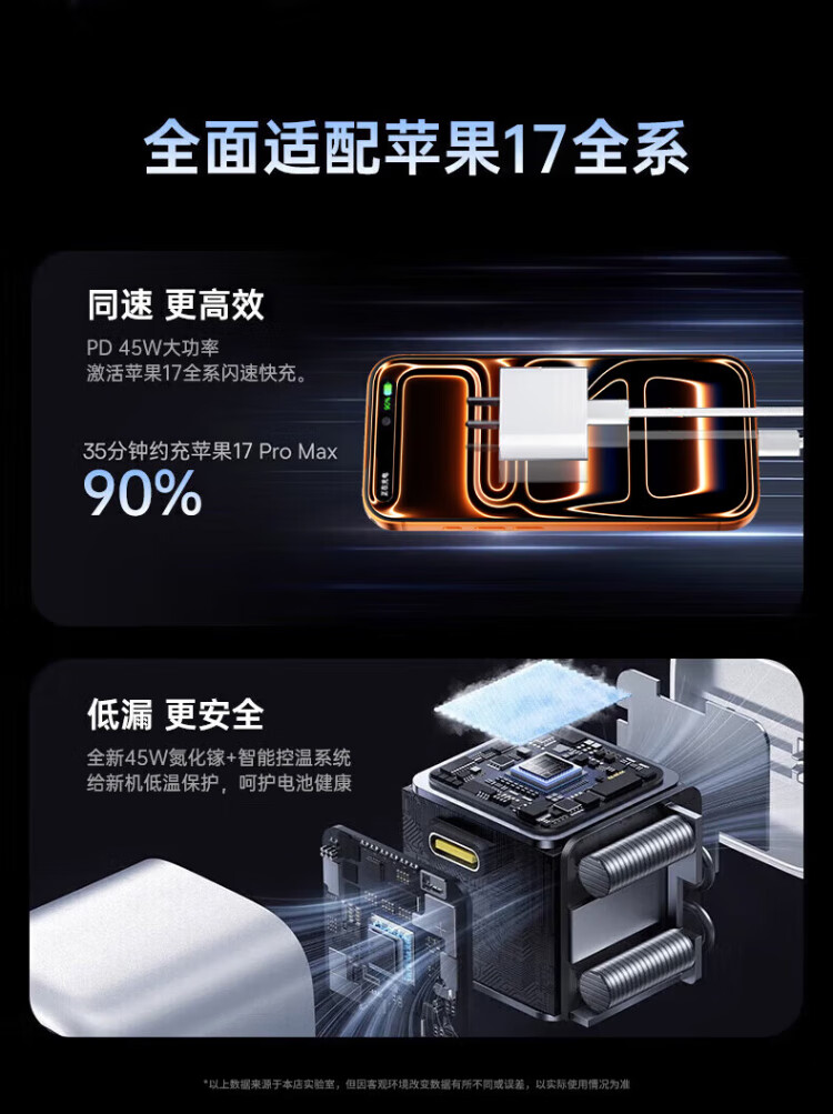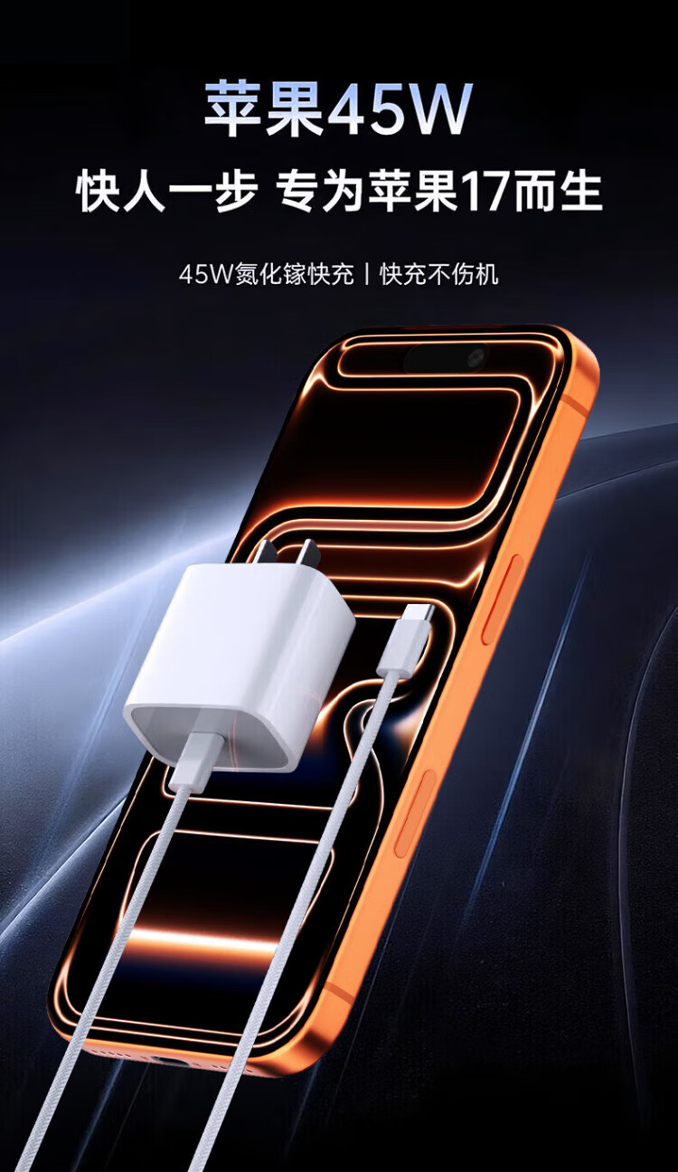 科沃苹果17/16充电器40W/45W快充头15充电线数据TypeC套装氮化镓自营正品适配原装iphone17promax手机
