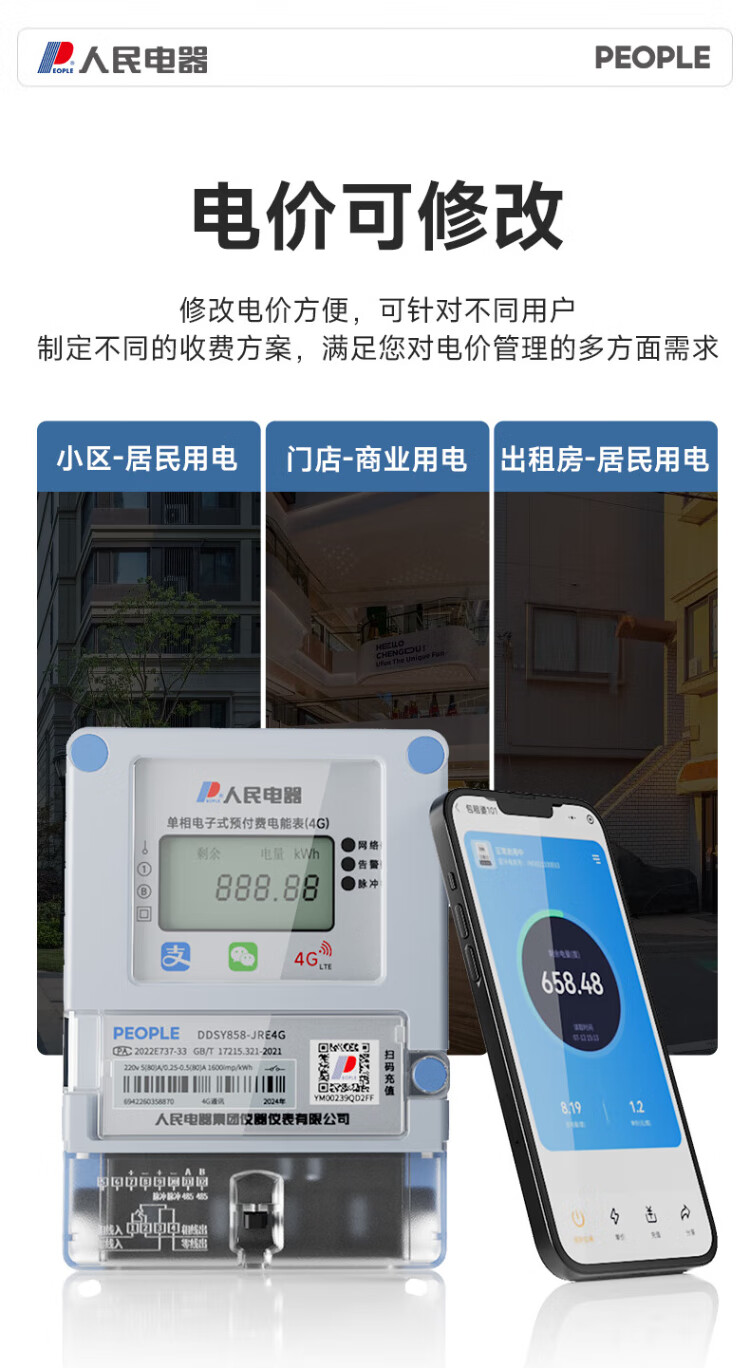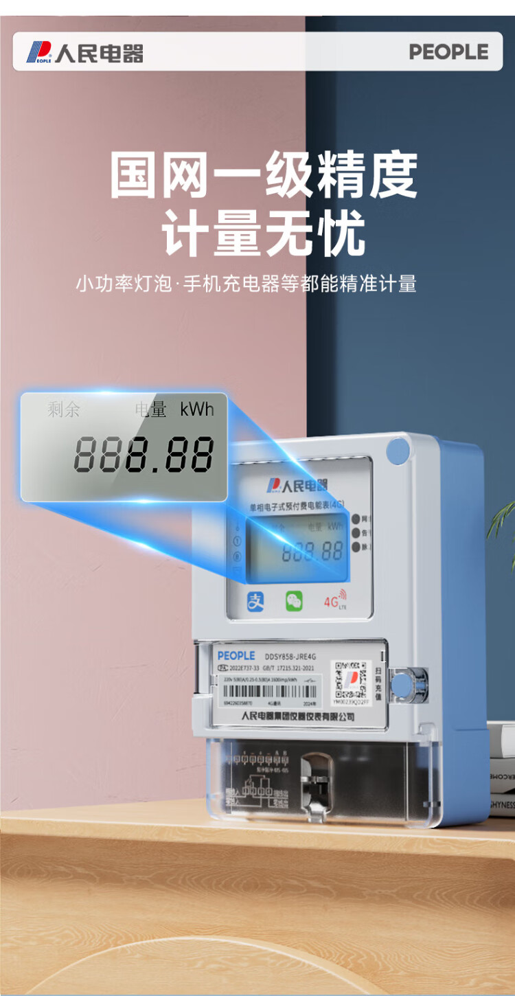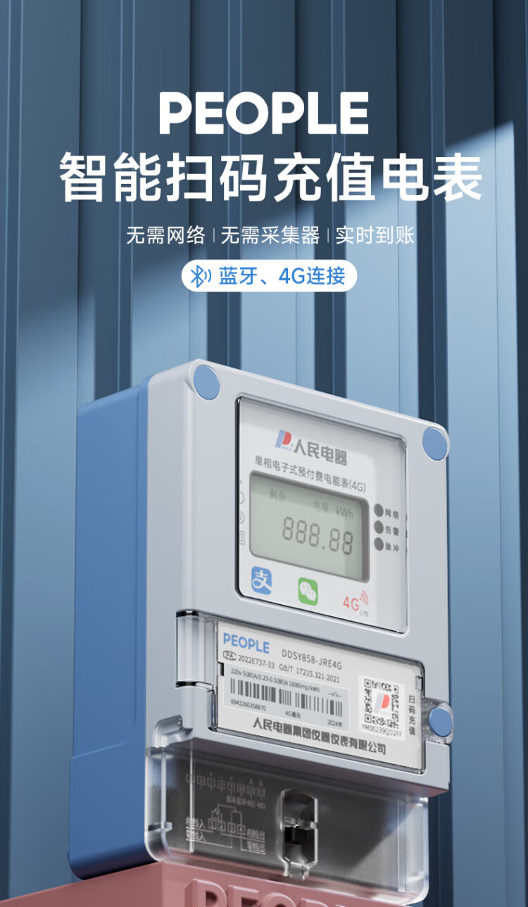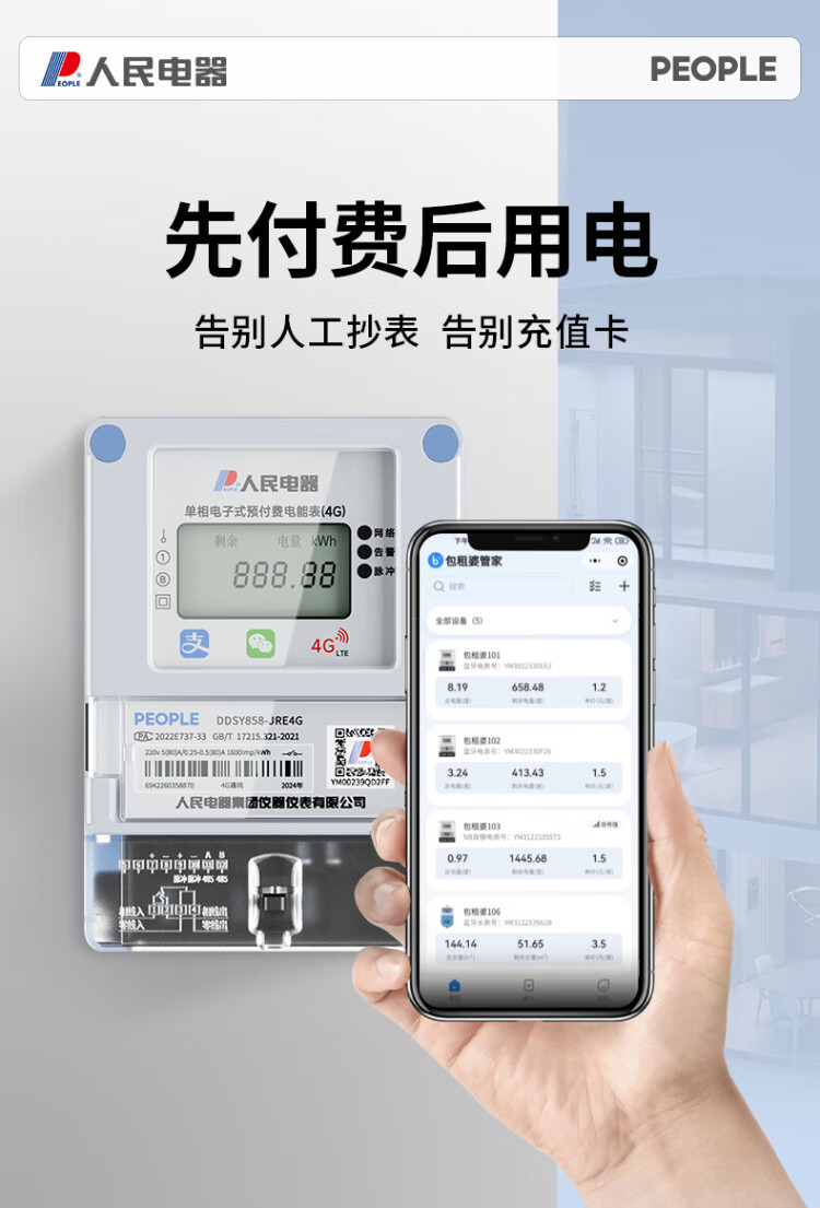 People's smart meter prepaid energy meter 4G scan code remote recharge meter reading three-phase wall-mounted rental apartment home