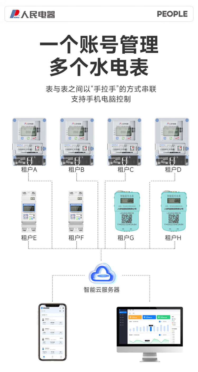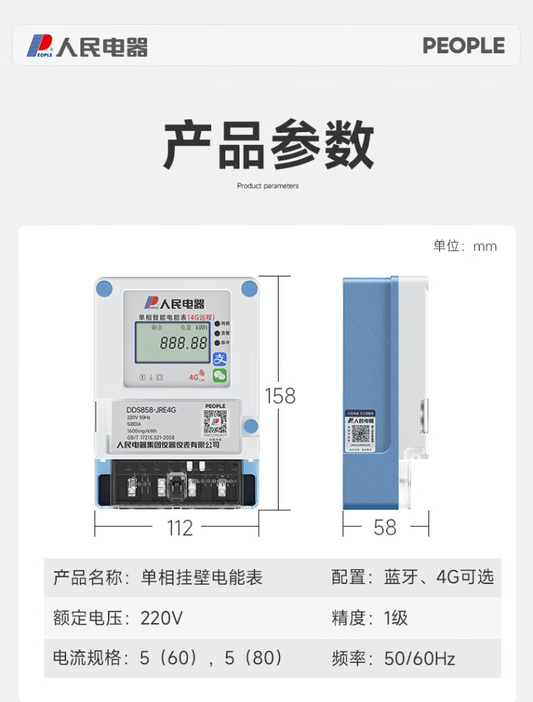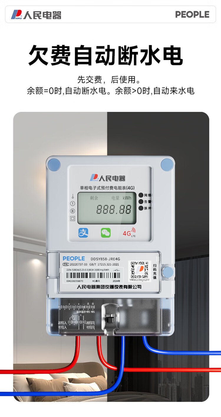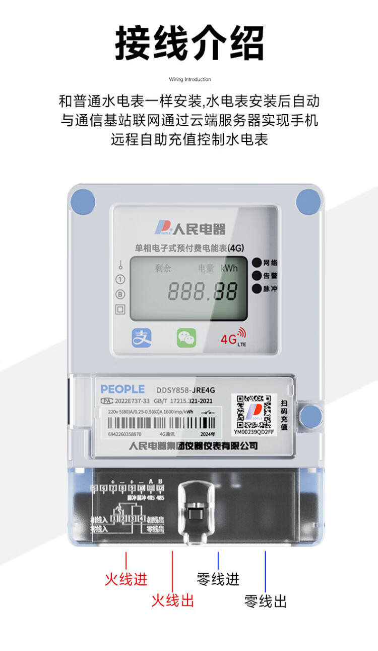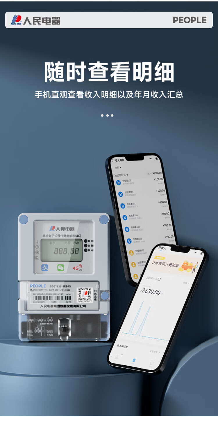 People's smart meter prepaid energy meter 4G scan code remote recharge meter reading three-phase wall-mounted rental apartment home