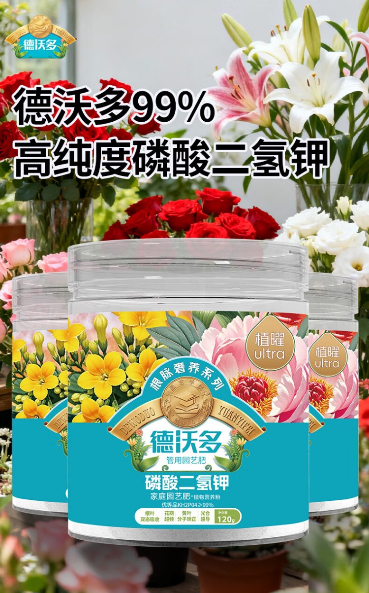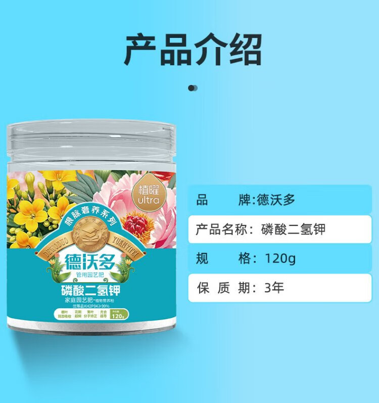 Devo polypotassium dihydrogen phosphate flower fertilizer universal 120g gardening flower potted flower growing fertilizer vegetable phosphorus potassium fertilizer water-soluble fertilizer