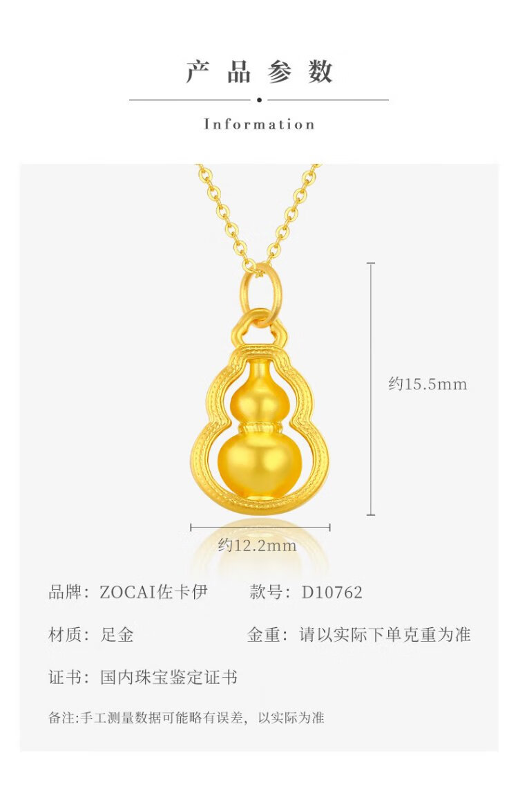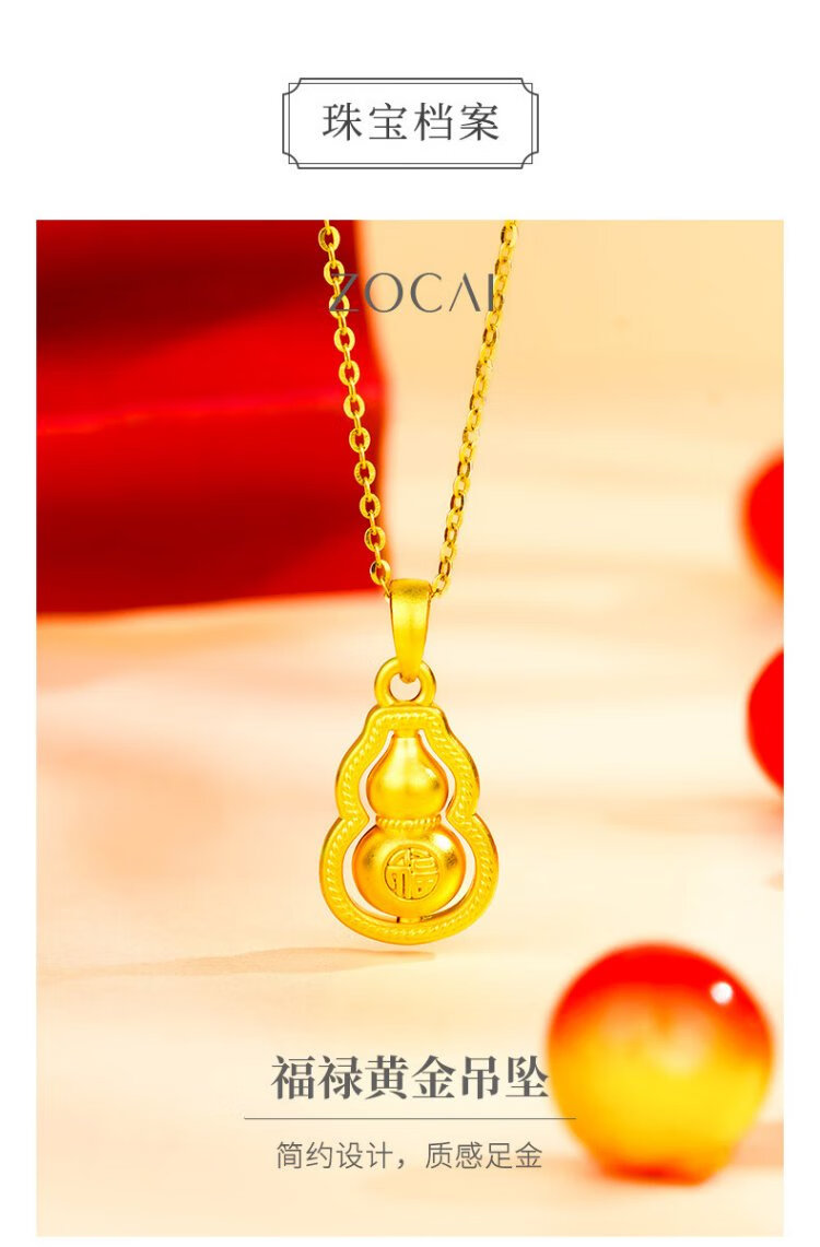 Zokai gold necklace women's football gold Fulu gourd pendant gold necklace birthday gift for girlfriend about 0.5 grams