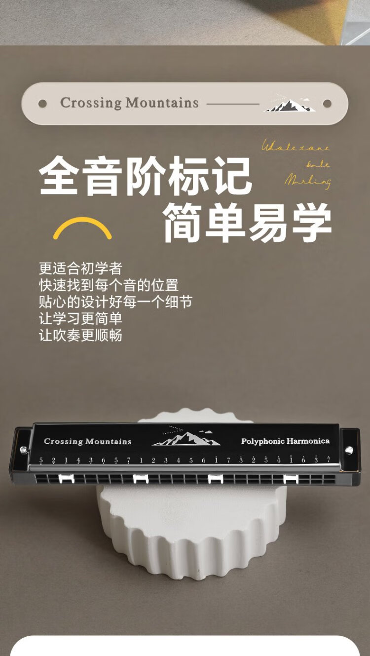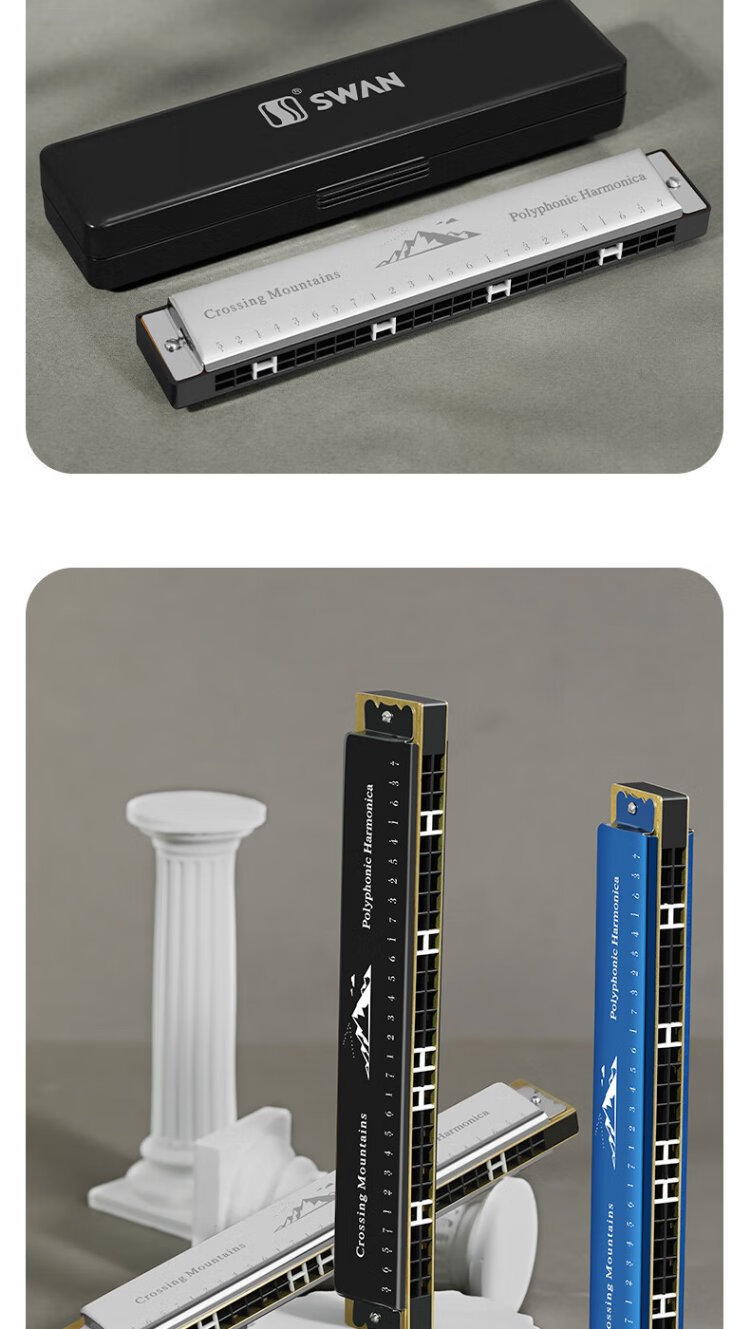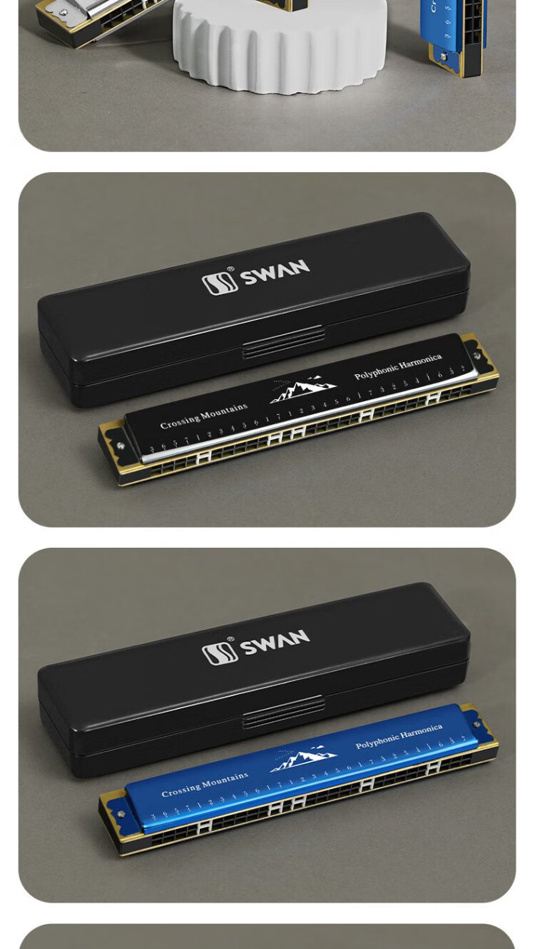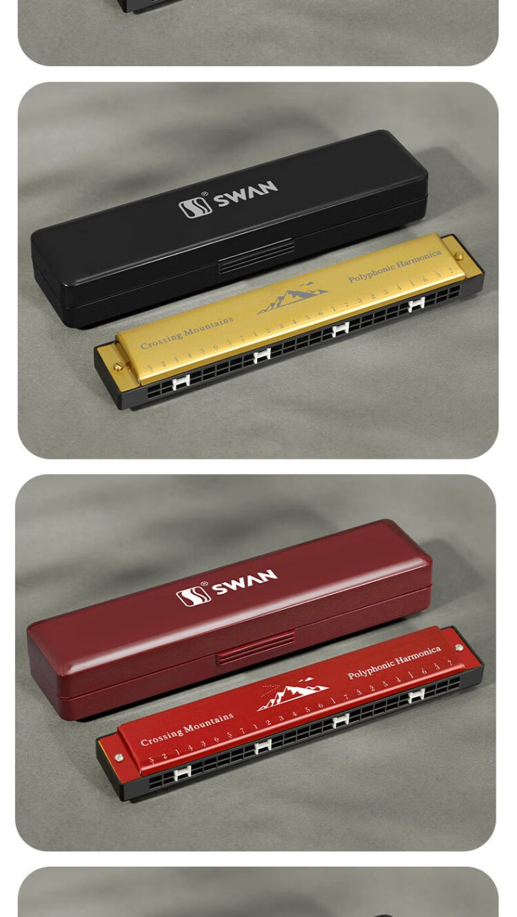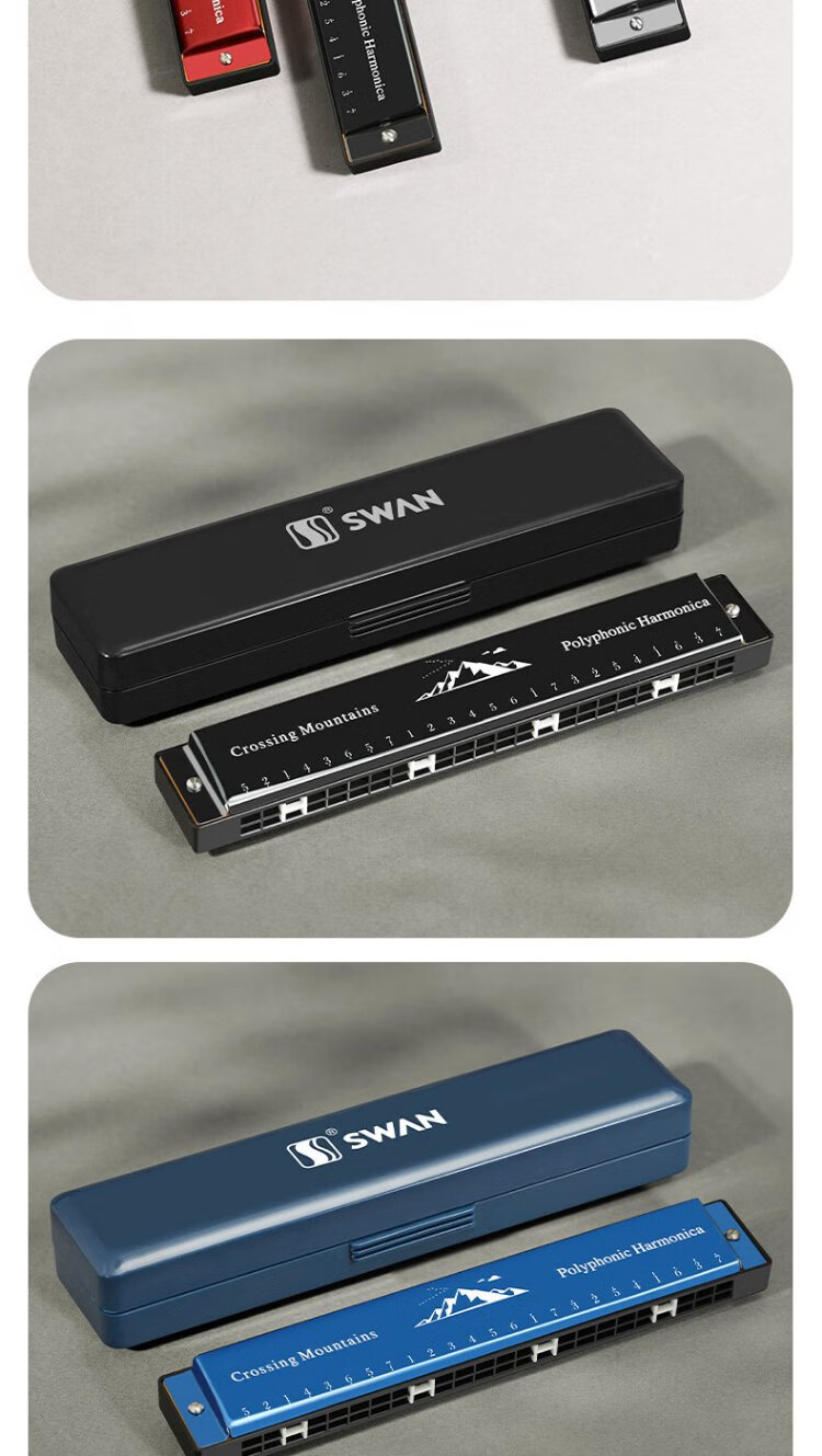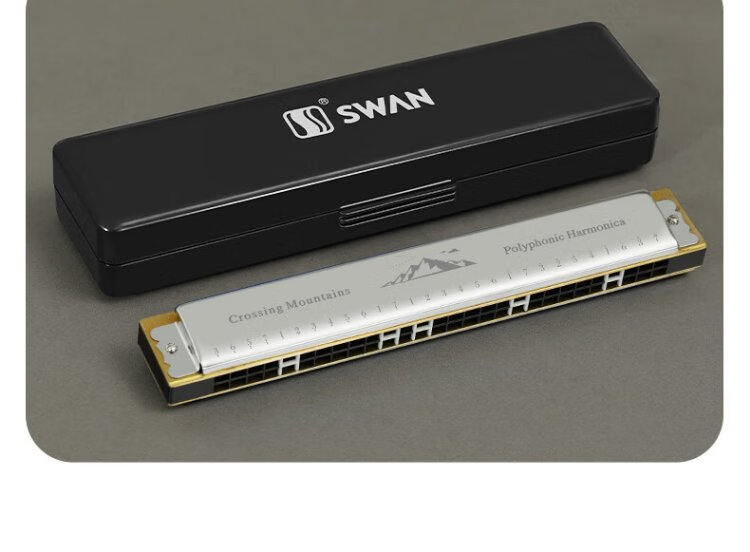 Swan (SWAN) 24-hole polyphonic harmonica for beginners, entry-level students, professional playing harmonica in C key (black)