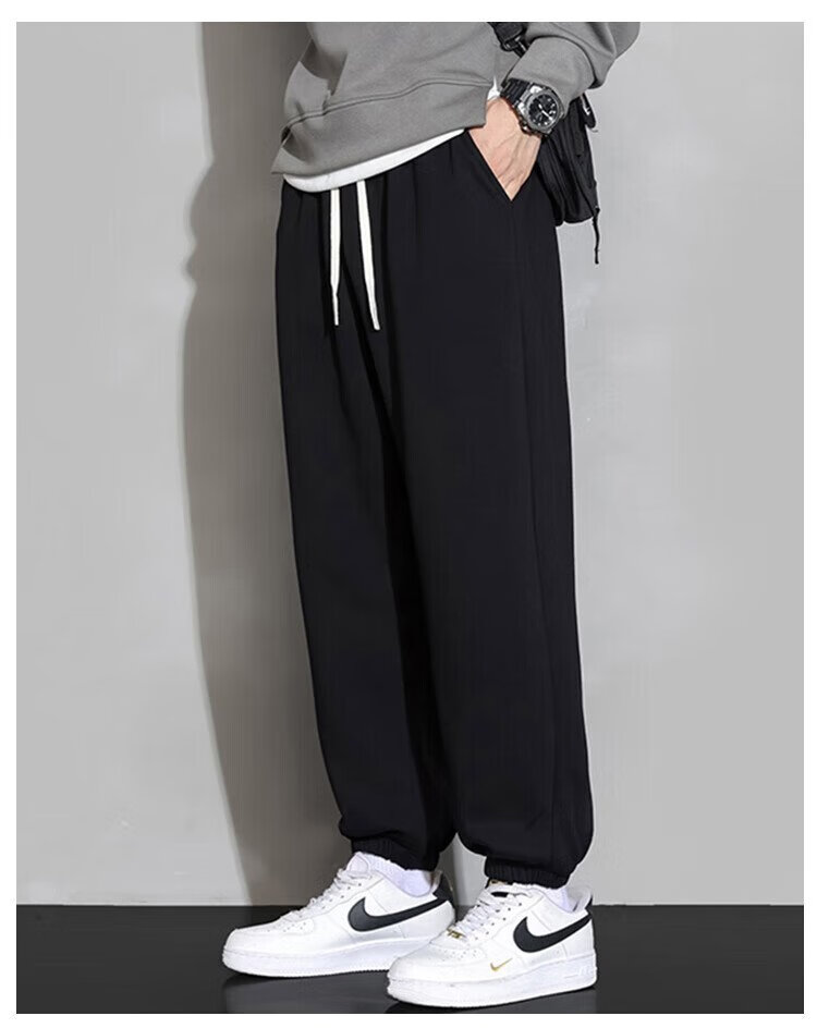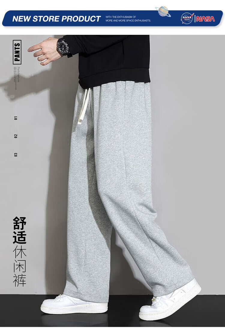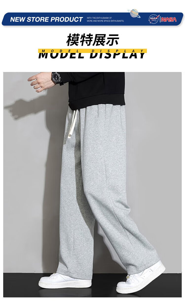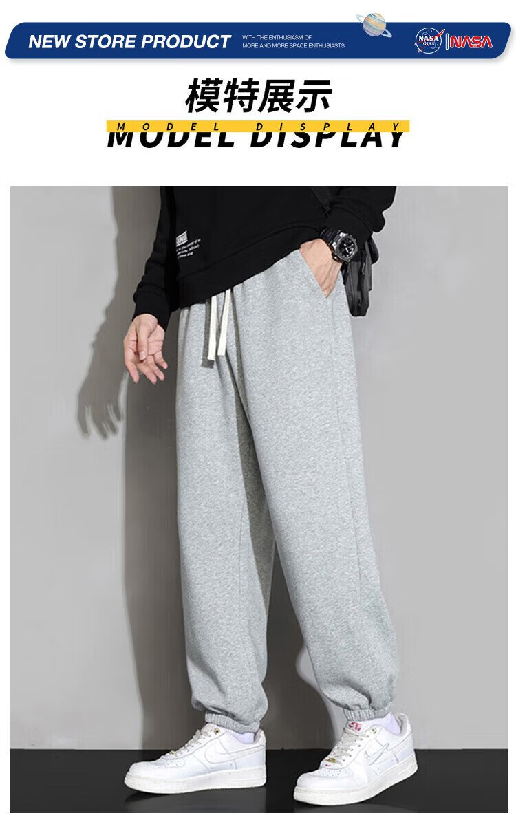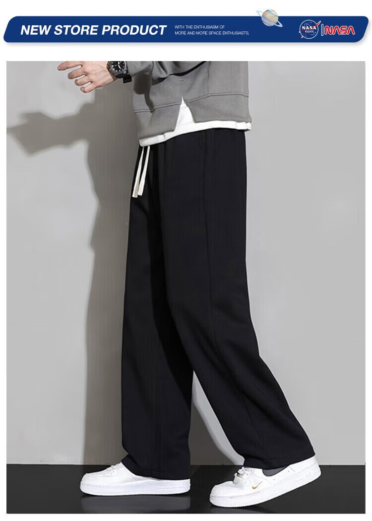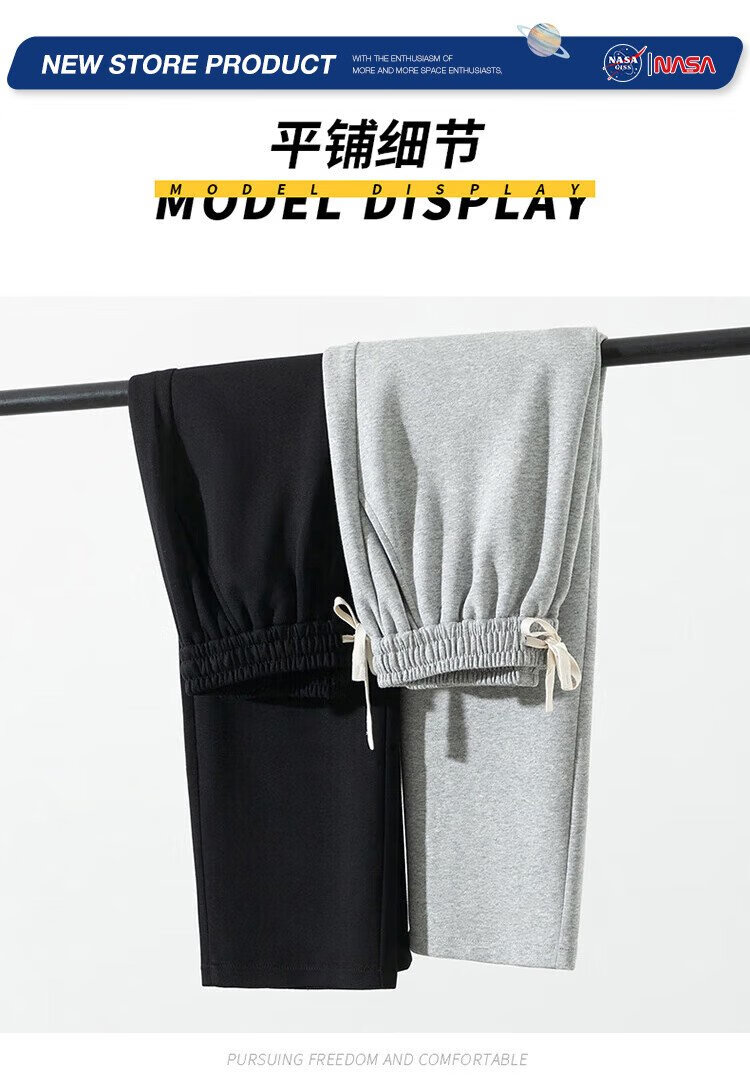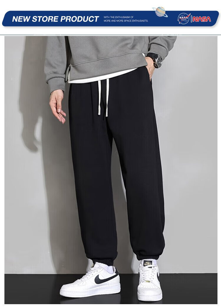 NASA GISS sports leggings men's trendy loose casual pants solid color long pants black leggings (180/84A)XL
