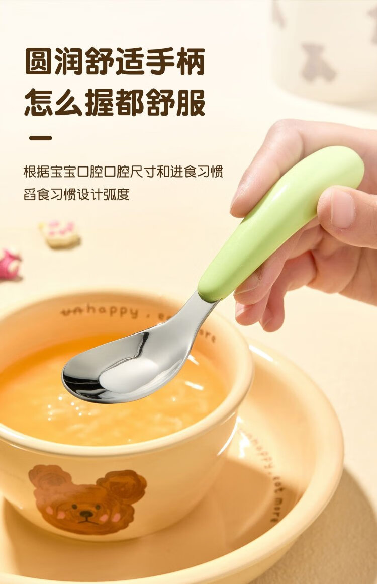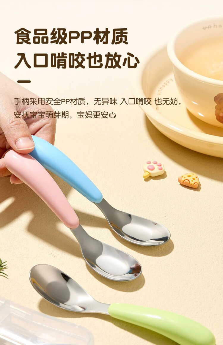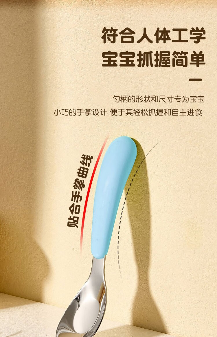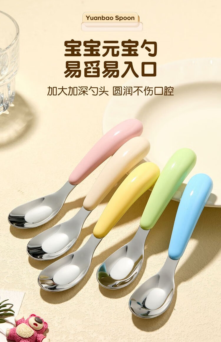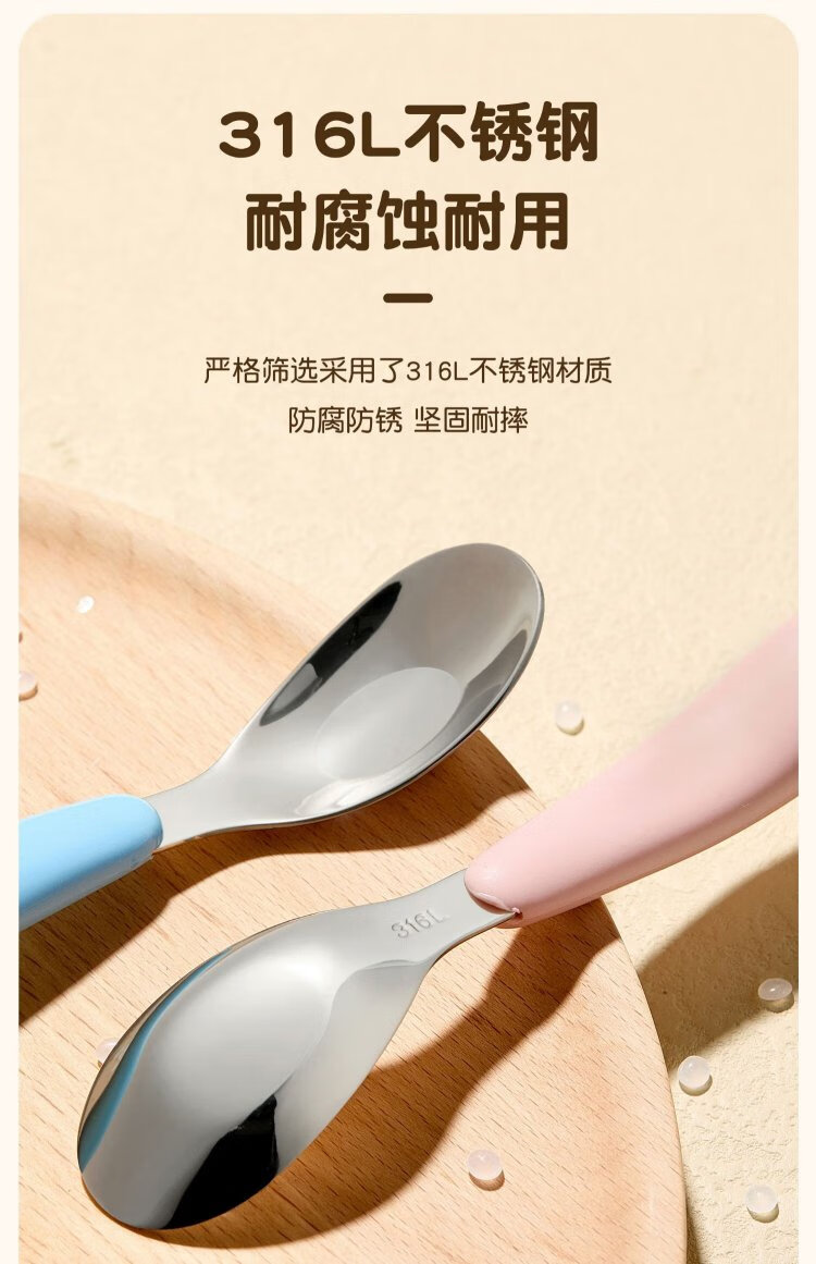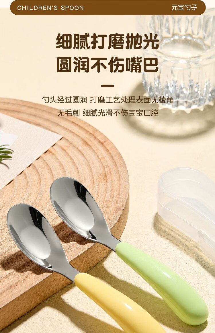 COOKSS baby spoon baby ingot spoon food supplement spoon 316 stainless steel children's training eating spoon tableware set of two