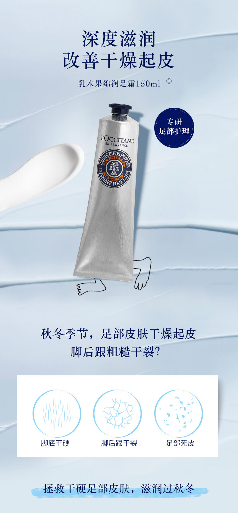L'Occitane 25% Shea Butter Moisturizing Foot Cream 150ml Special Moisturizing Foot Moisturizing French Men and Women Gift