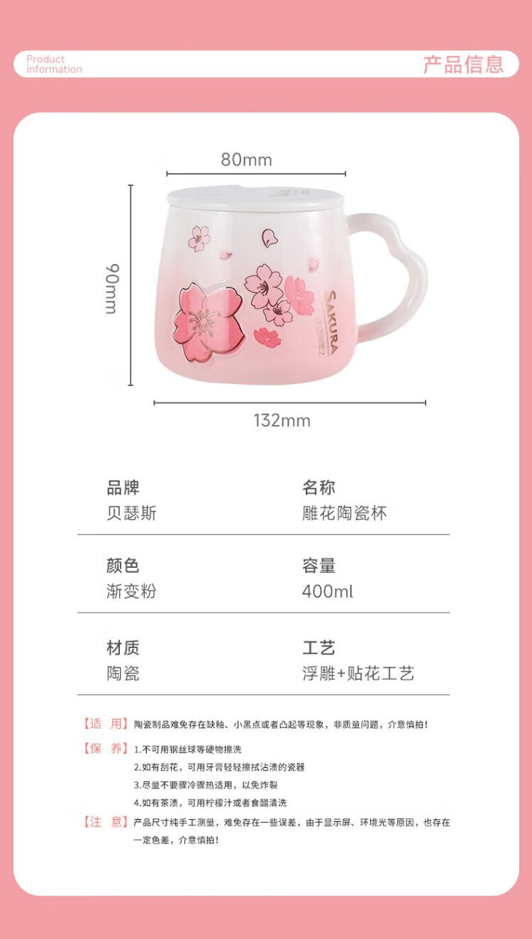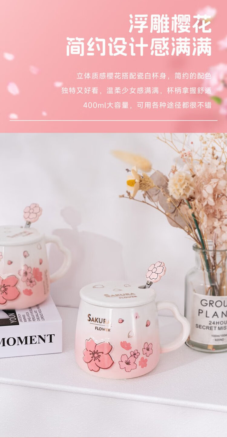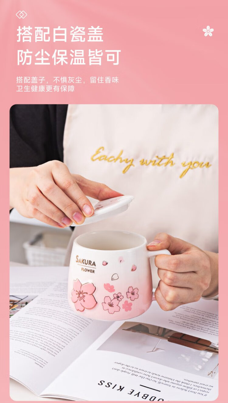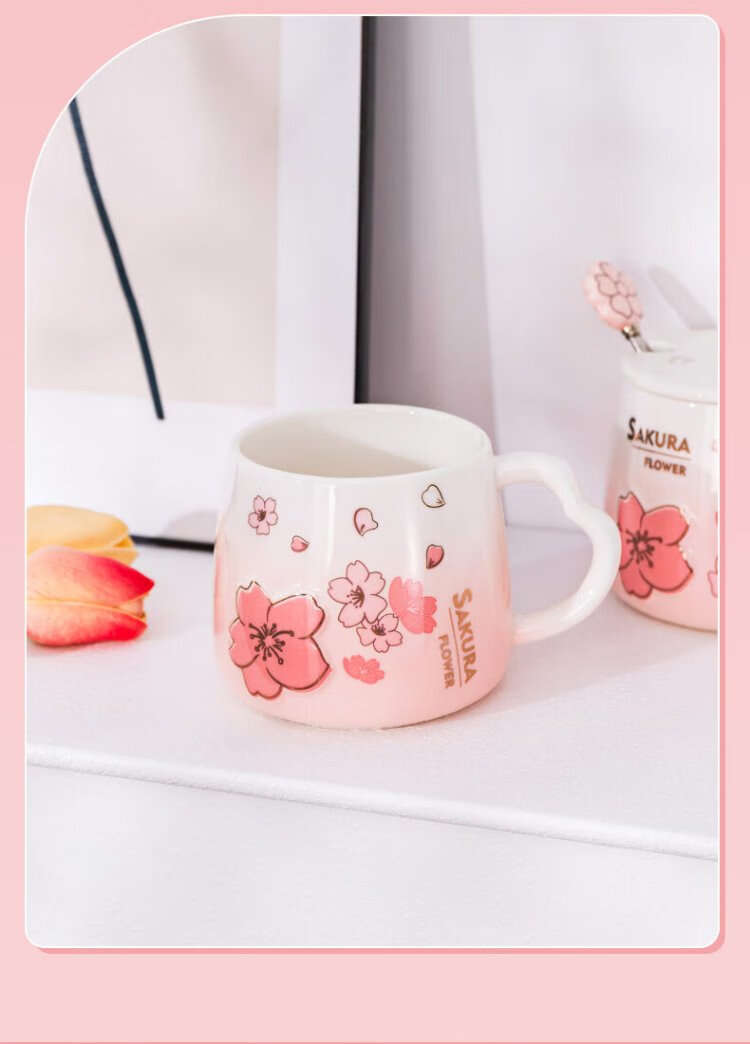 Bethes mug ceramic cup drinking cup coffee cup cherry blossom embossed tea cup with lid office home water cup