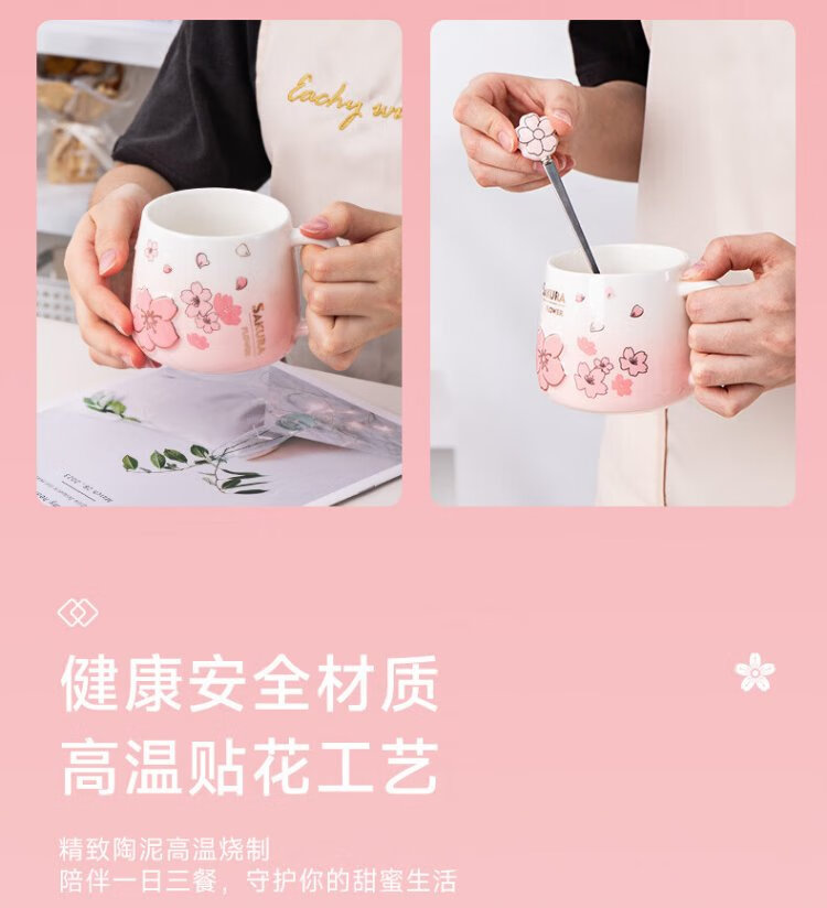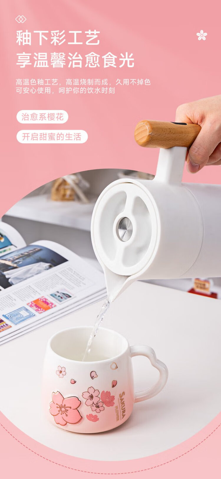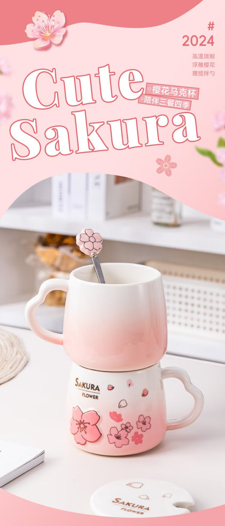 Bethes mug ceramic cup drinking cup coffee cup cherry blossom embossed tea cup with lid office home water cup