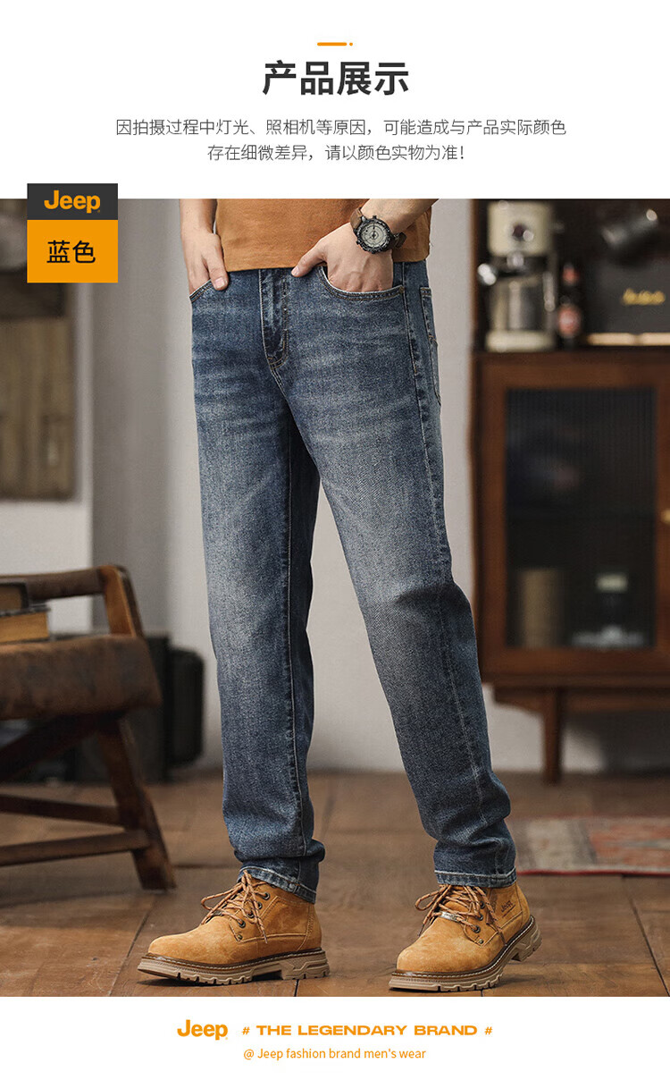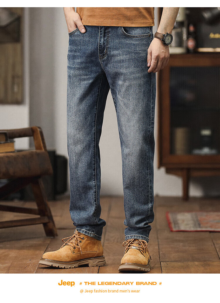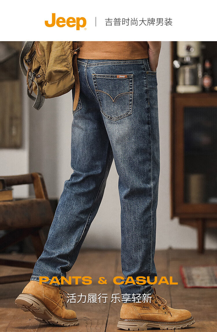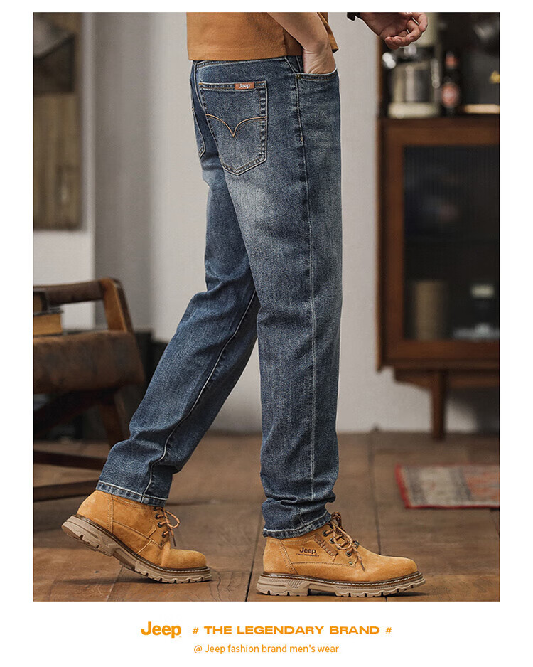 JEEP Jeep Jeans Men's Autumn and Winter Loose Casual Pants Men's Trendy Versatile Straight Men's Pants Blue 34