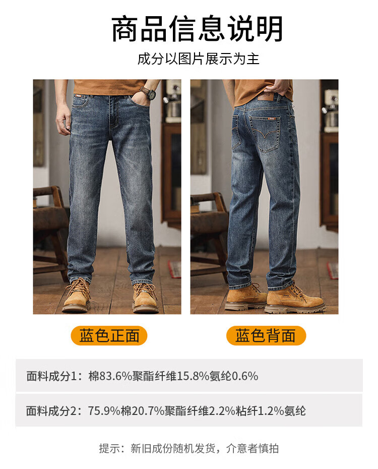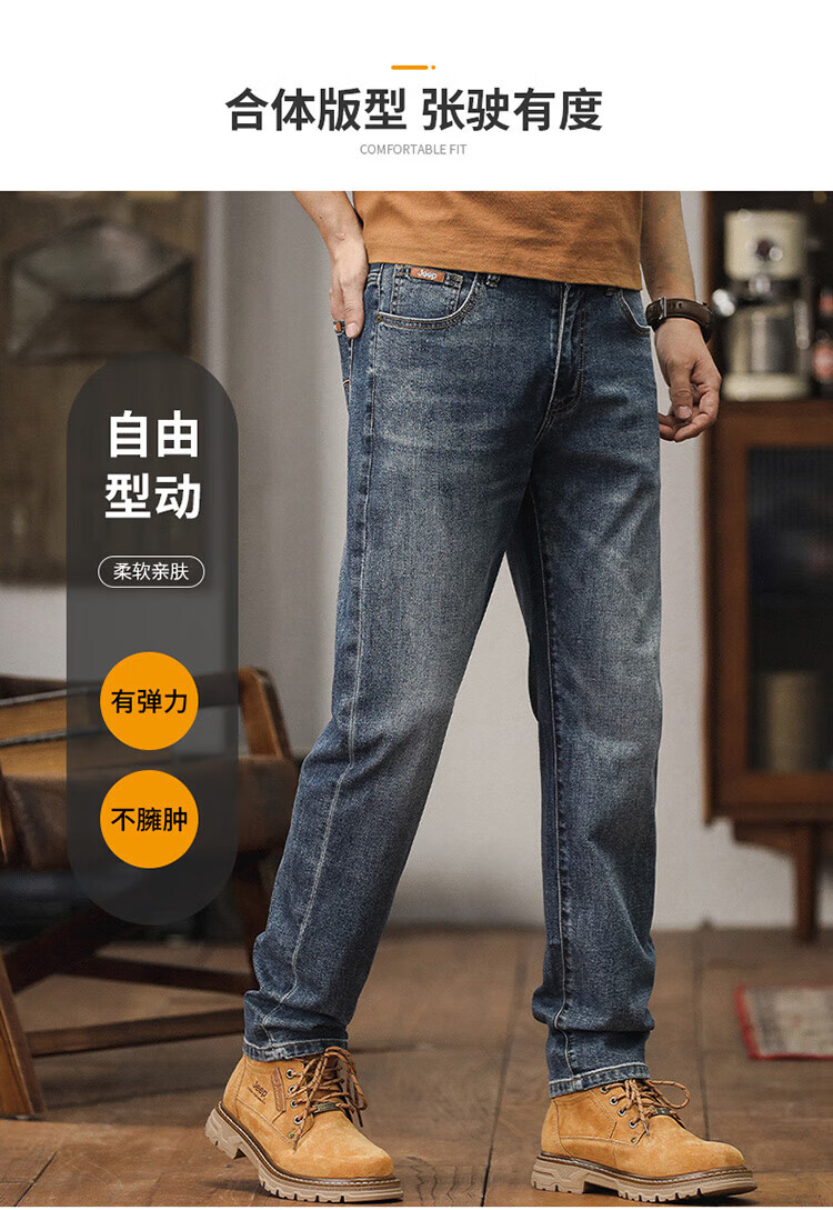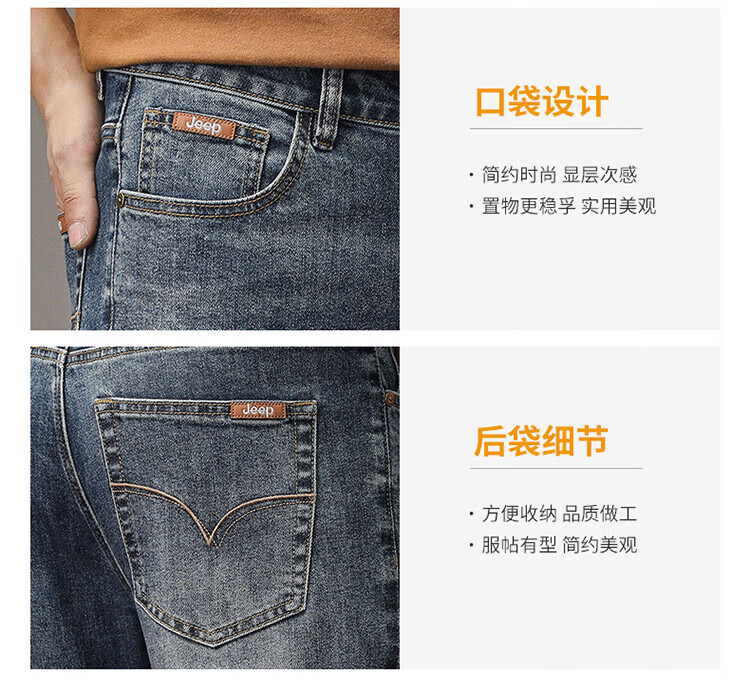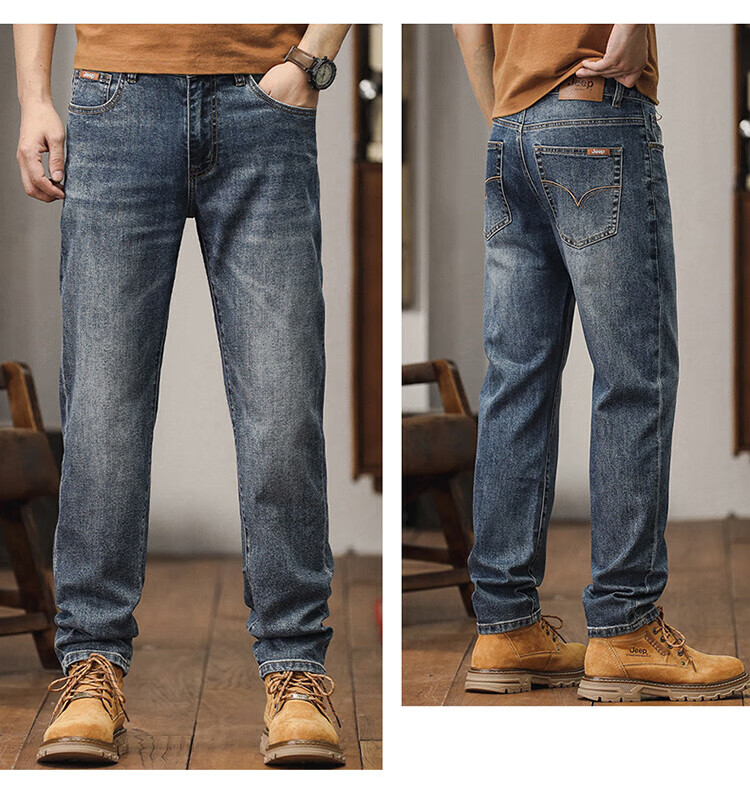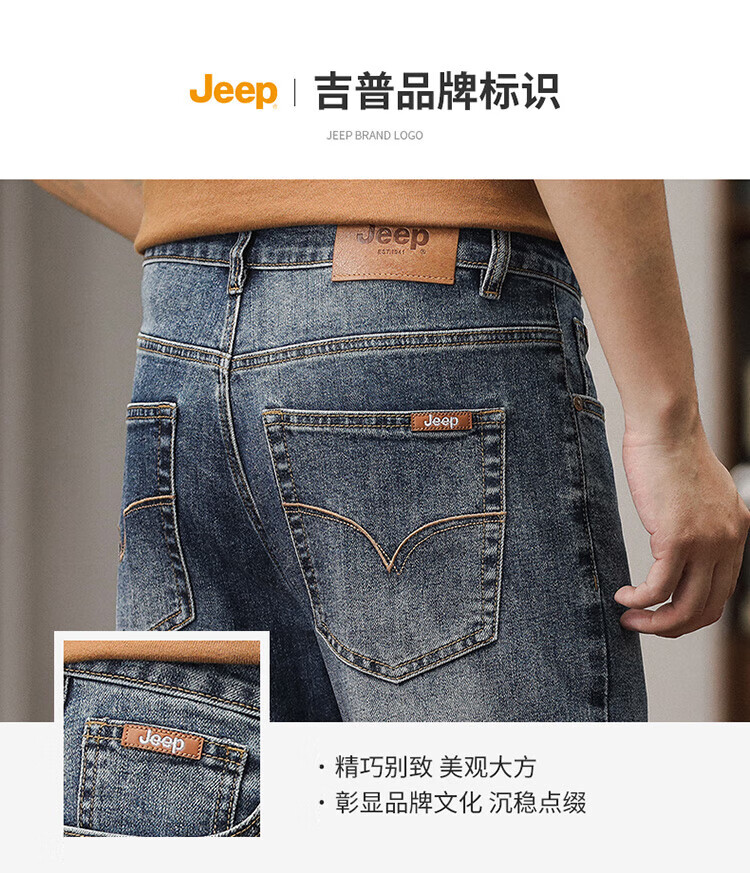 JEEP Jeep Jeans Men's Autumn and Winter Loose Casual Pants Men's Trendy Versatile Straight Men's Pants Blue 34