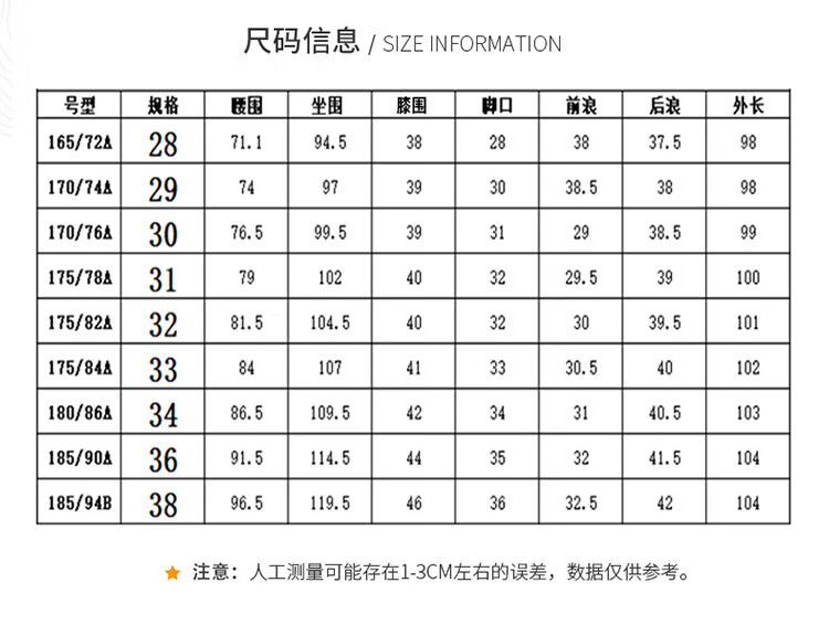 USA(inch) 28-30 30-32 32-34 34-38 38-42
