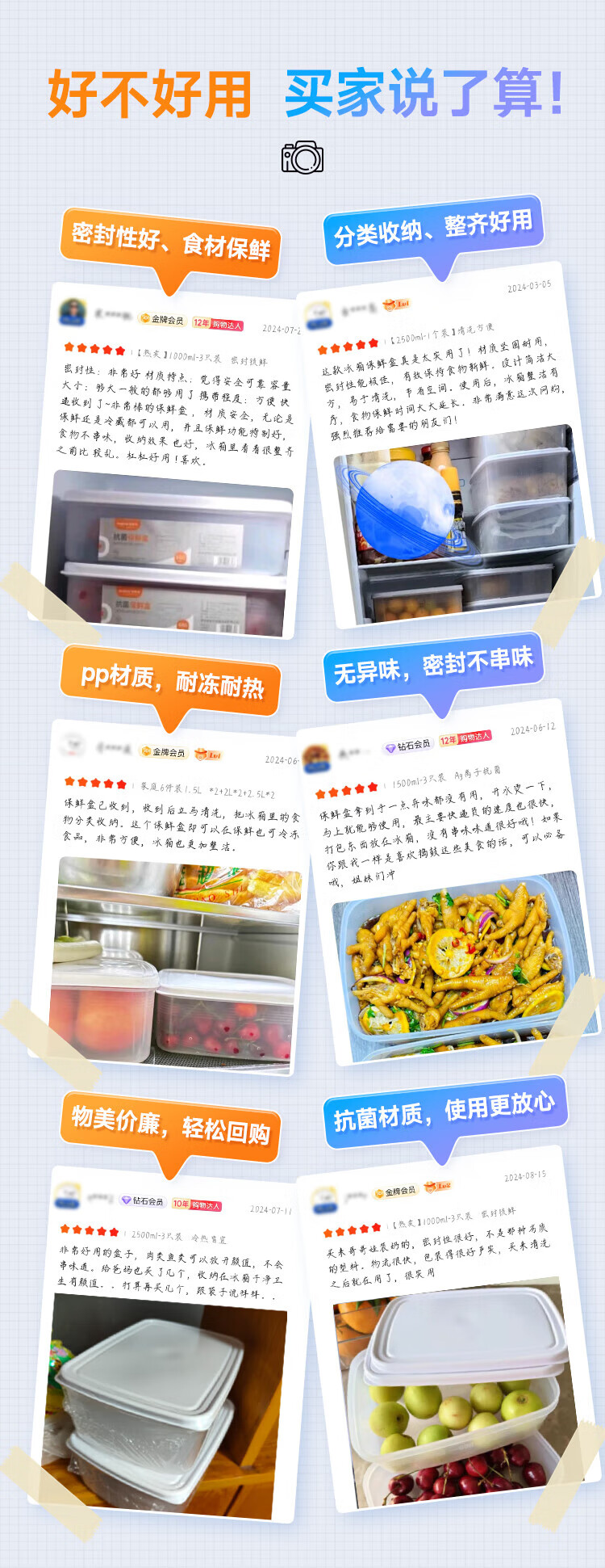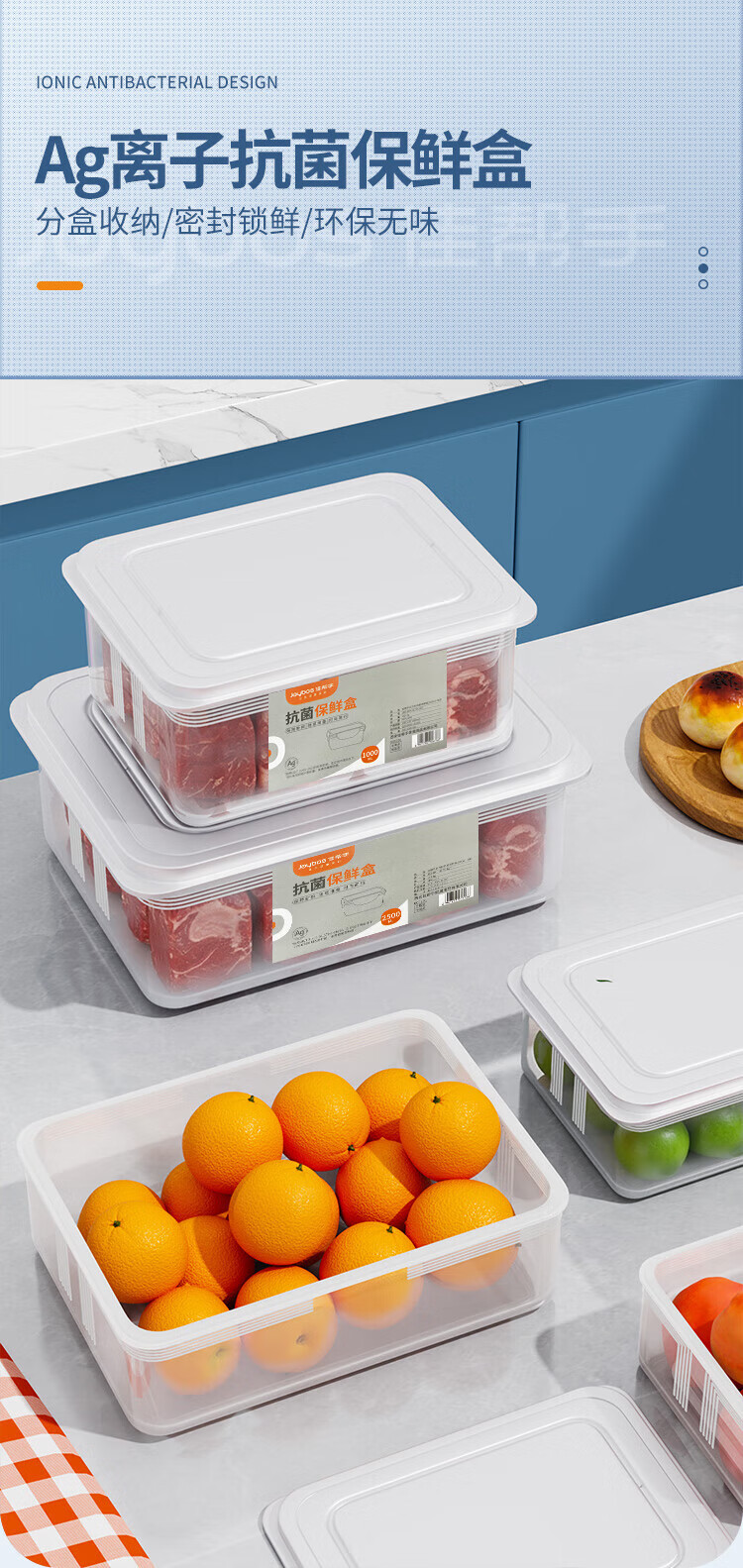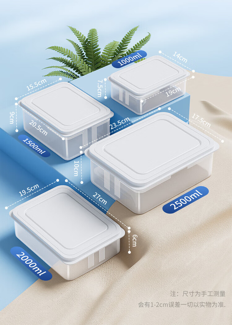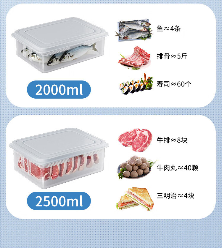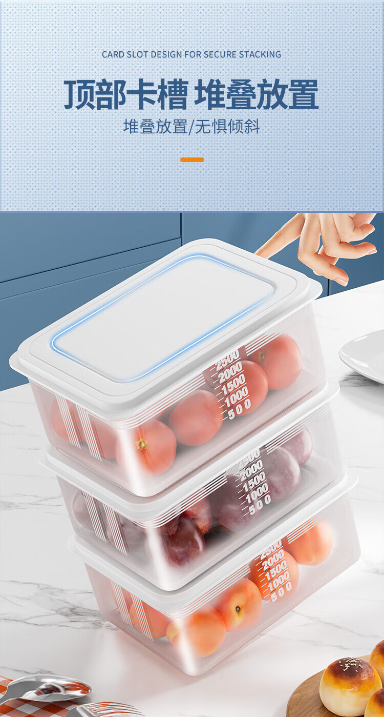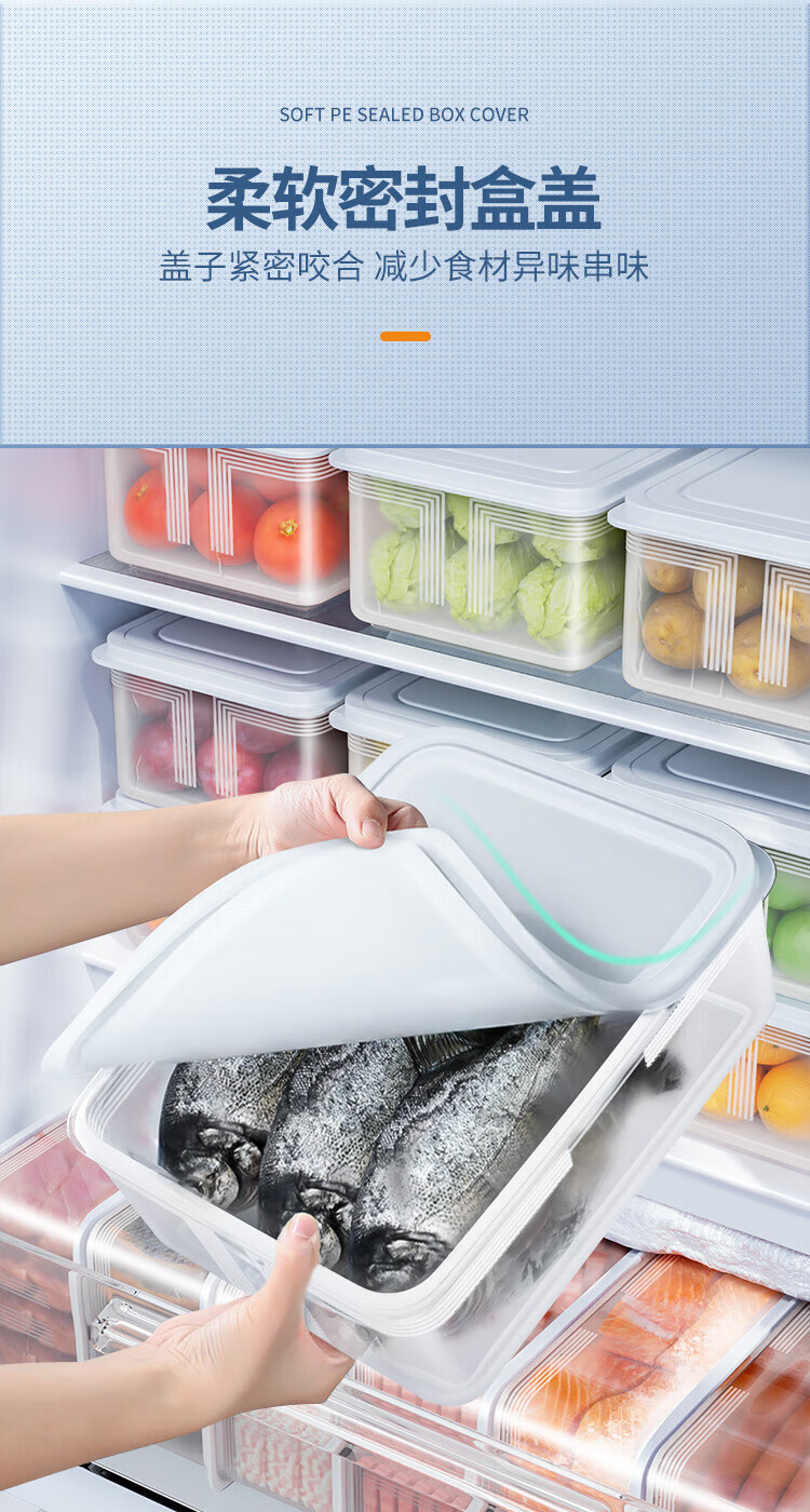 Best Helper Refrigerator Fresh Box Food Grade Antibacterial Storage Box Sealed Fruit and Vegetable Freezer Box 2500ml 3 Pack