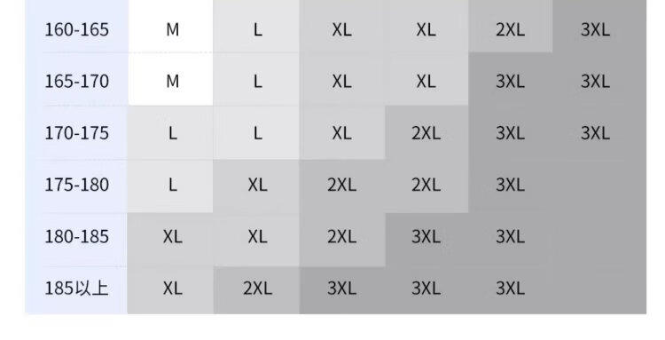 China (cm) 165 / 88-90 170 / 96-98 175 / 108-110 180 / 118-122 185 / 126-130