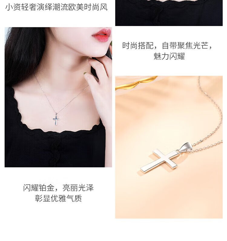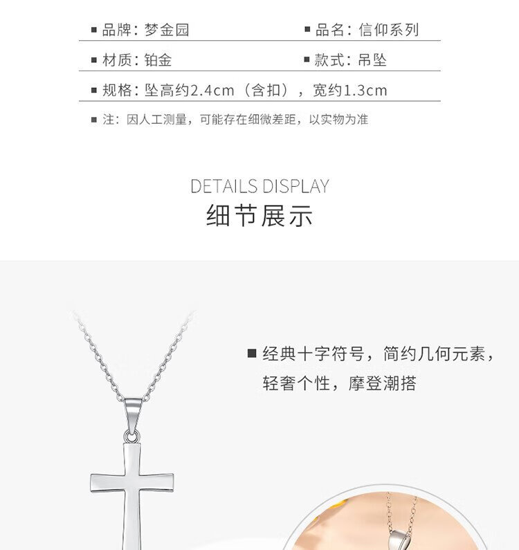 Mengjinyuan platinum PT950 cross pendant platinum necklace men and women wide pendant for girlfriend