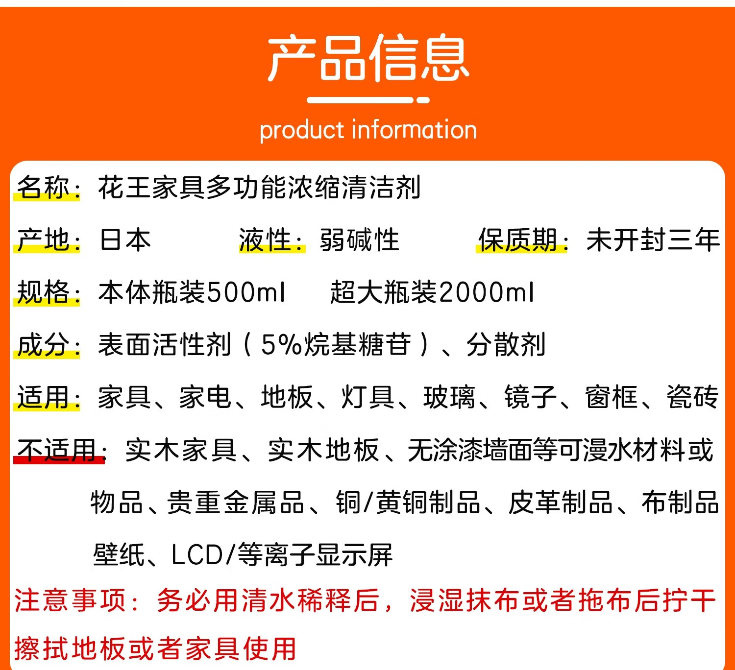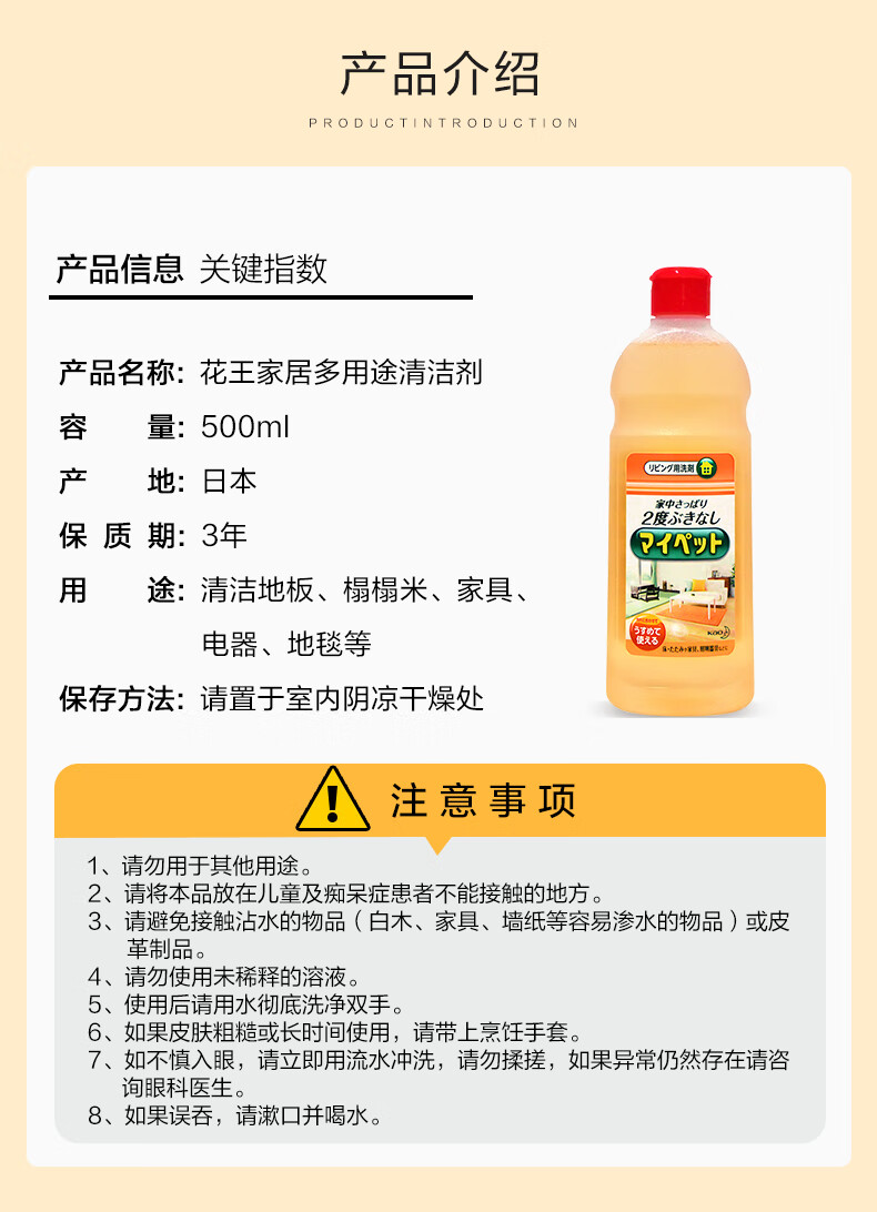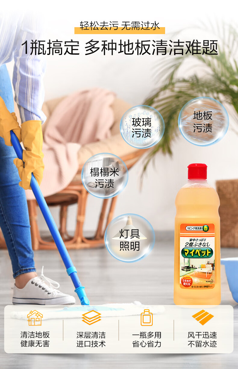 花王(KAO)多用途地板清洁剂500ml 浓缩拖地清洁剂去污渍除垢瓷砖浴室清洗剂