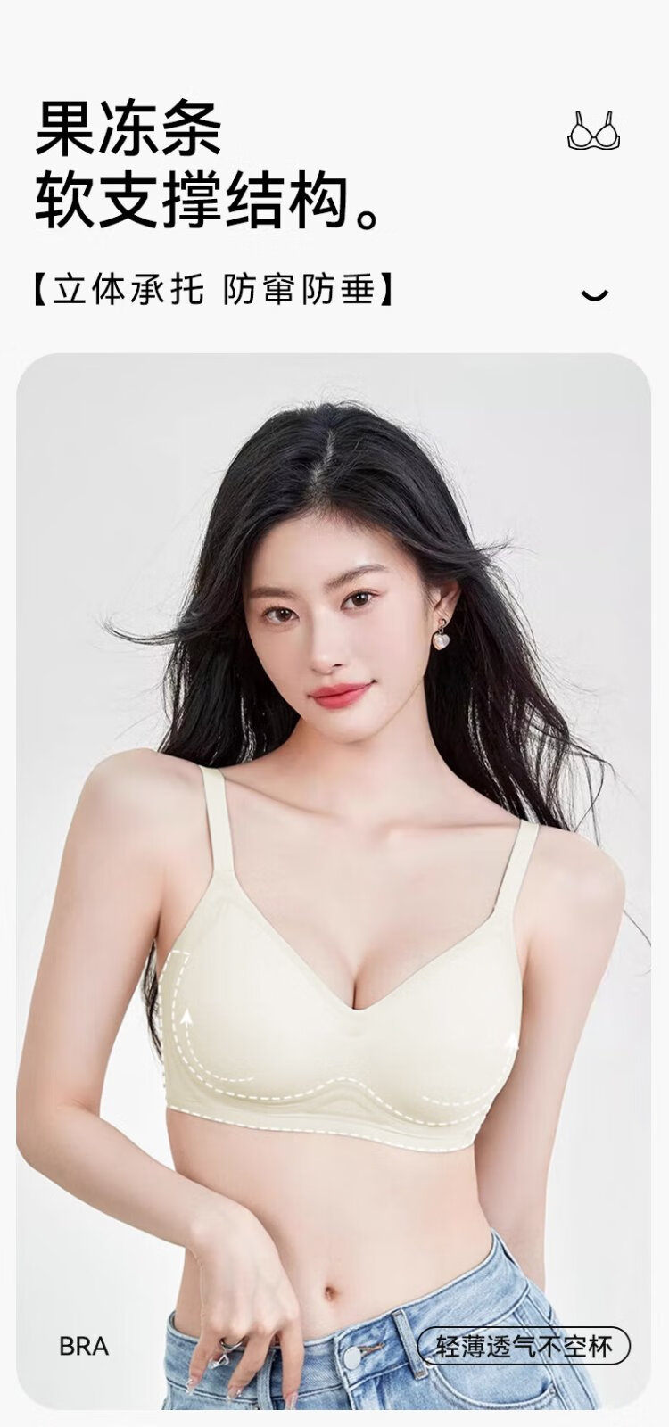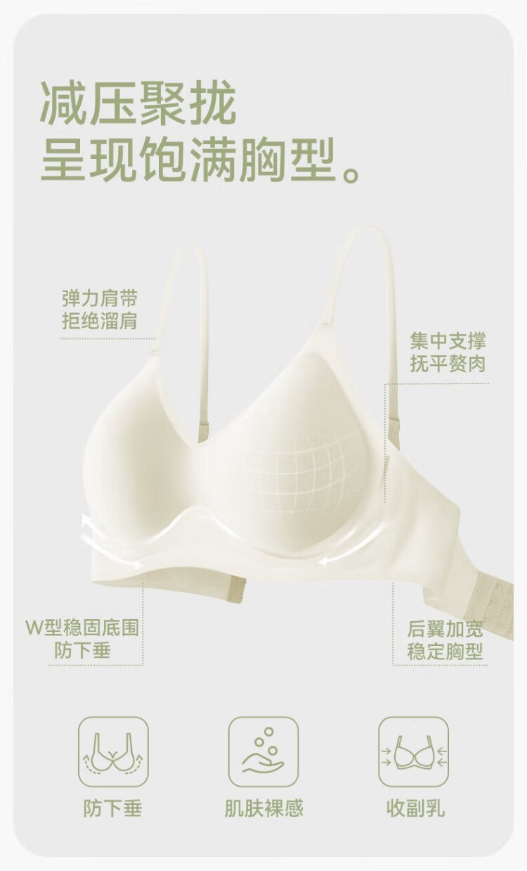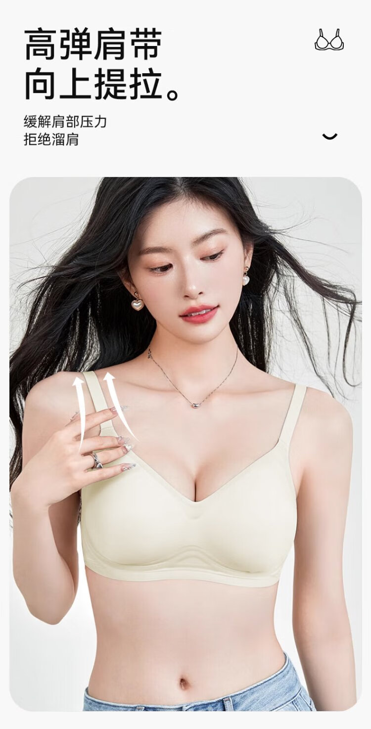FitonTon underwear women's thin jelly soft support wire-free bra push-up bra to shrink breasts and beautiful back seamless underwear