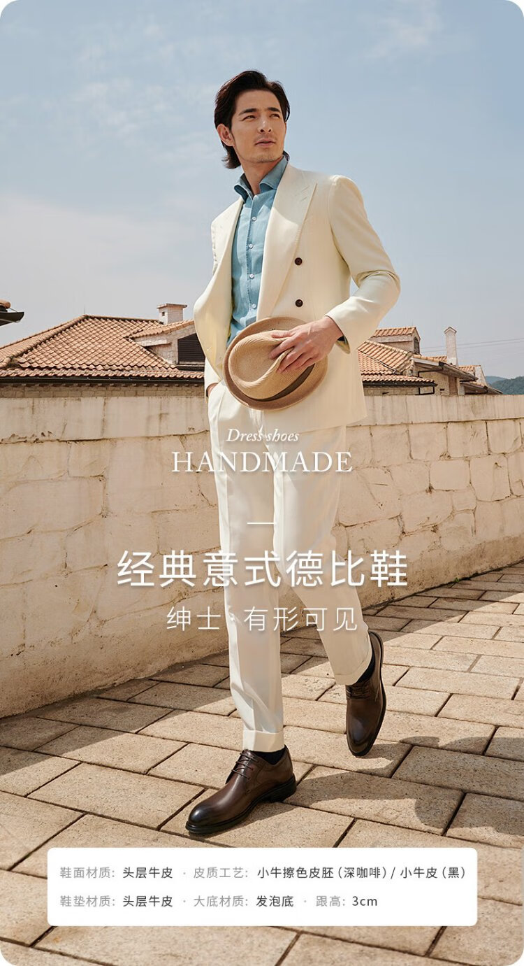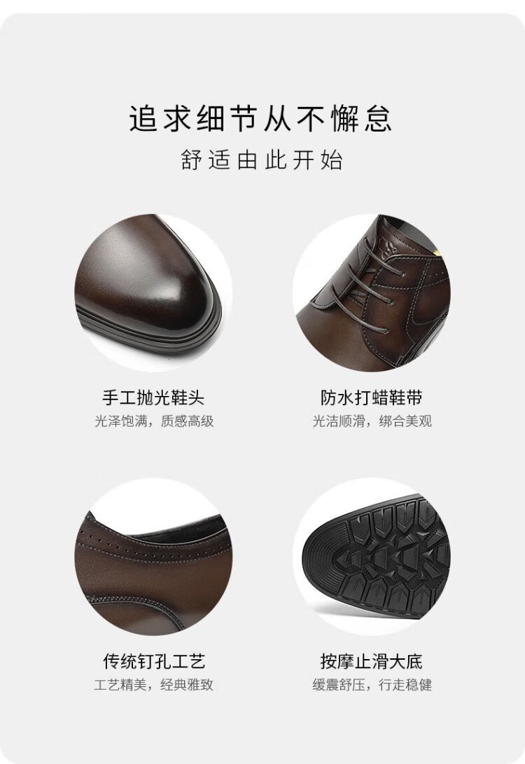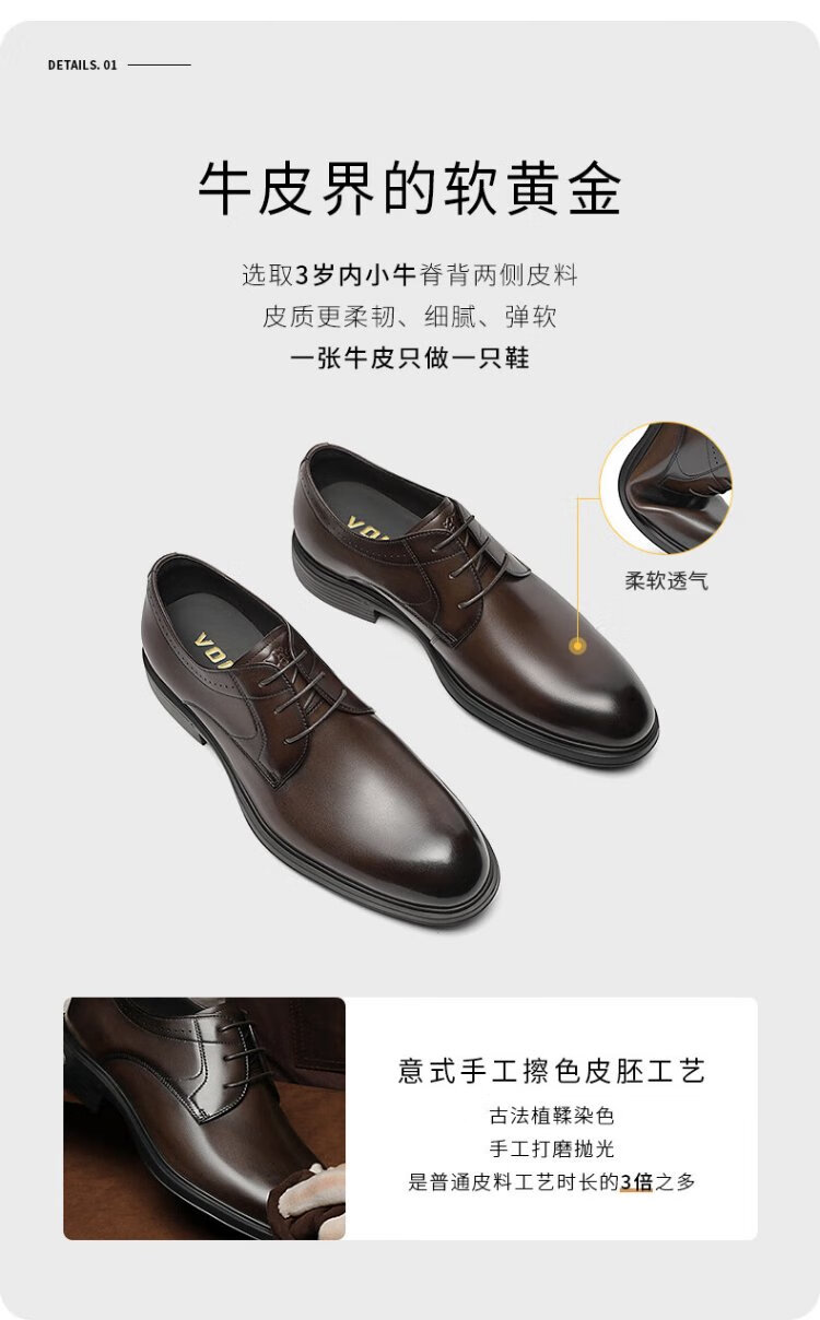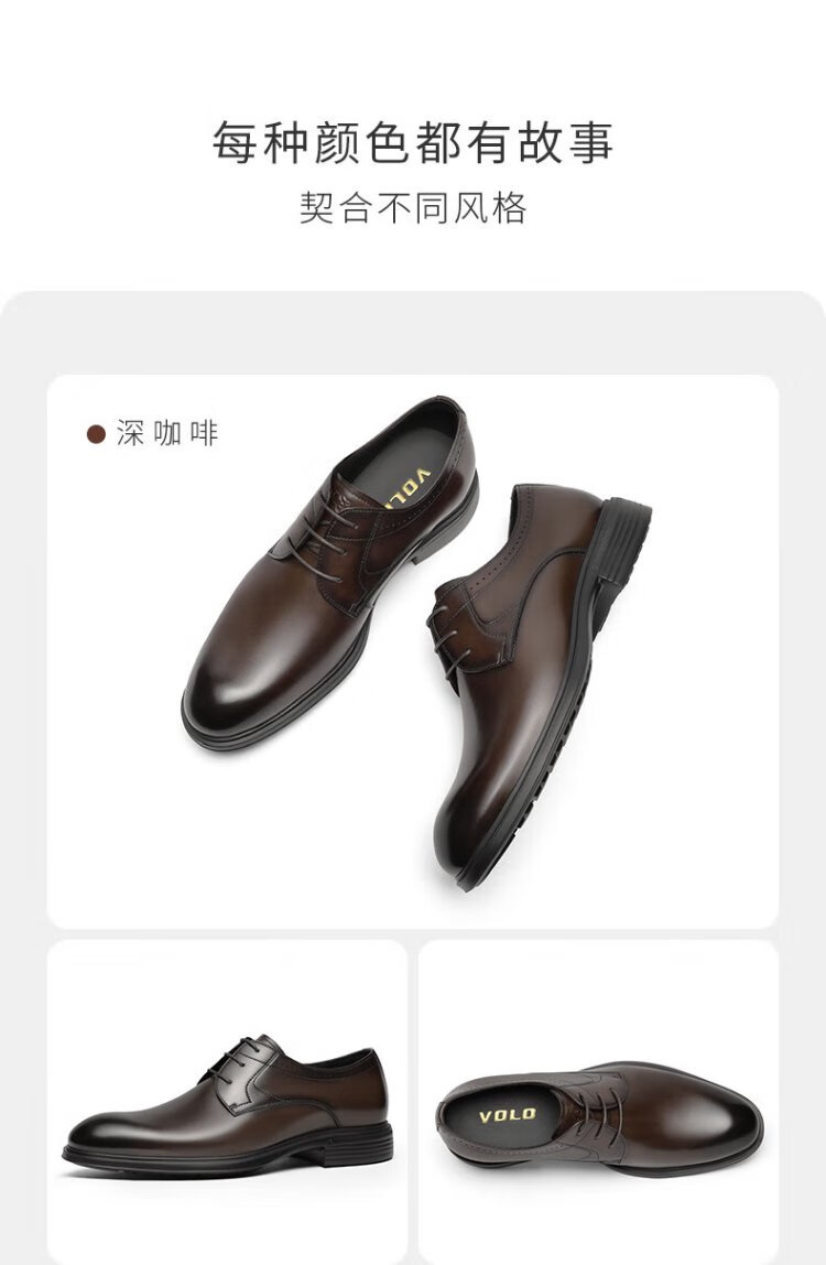 VOLO Rhino Men's Shoes Classic Formal Shoes Winter Business Casual Leather Shoes Breathable Men's Wedding Shoes Dark Coffee 43