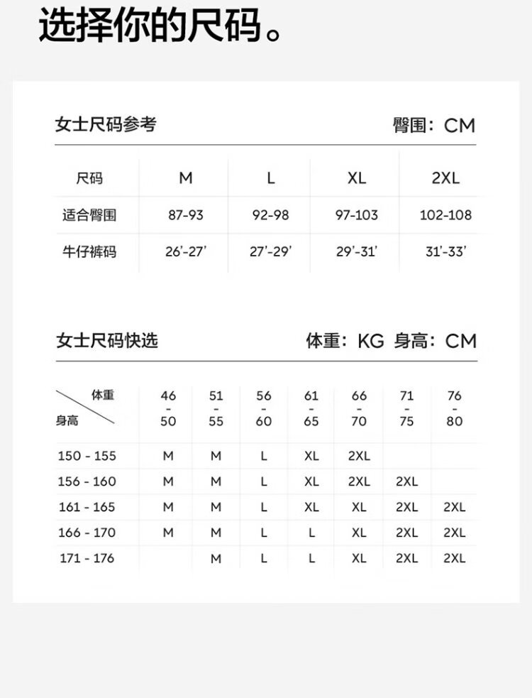 China (cm) 160-165/84-86 165-170 / 88-90 167-172 / 92-96 168-173 / 98-102 170-176 / 106-110