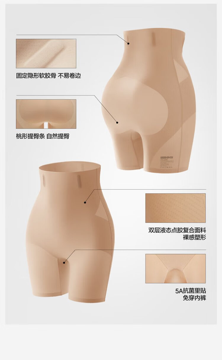 Banana Silver Leather 507Shape Shaping Pants Women's Boxer Briefs 7A Antibacterial Anti-Lighting Seamless High Waist Tummy Control Safety Pants