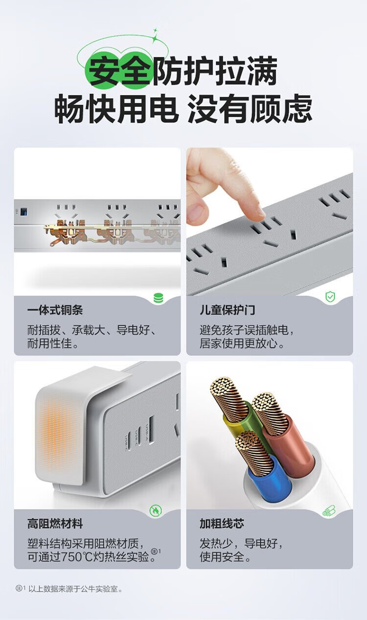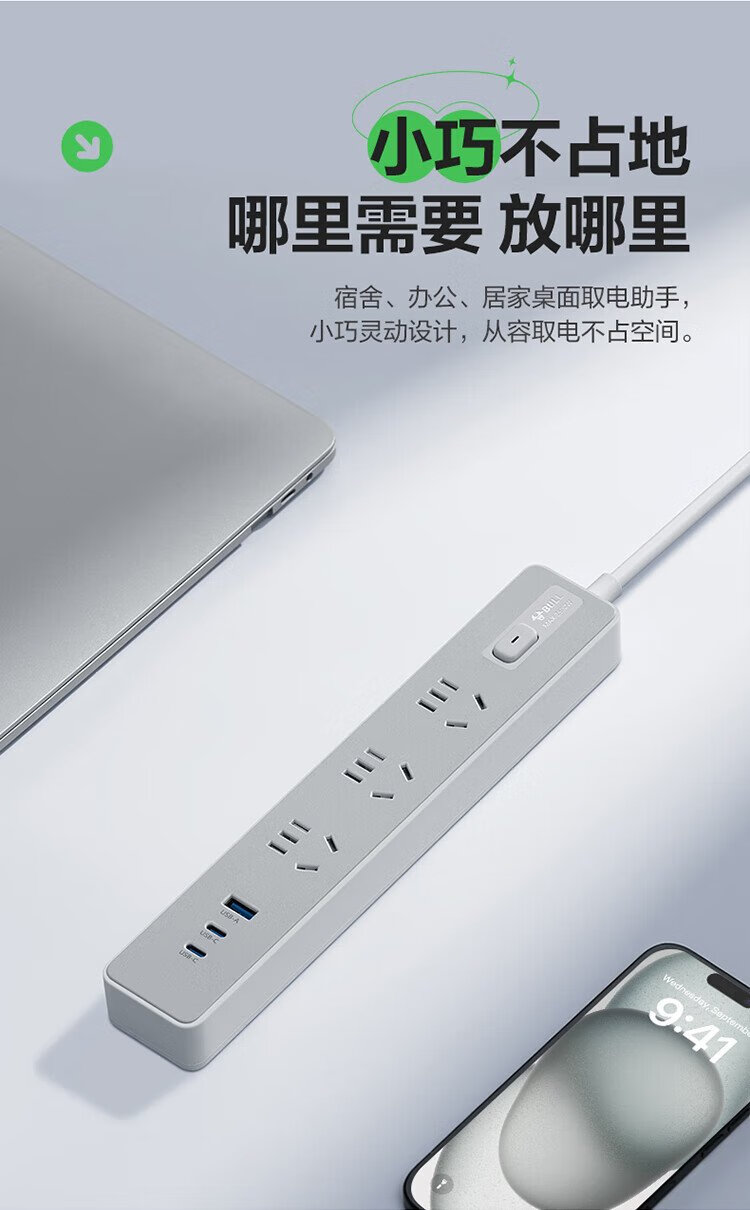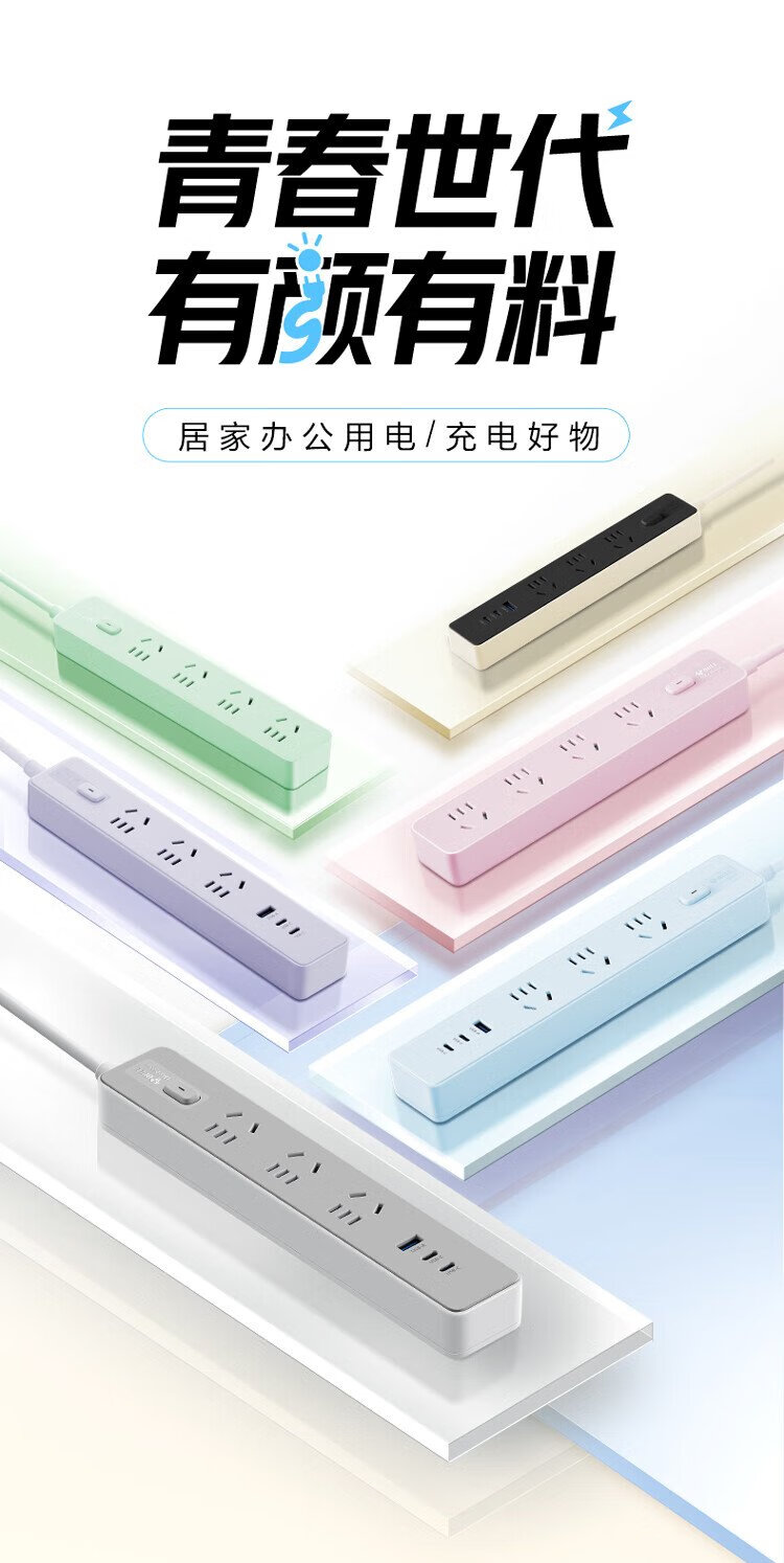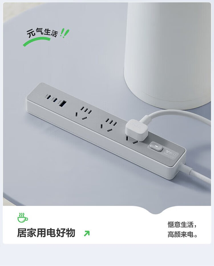 BULL (BULL) 20W PD Apple fast charging socket/strip board/socket strip/strip board Type-c+USB+3 jack full length 1.8 meters Generation Z GN-Z1031U20J master control switch