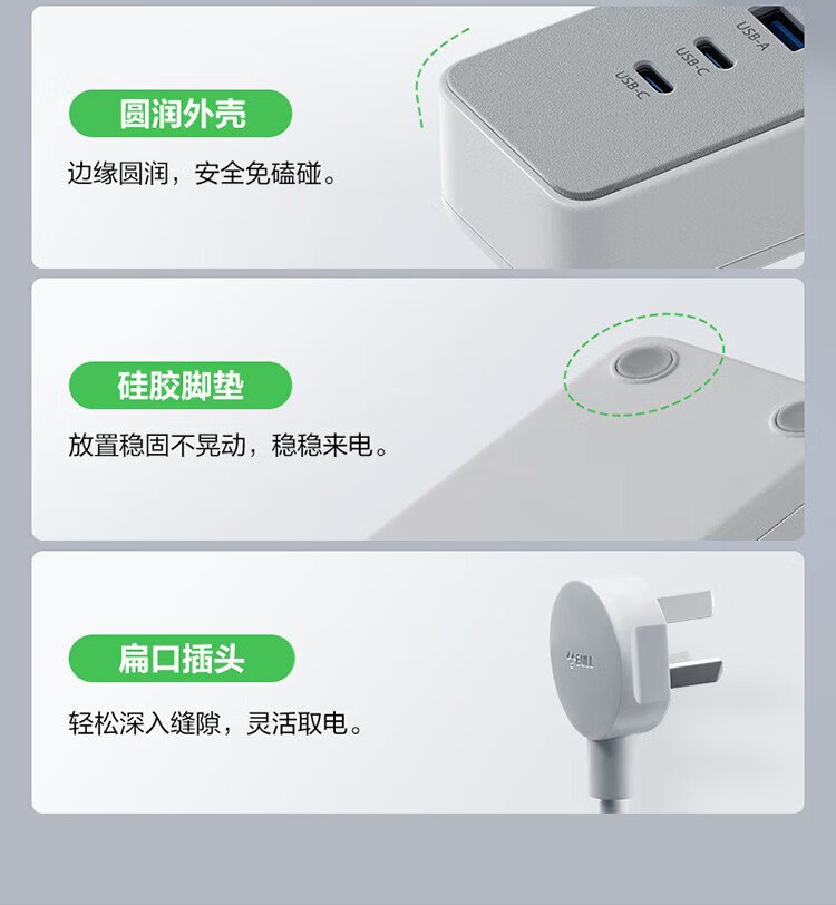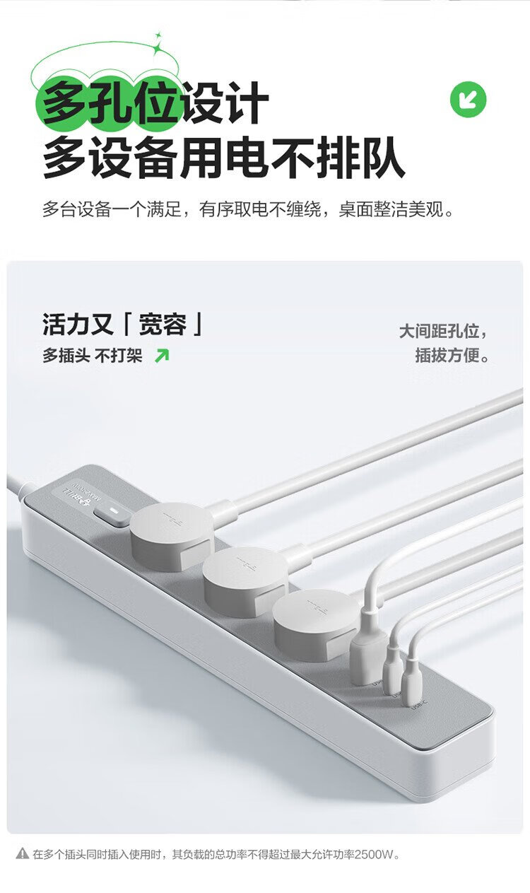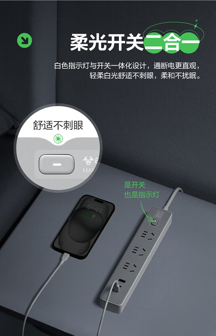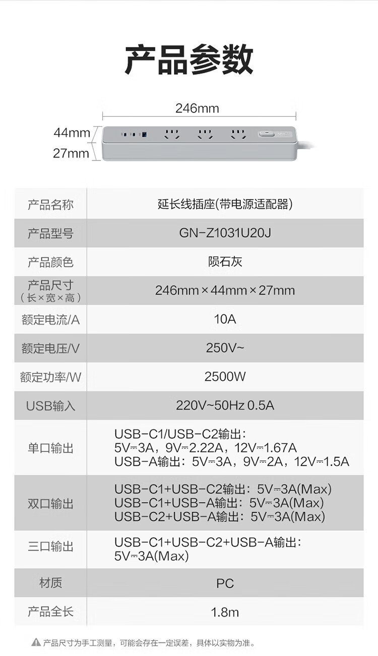 BULL (BULL) 20W PD Apple fast charging socket/strip board/socket strip/strip board Type-c+USB+3 jack full length 1.8 meters Generation Z GN-Z1031U20J master control switch