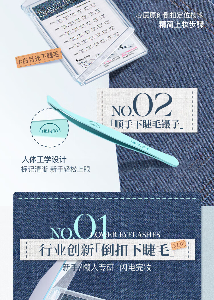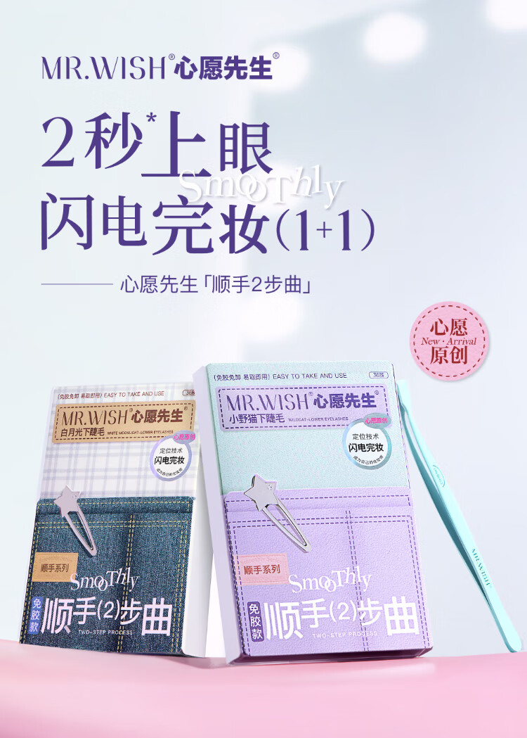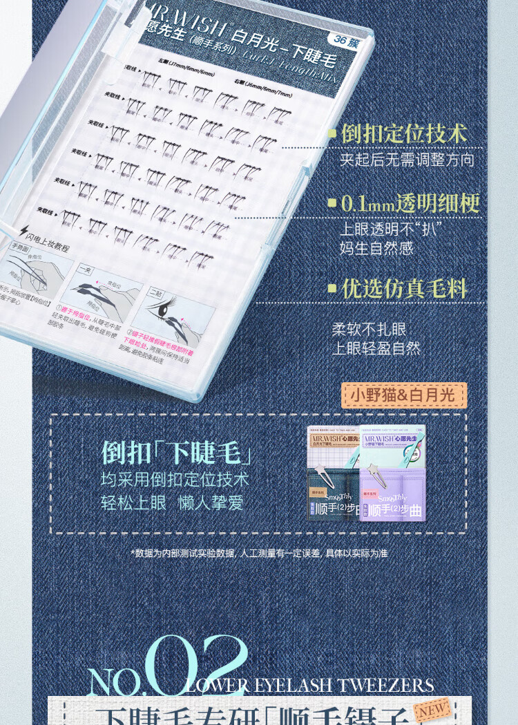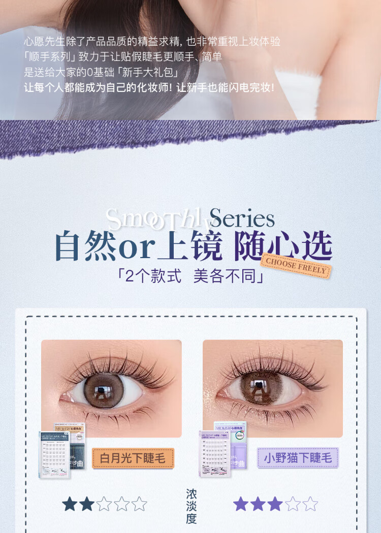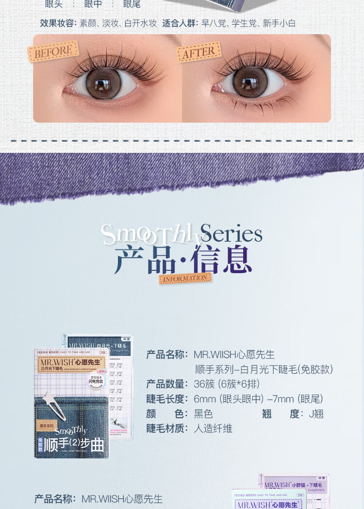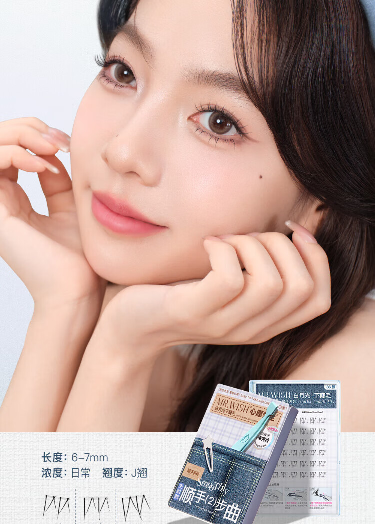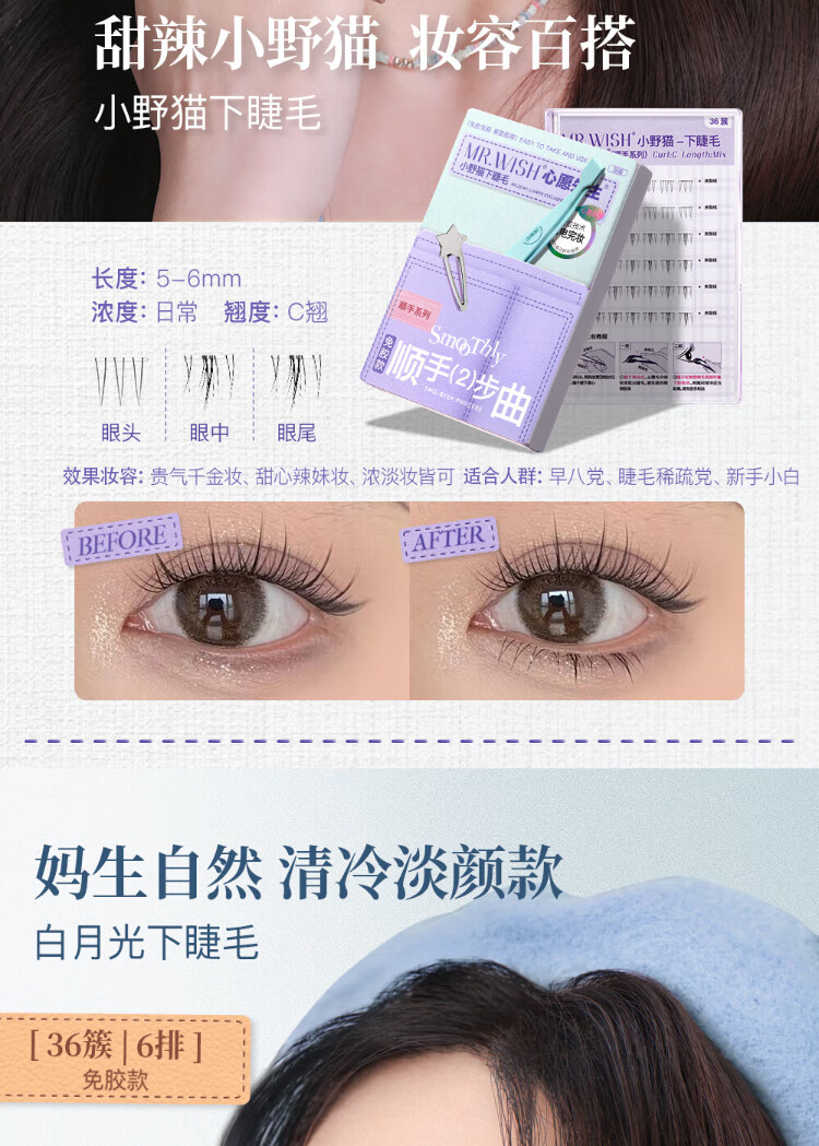 Mr. Wish's glue-free self-adhesive little wild cat smooth lower eyelashes for lazy people in three steps, natural cat false eyelashes for lazy newbies 36 clusters