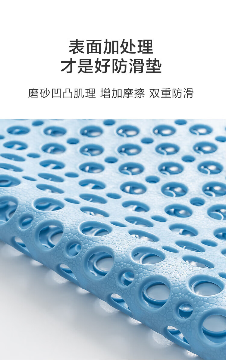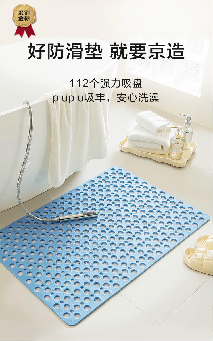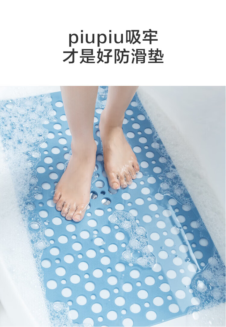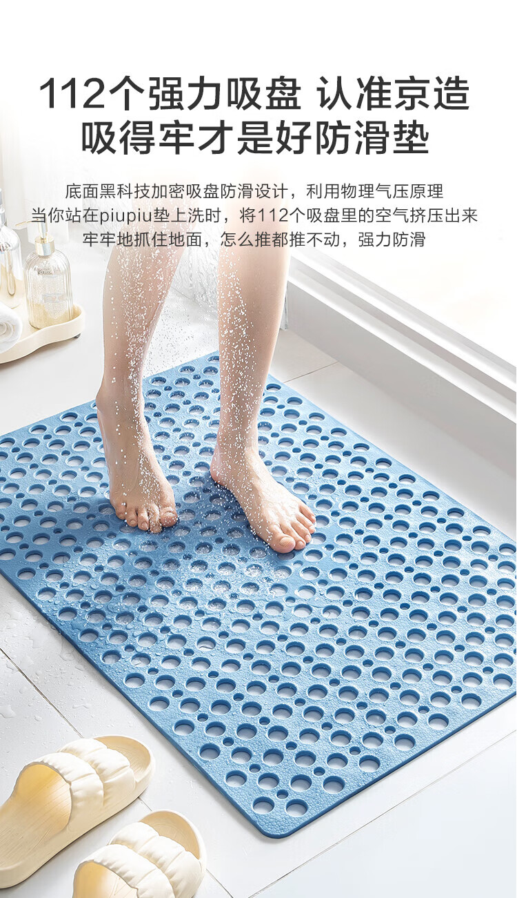 京东京造 piupiu吸牢防滑垫 淋浴垫洗澡地垫防摔浴室脚垫子 蓝色43*75cm