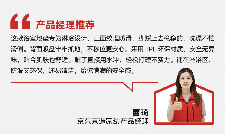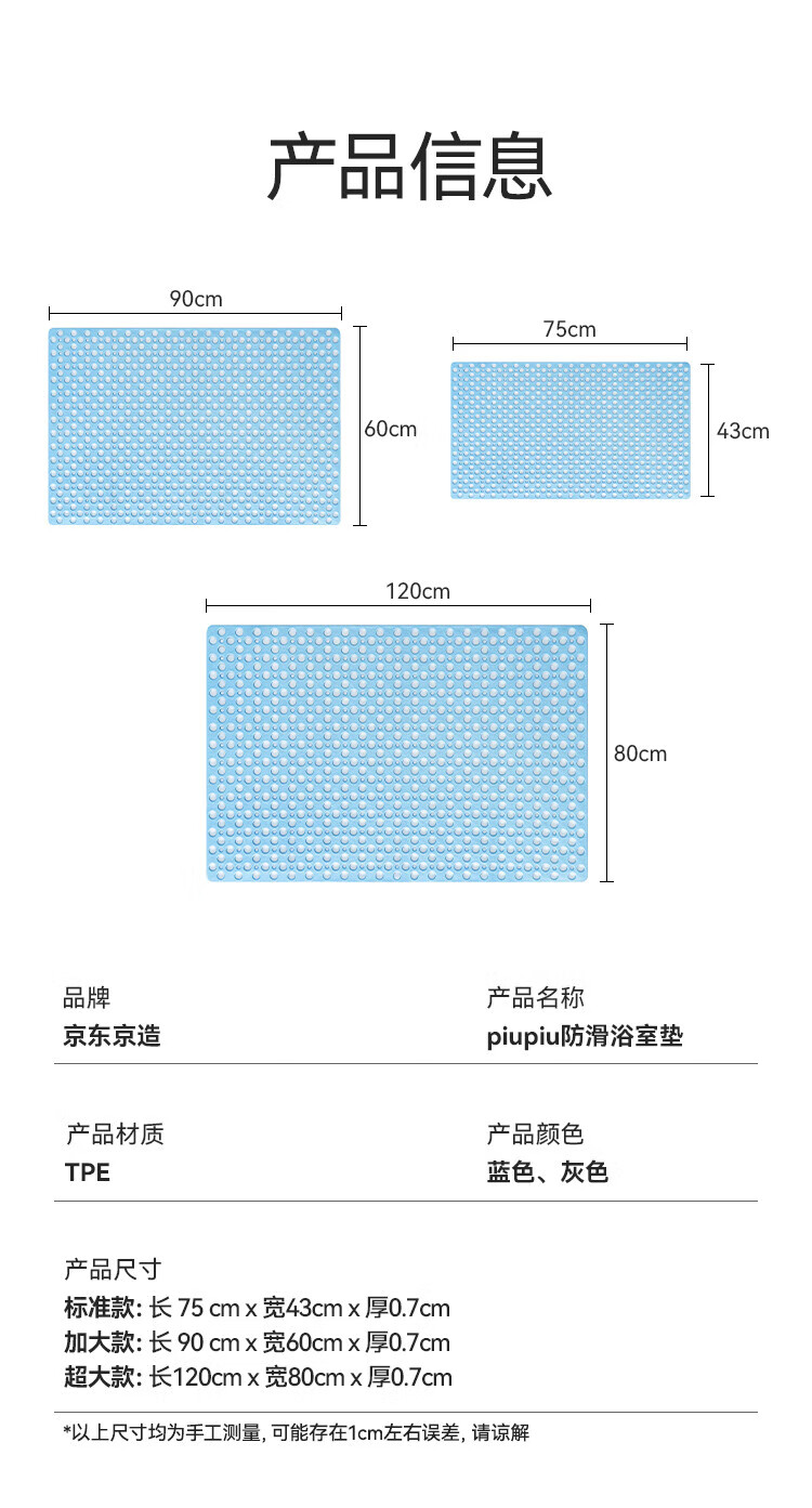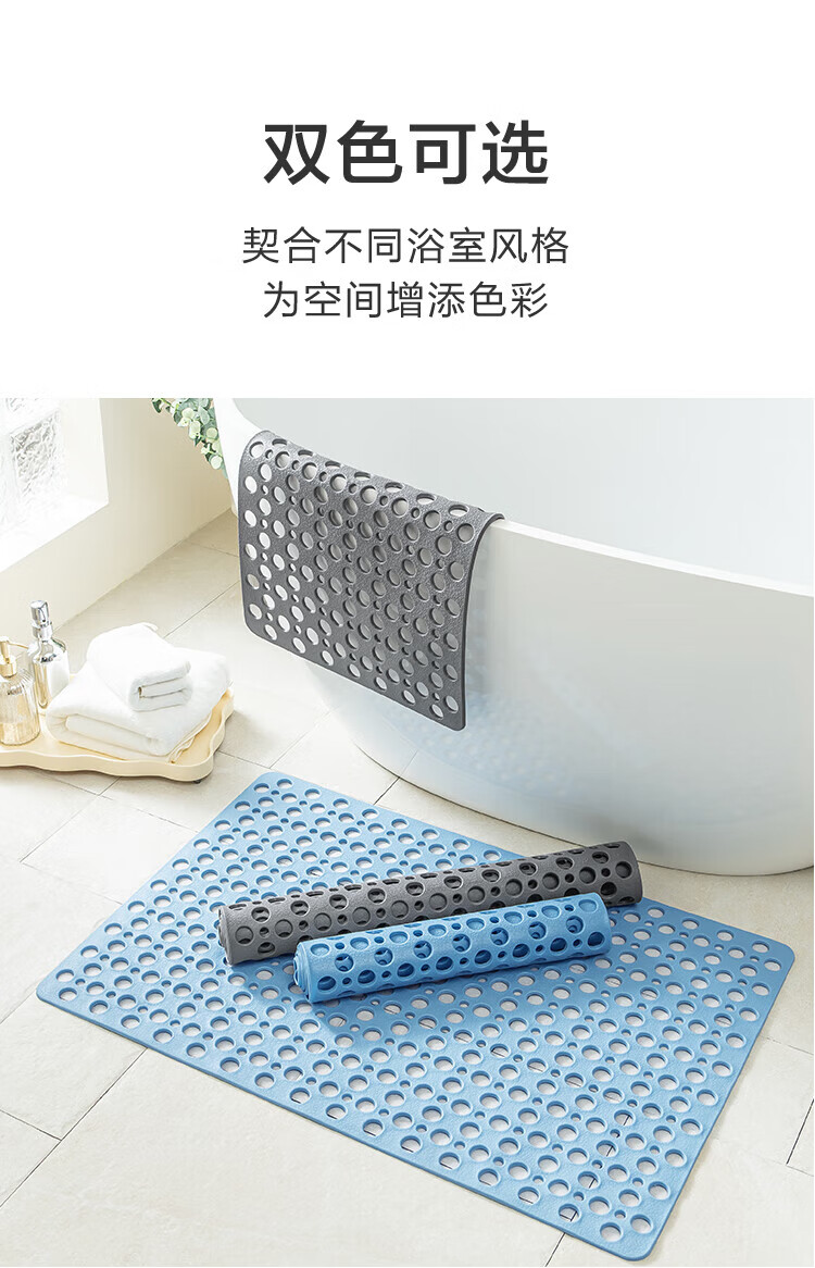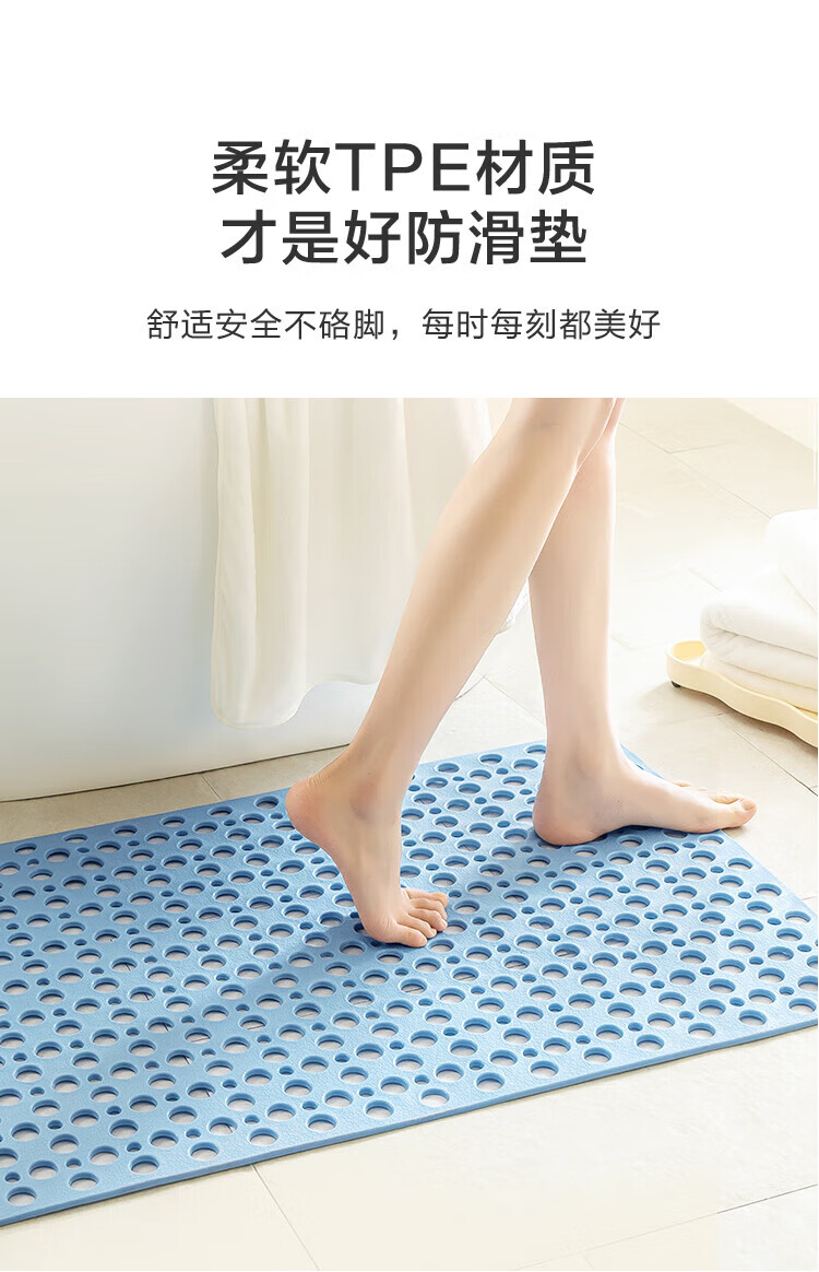 京东京造 piupiu吸牢防滑垫 淋浴垫洗澡地垫防摔浴室脚垫子 蓝色43*75cm