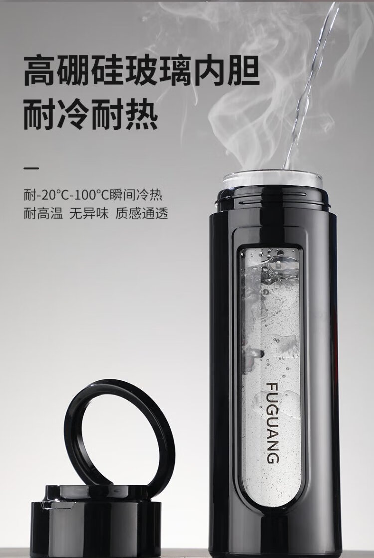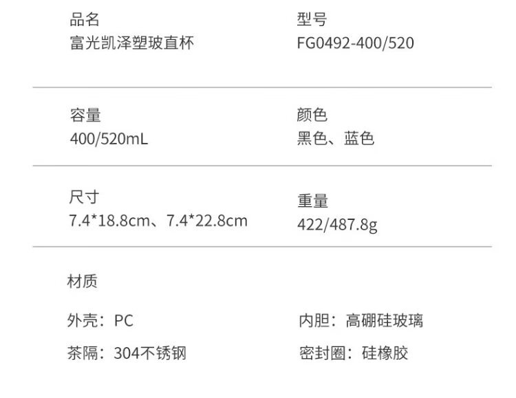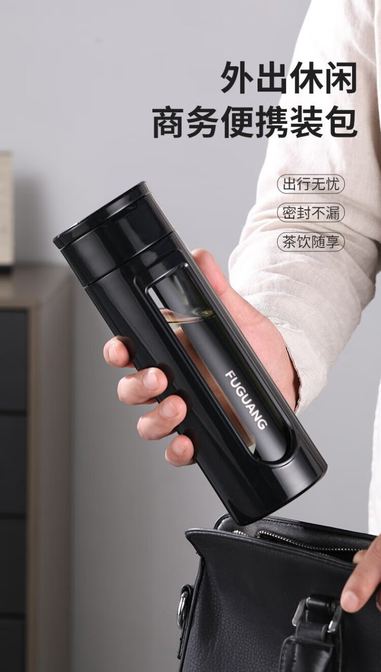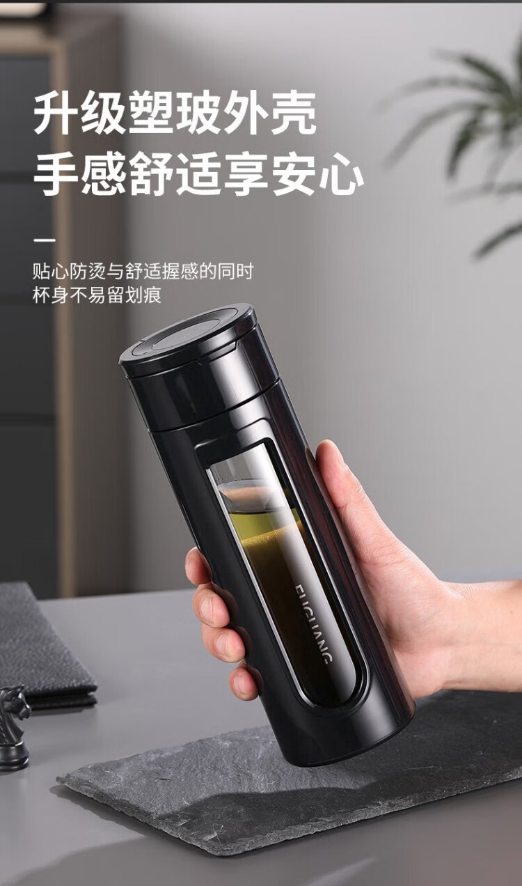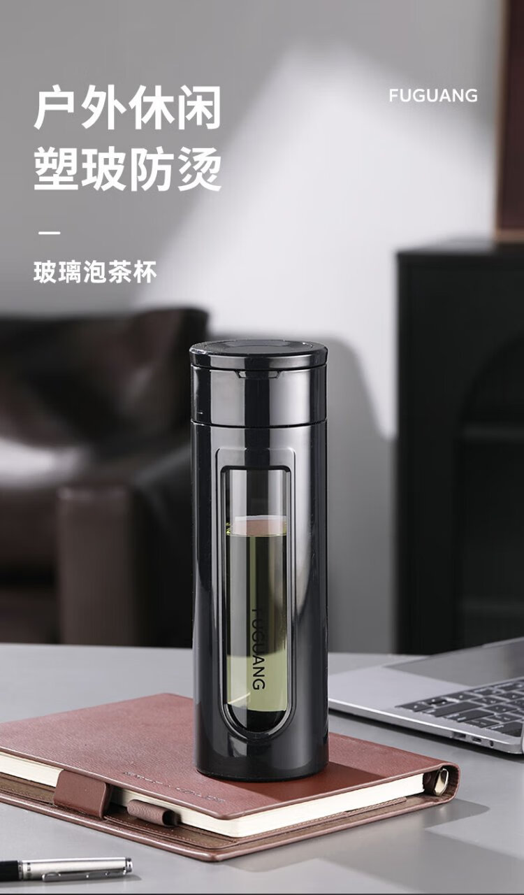 Fuguang large-capacity drop-resistant glass business men's double-layer water cup plastic glass bubble tea cup tea water separation cup 520ML