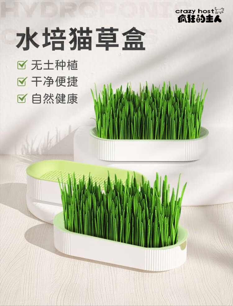 Crazy Owner Katzengras + 10 Beutel erdlose hydroponische Minze mit Weizensamen im Topf entfernt Haarballen, um haarige Katzensnacks bei jungen Katzen zu beseitigen