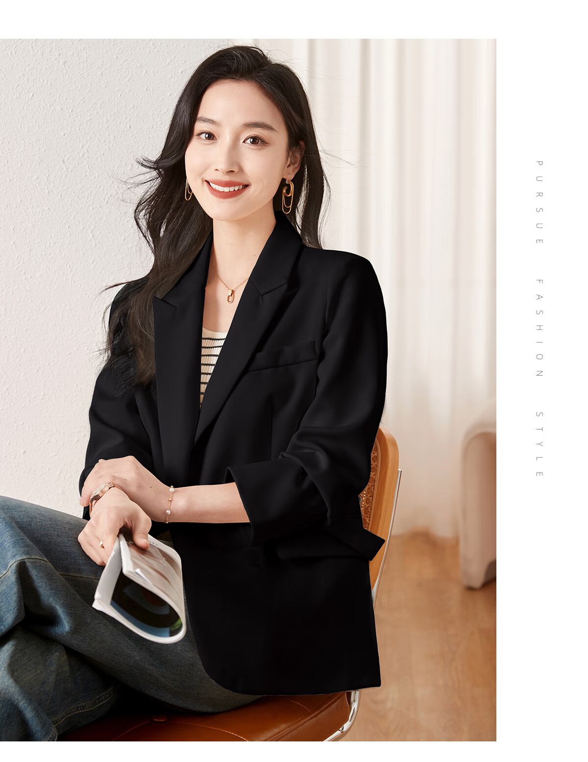 Chu Shen Small Suit Women's Commuting Casual Design Irregular Back Slit Suit Jacket S142F4324