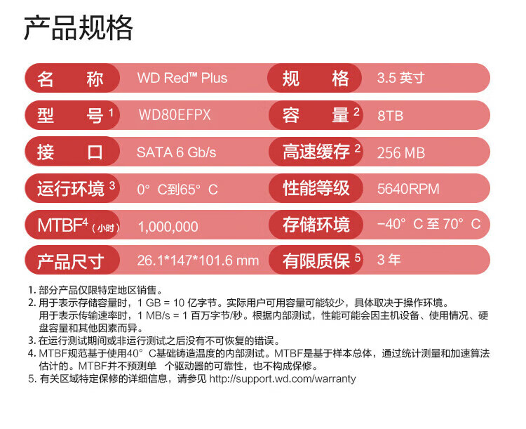 Western Digital (WD) NAS mechanical hard drive WD Red Plus Western Digital Red Disk 8TB Private Cloud 5640 to 256MB SATA CMR vertical network storage 3.5 inches WD80EFPX