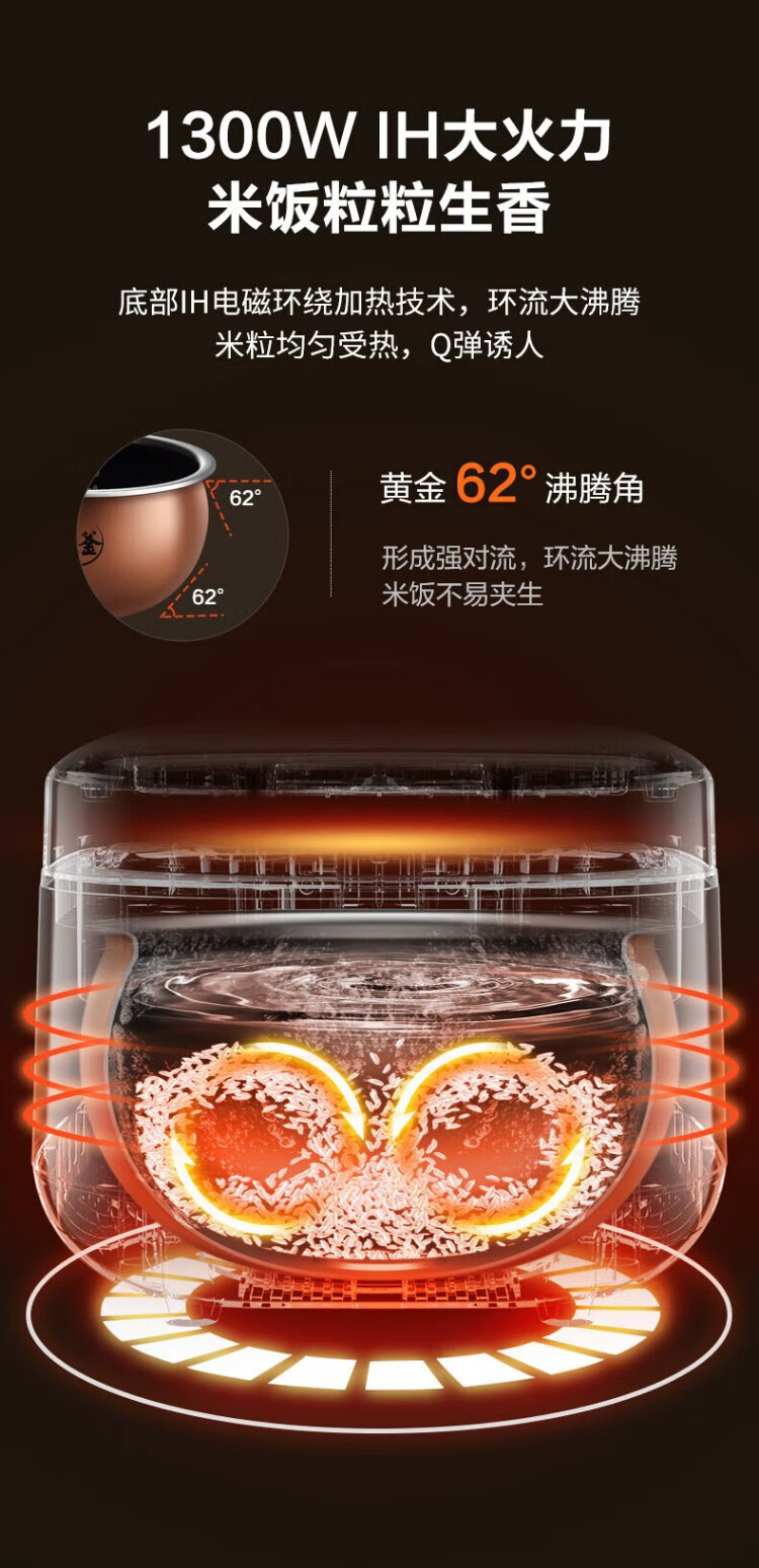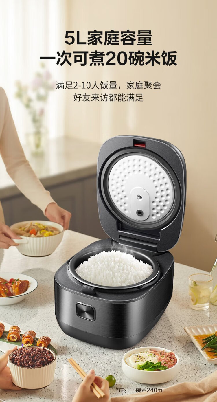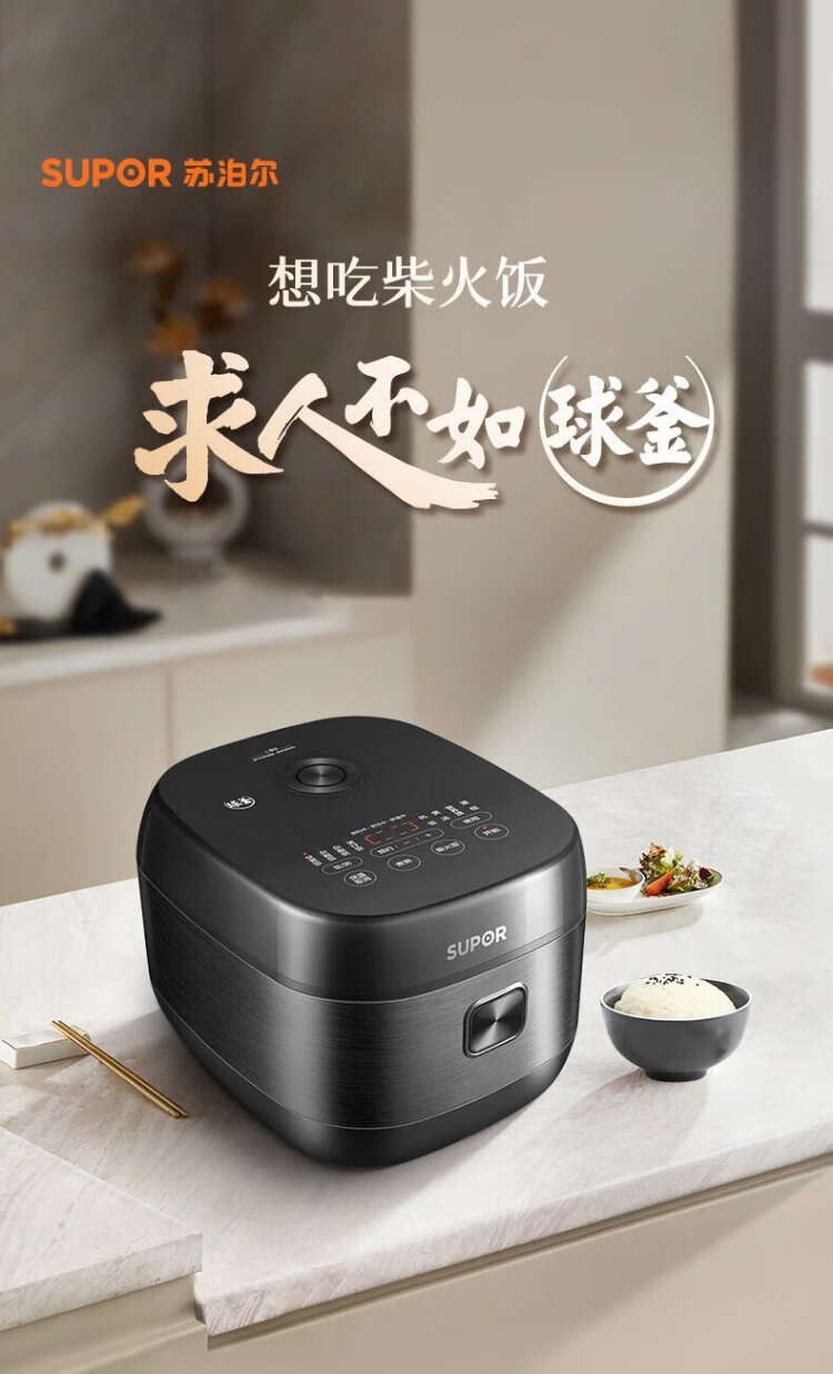 Supor rice cooker household smart reservation rice cooker 5 liters 3-8-10 people copper crystal ball kettle inner tank non-stick pot multi-functional firewood rice hot rice cake IH heating SF50HC0028