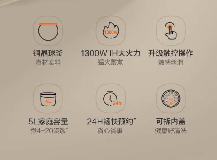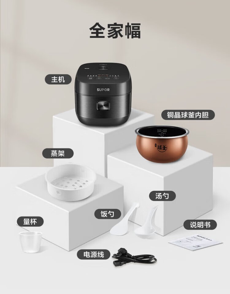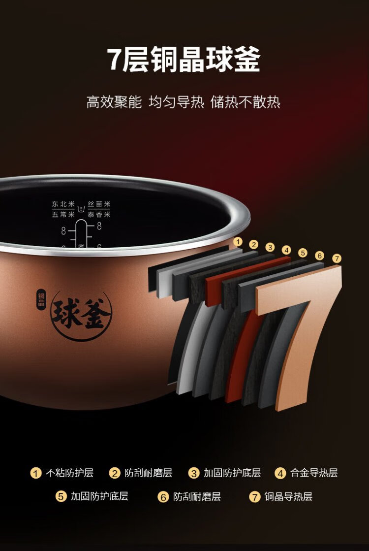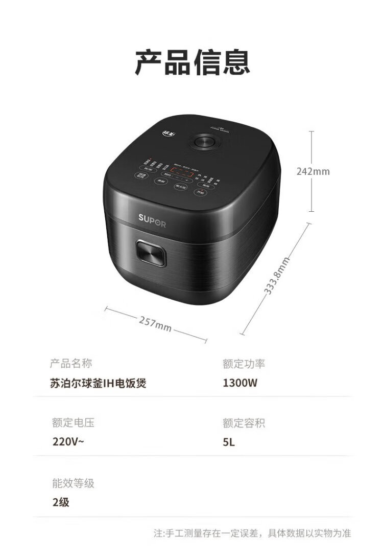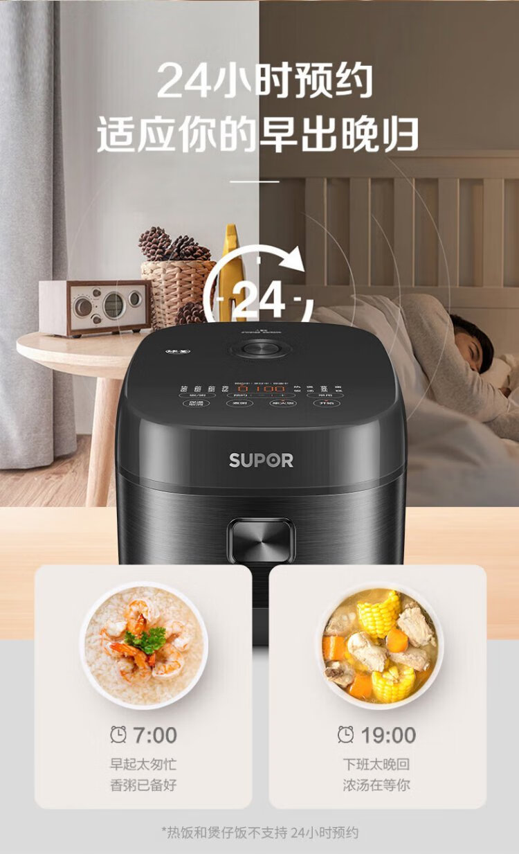 Supor rice cooker household smart reservation rice cooker 5 liters 3-8-10 people copper crystal ball kettle inner tank non-stick pot multi-functional firewood rice hot rice cake IH heating SF50HC0028