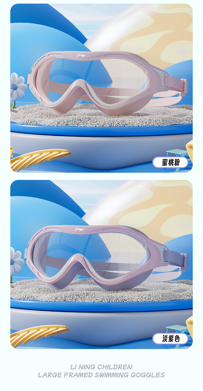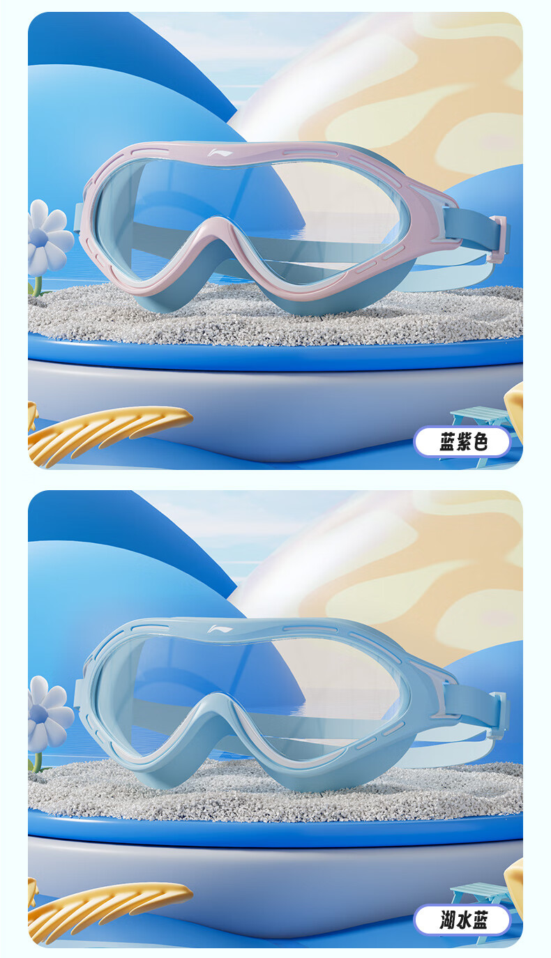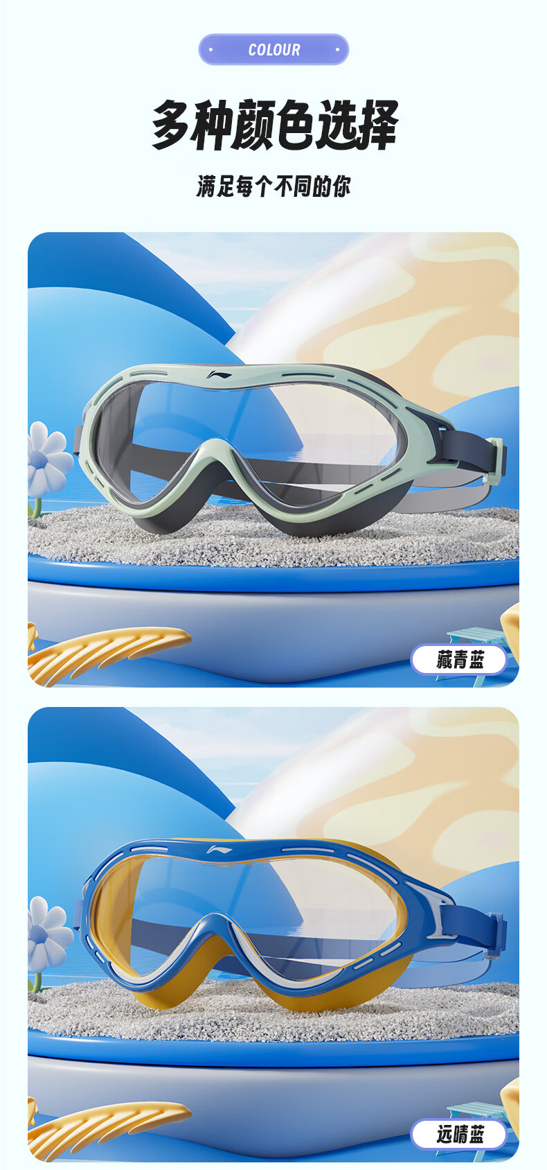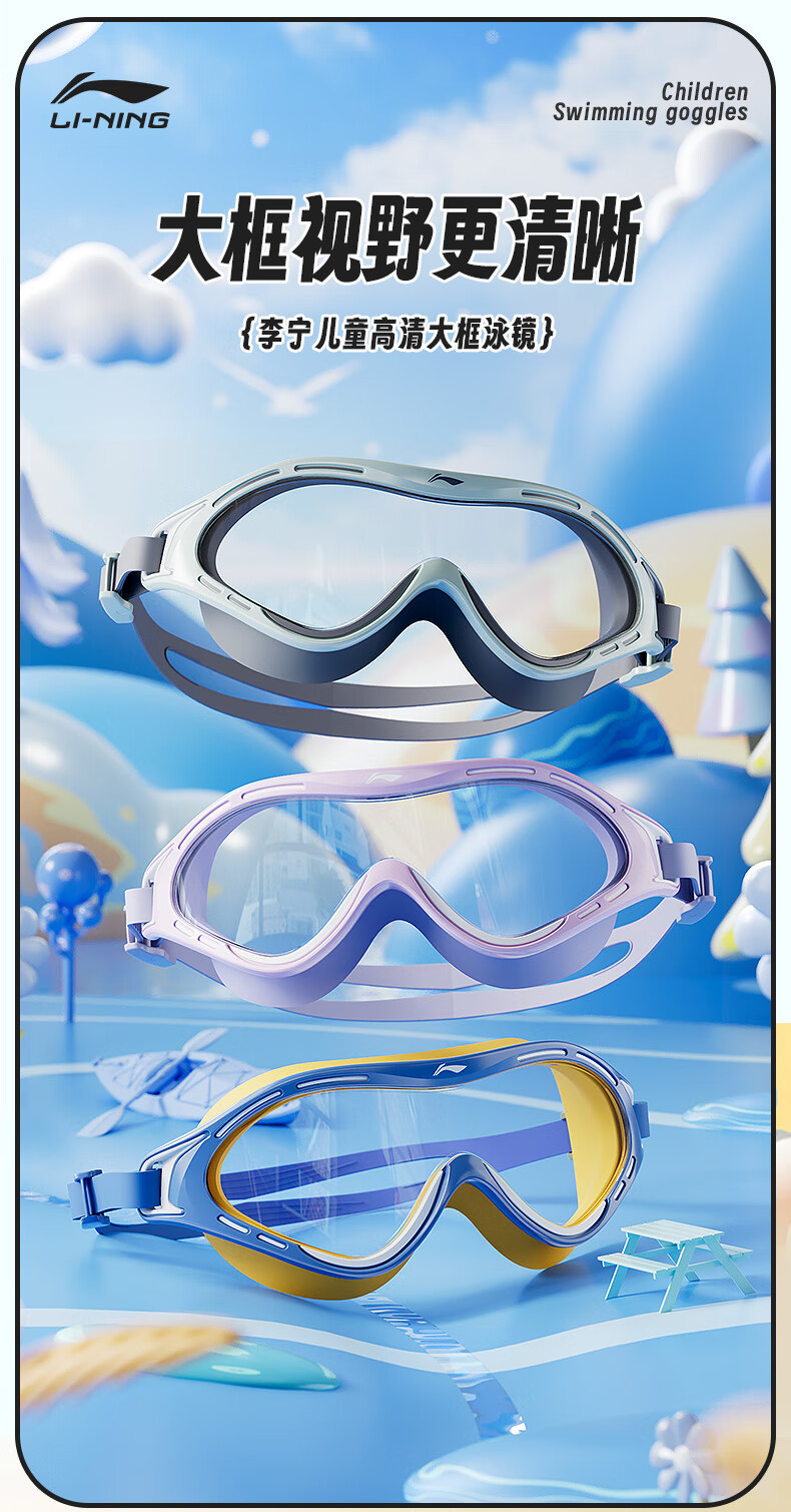 Li Ning (LI-NING) children's large-frame swimming goggles cloth cap boys waterproof anti-fog swimming goggles high-definition diving goggles set 34-16 nautical blue