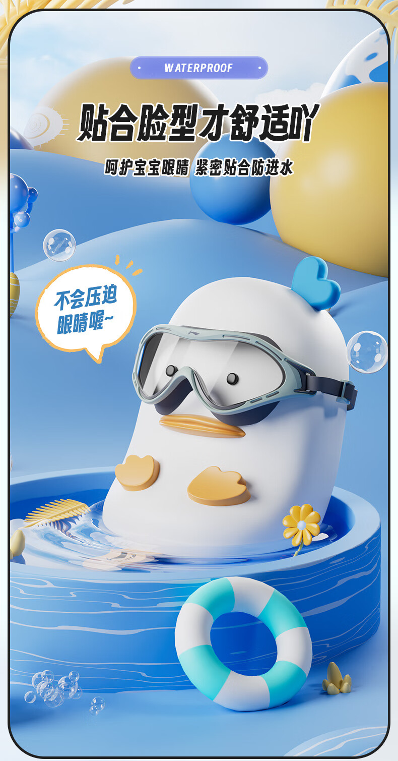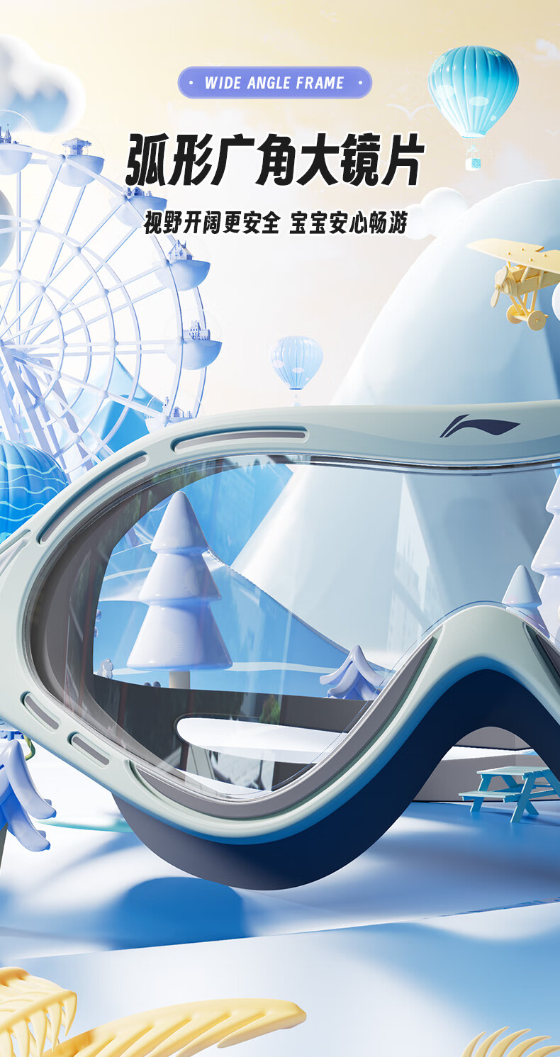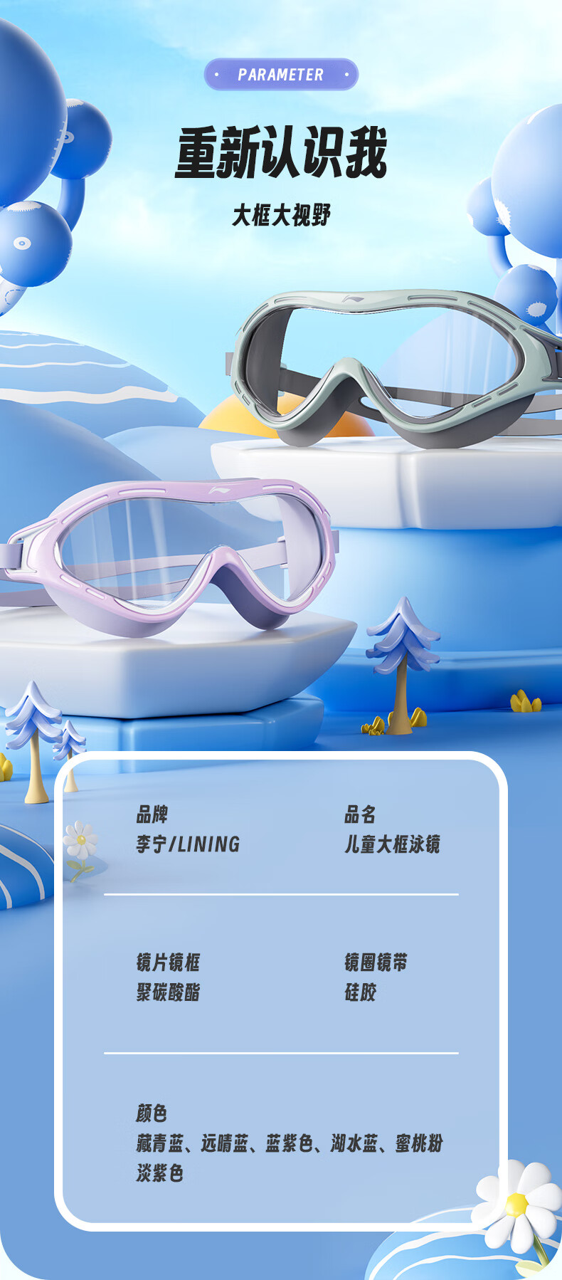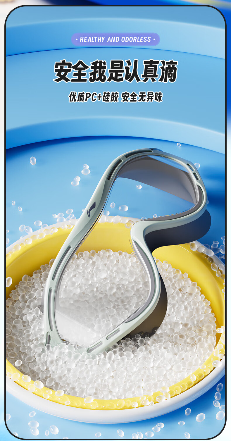 Li Ning (LI-NING) children's large-frame swimming goggles cloth cap boys waterproof anti-fog swimming goggles high-definition diving goggles set 34-16 nautical blue