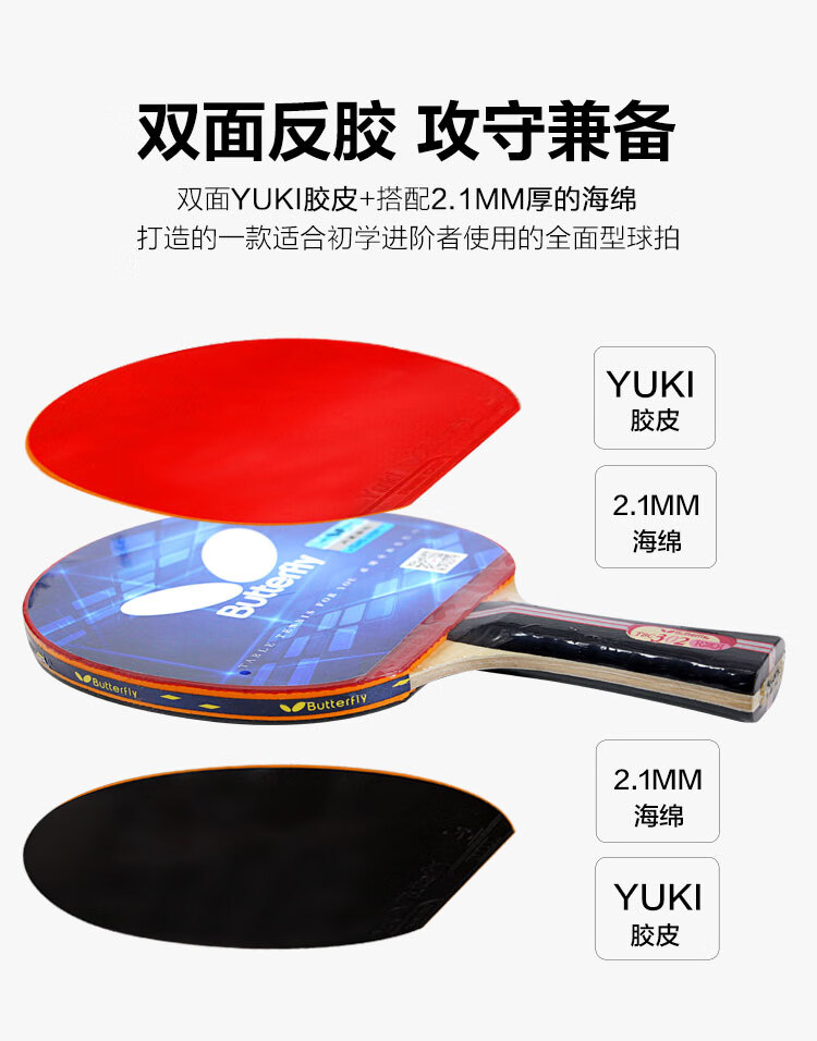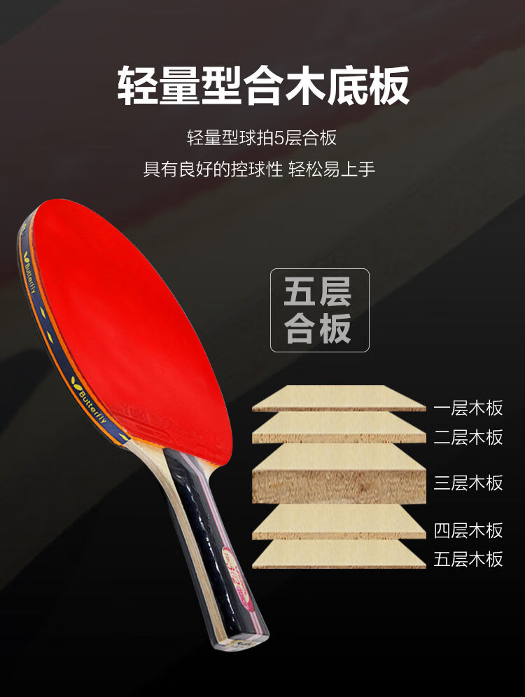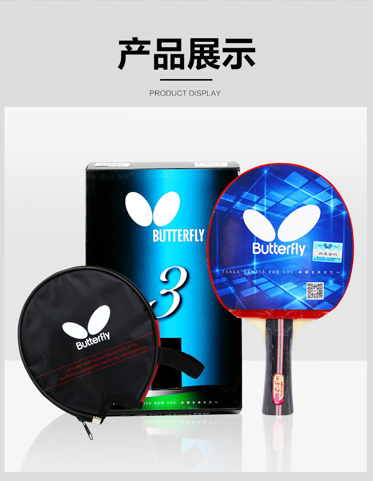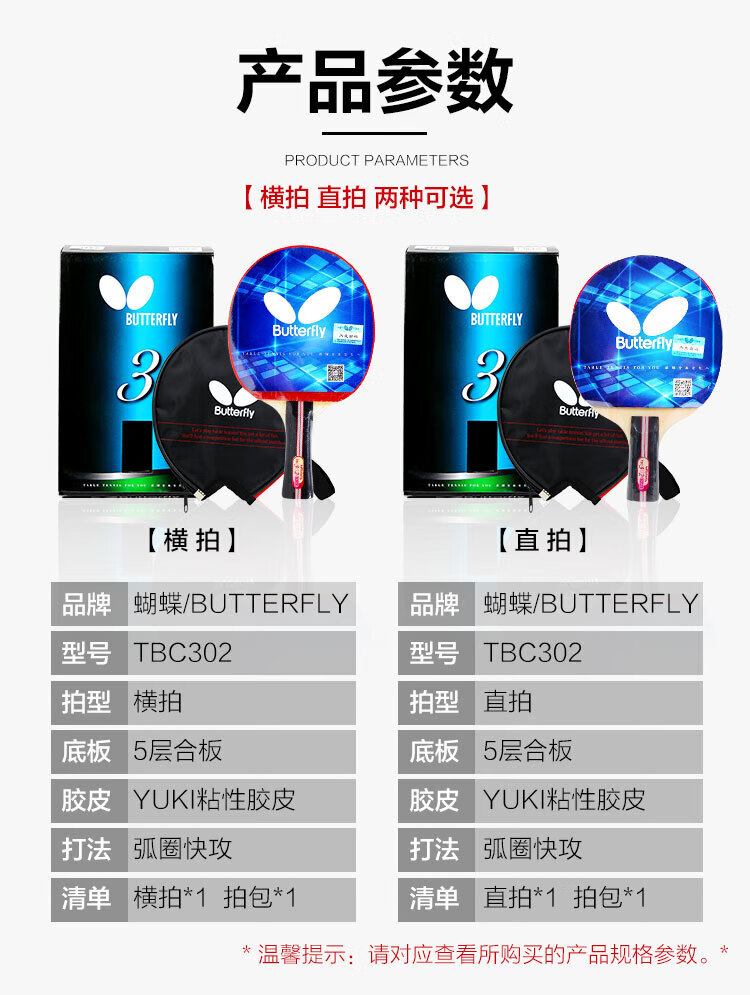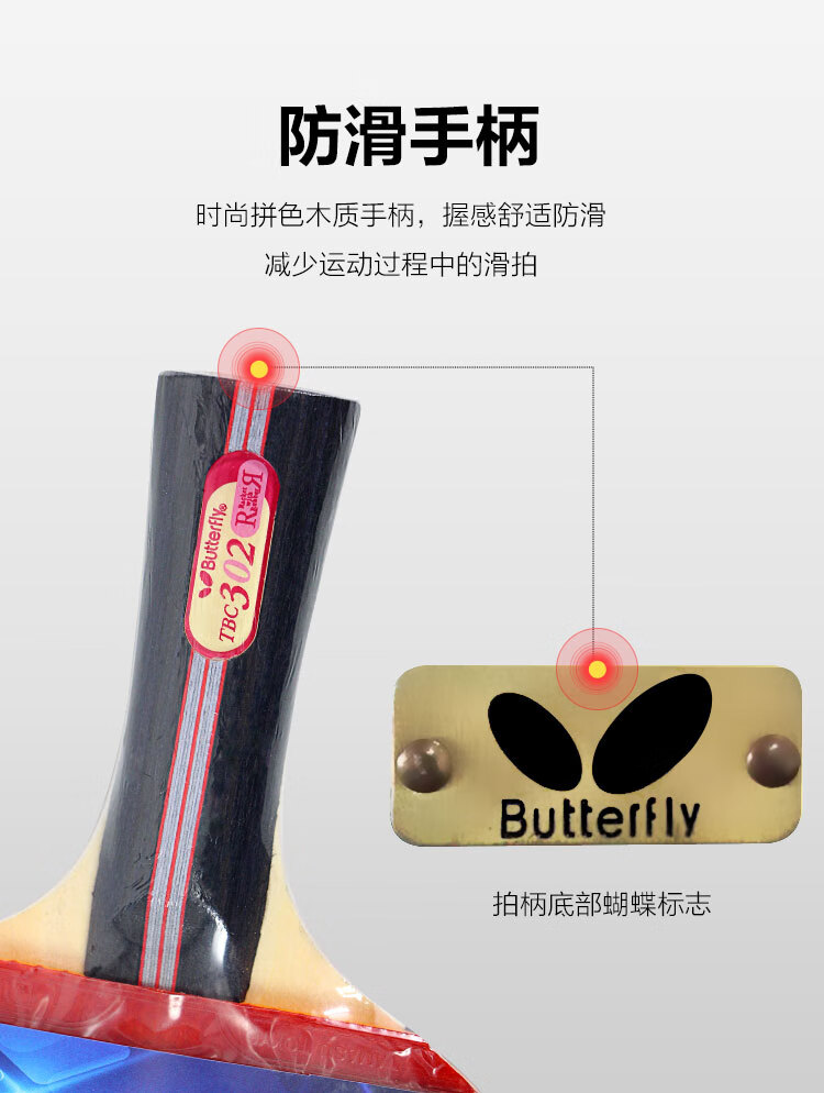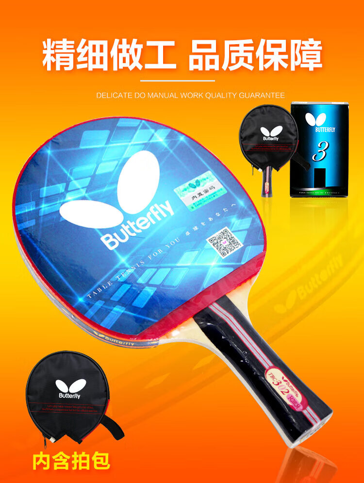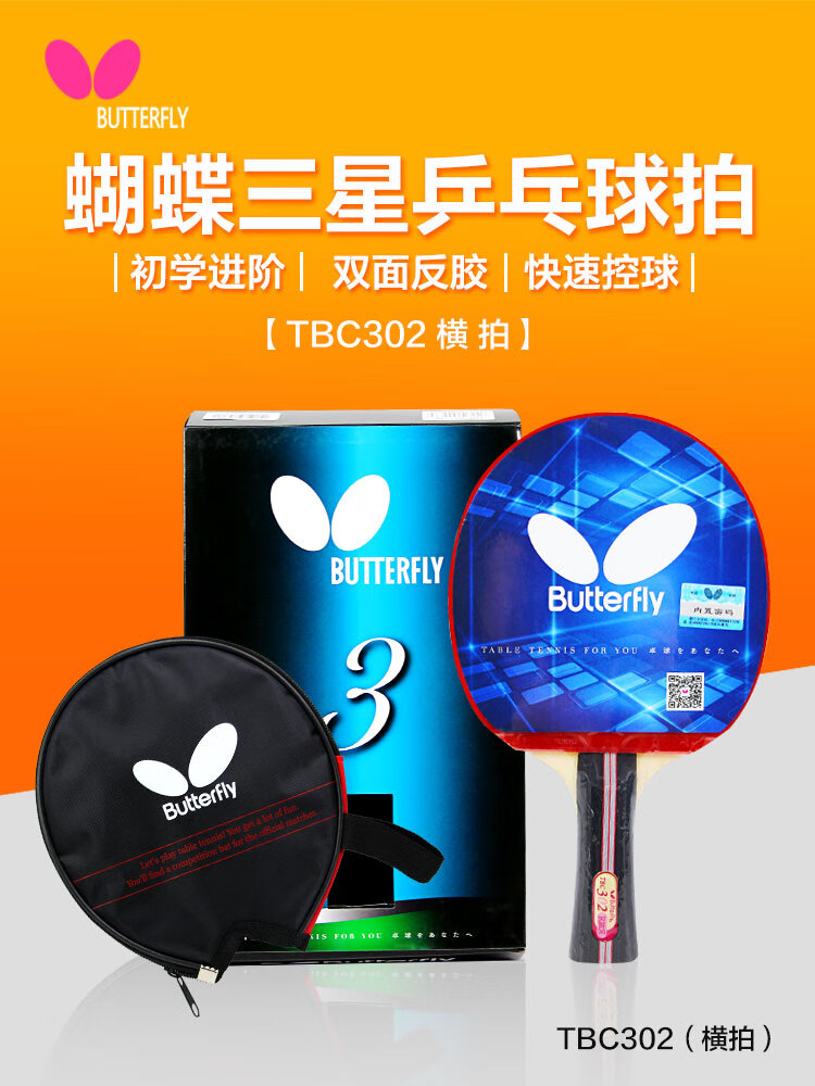 Butterfly 3-star table tennis racket double-sided anti-adhesive 5-layer plywood military racket TBC-302-horizontal racket/single with racket case