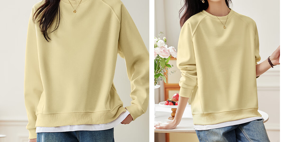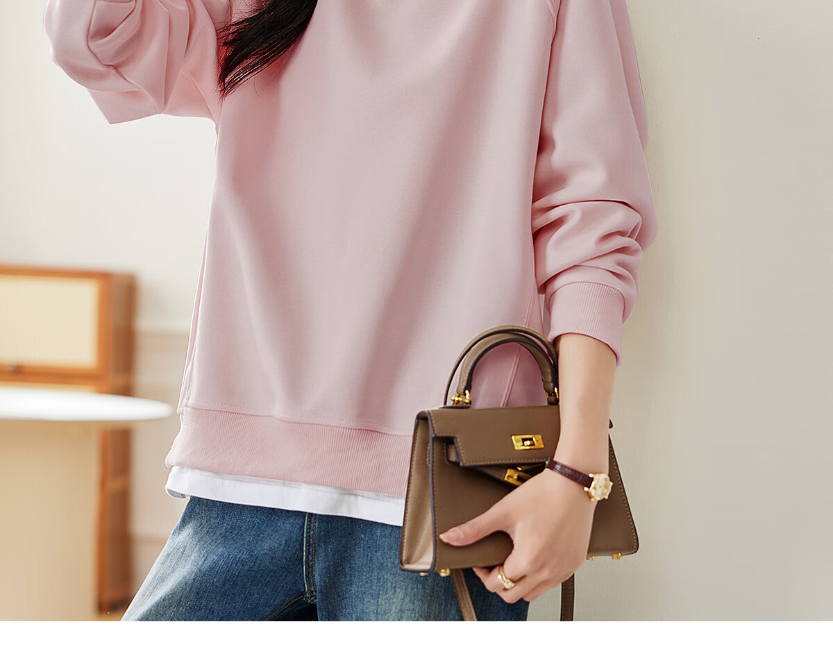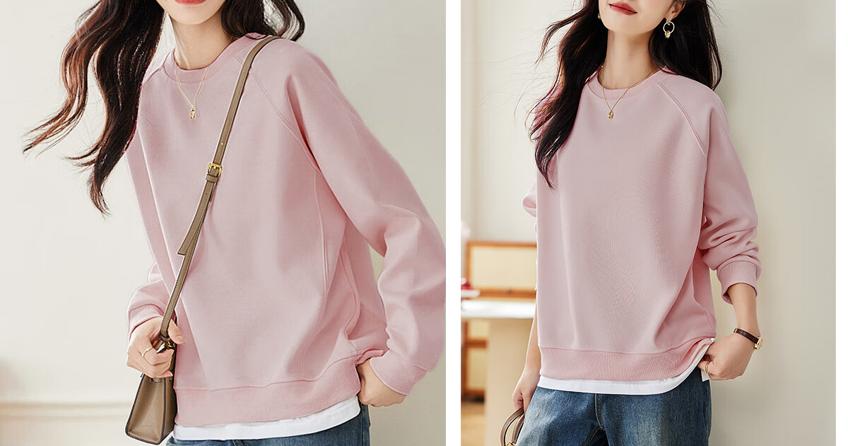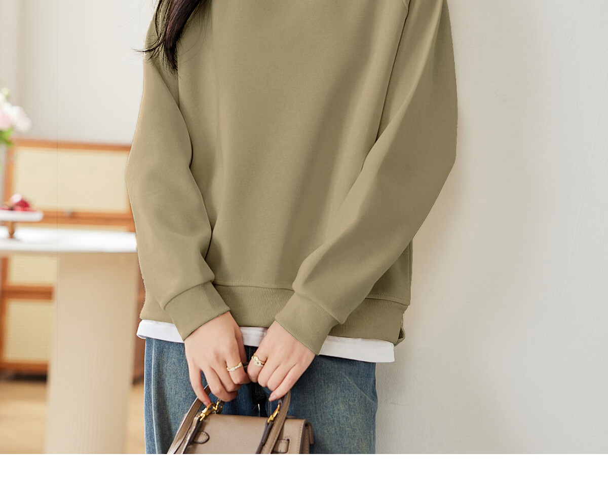 PinCai Relaxed Sweatshirt Women's Simple Solid Color Round Neck Fake Two-piece Spliced ​​Sweatshirt Loose and Versatile Top P141W1739