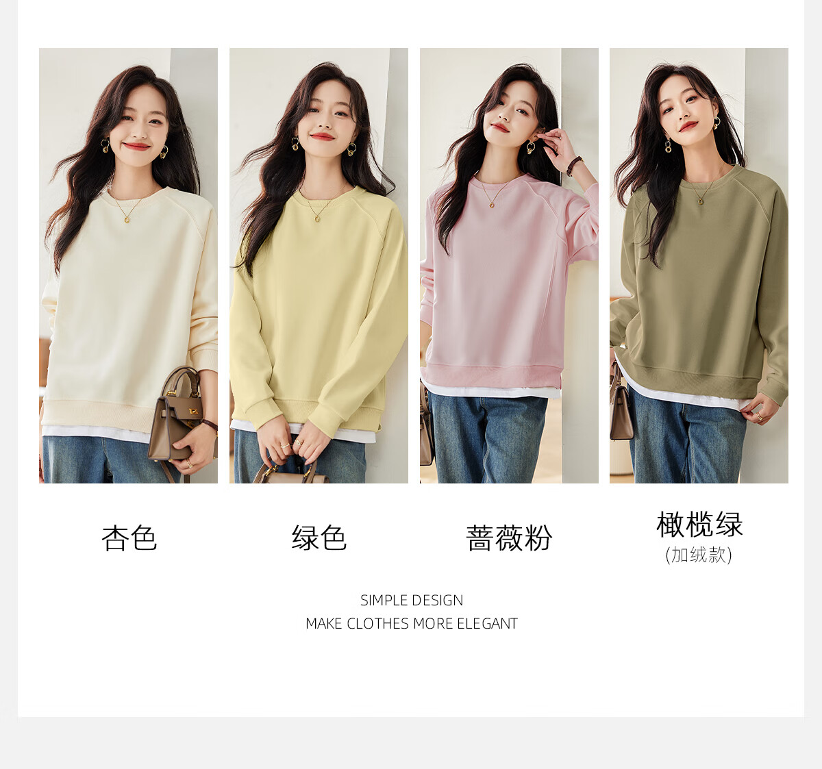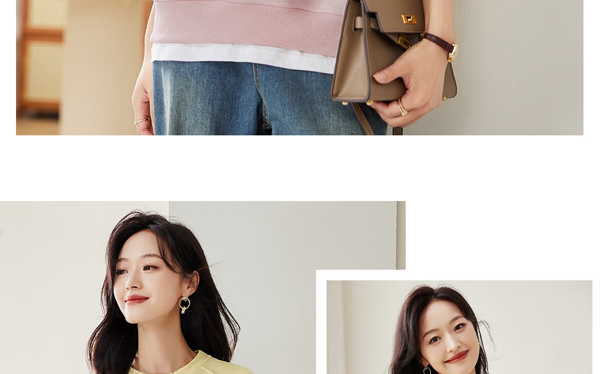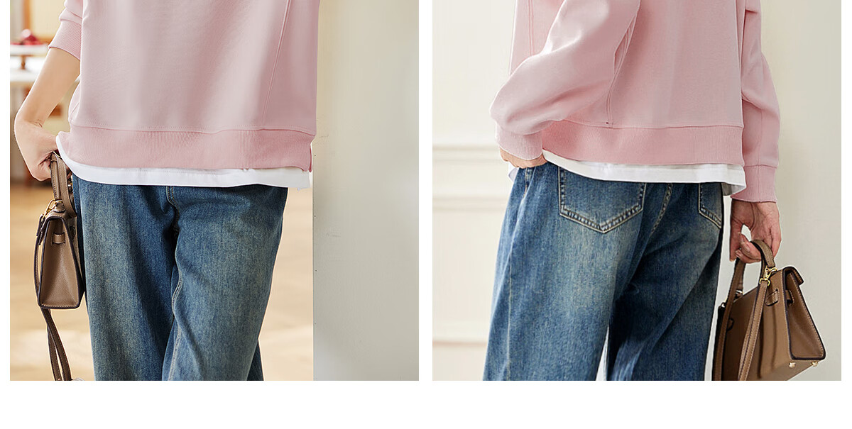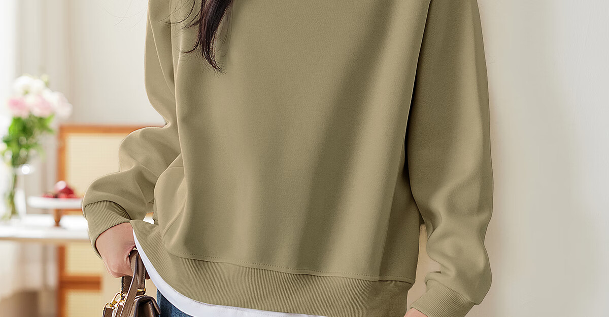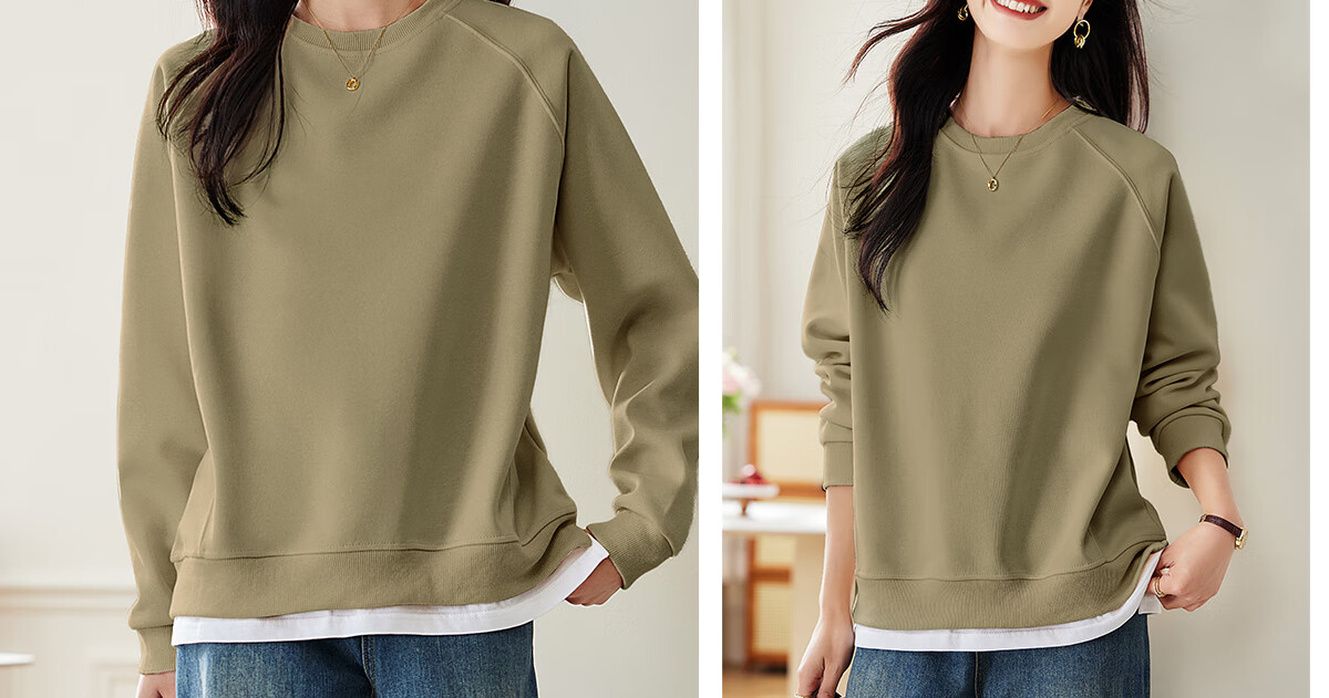 PinCai Relaxed Sweatshirt Women's Simple Solid Color Round Neck Fake Two-piece Spliced ​​Sweatshirt Loose and Versatile Top P141W1739