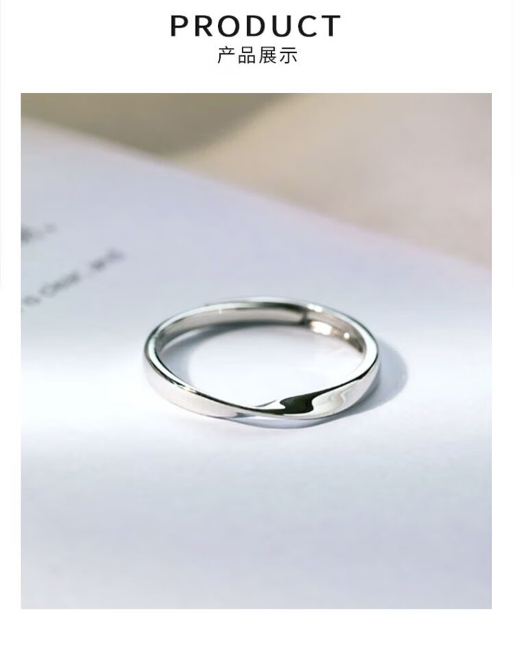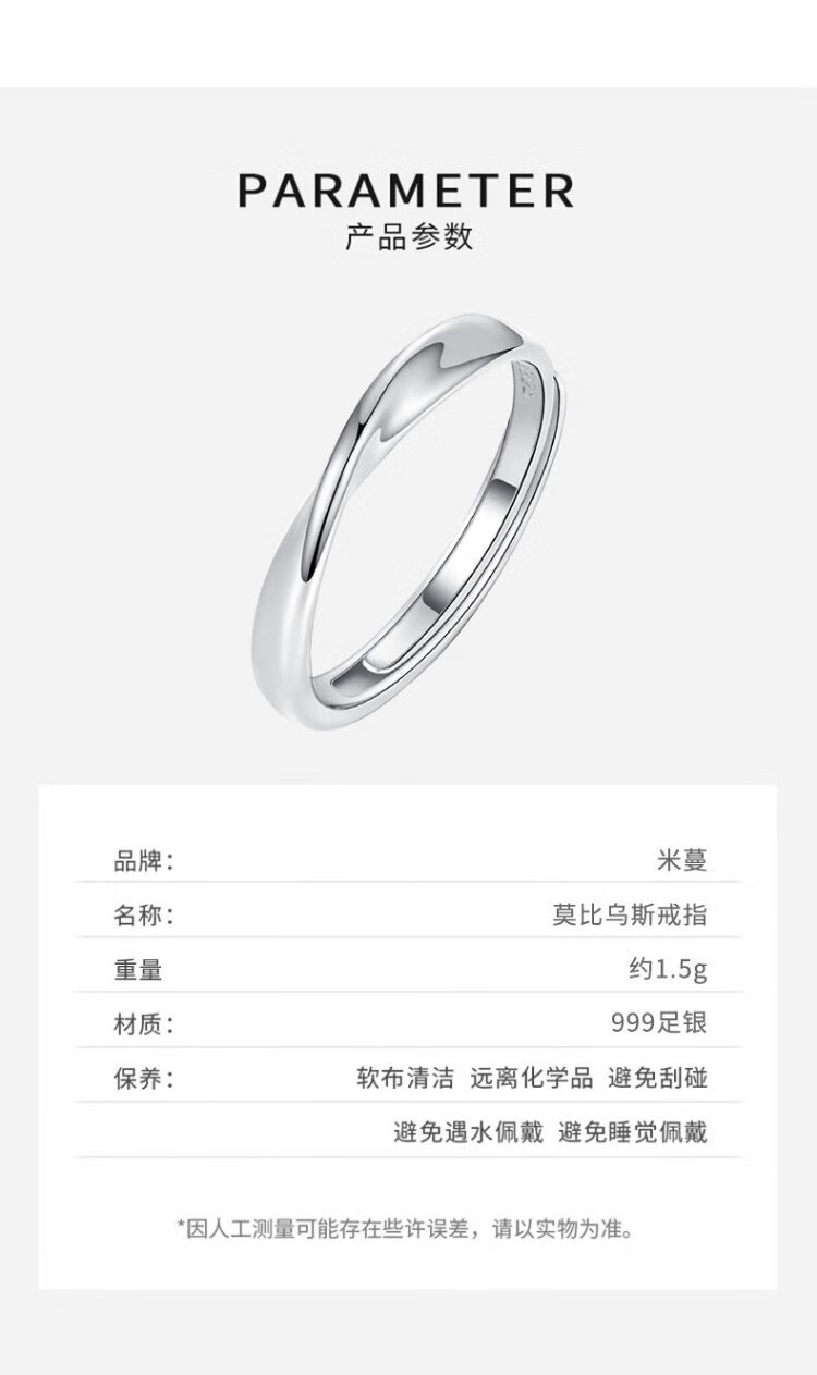 MIMORE S999 pure silver Mobius ring female niche design ins simple vegetarian ring index finger ring adjustable ring