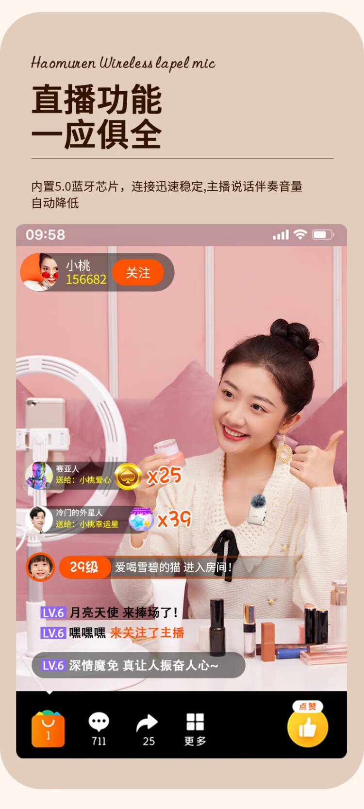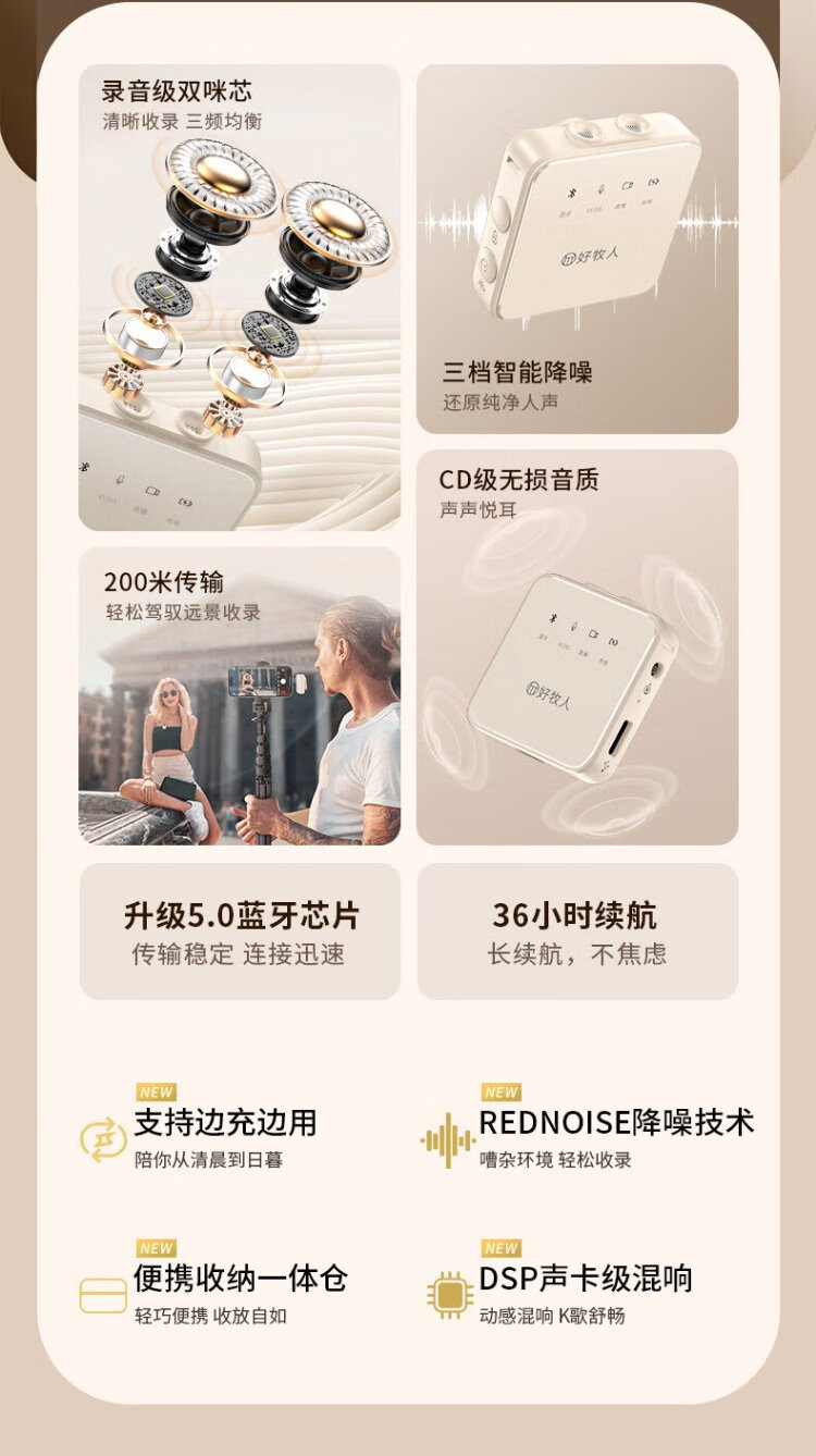 Good Shepherd Wireless Lavalier Microphone Sound Card Live Broadcast Equipment Set Outdoor Professional Short Video Radio Douyin Anchor Noise Reduction Recording Microphone Mobile Phone Camera Little Bee One to Two