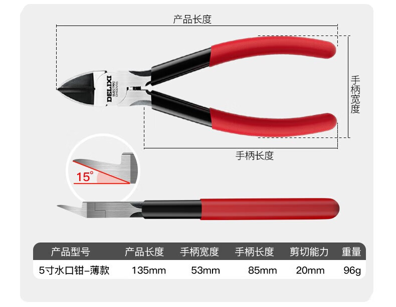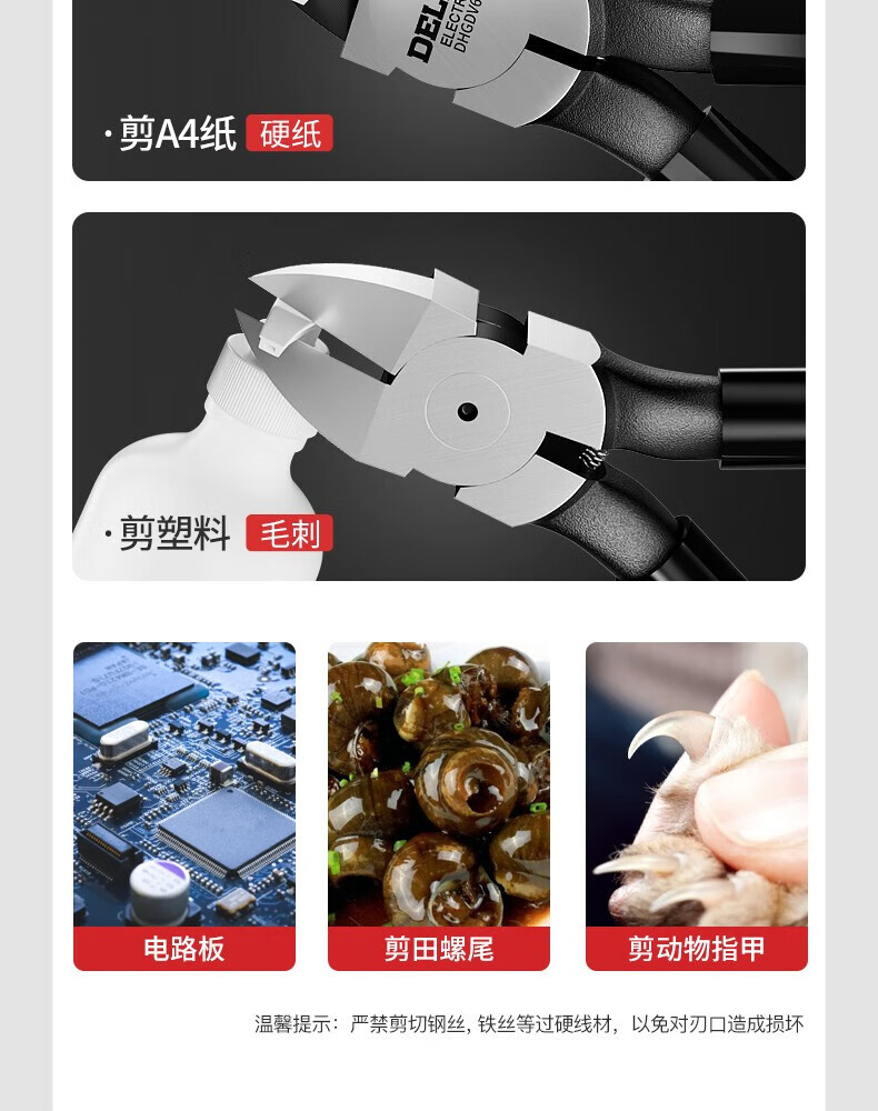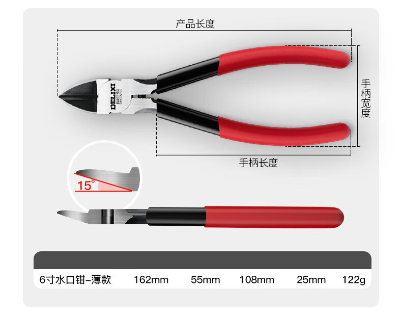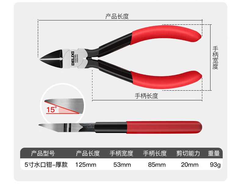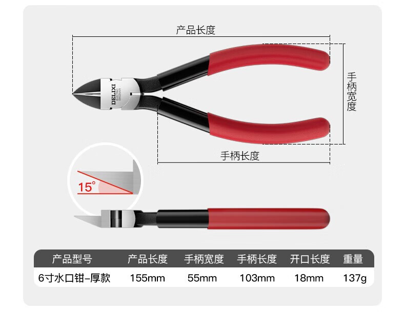 DELIXI ELECTRIC water-mouth pliers, offset pliers, industrial-grade up to electronic model scissors, electronic pliers, diagonal pliers, 6-inch thick version